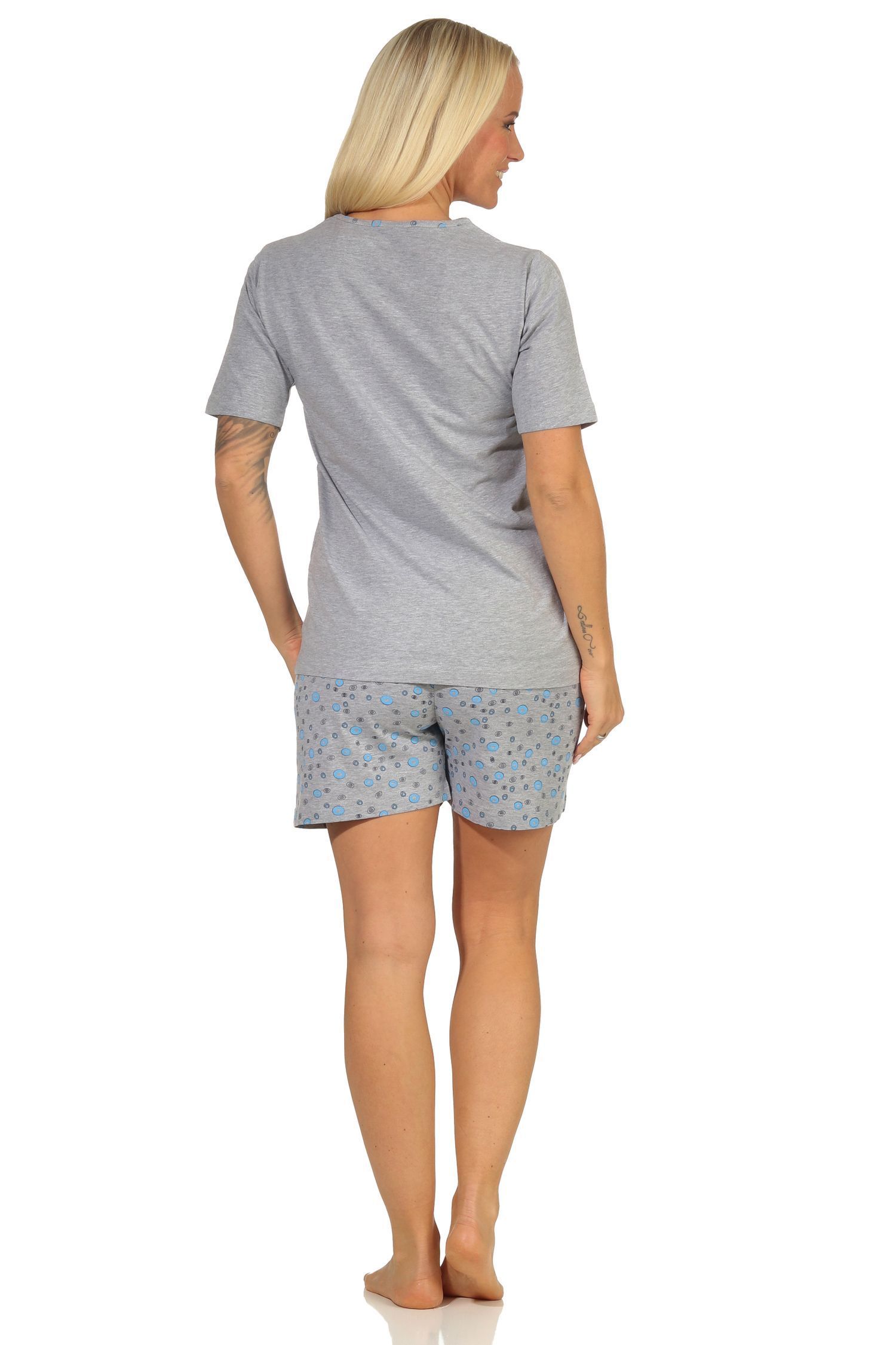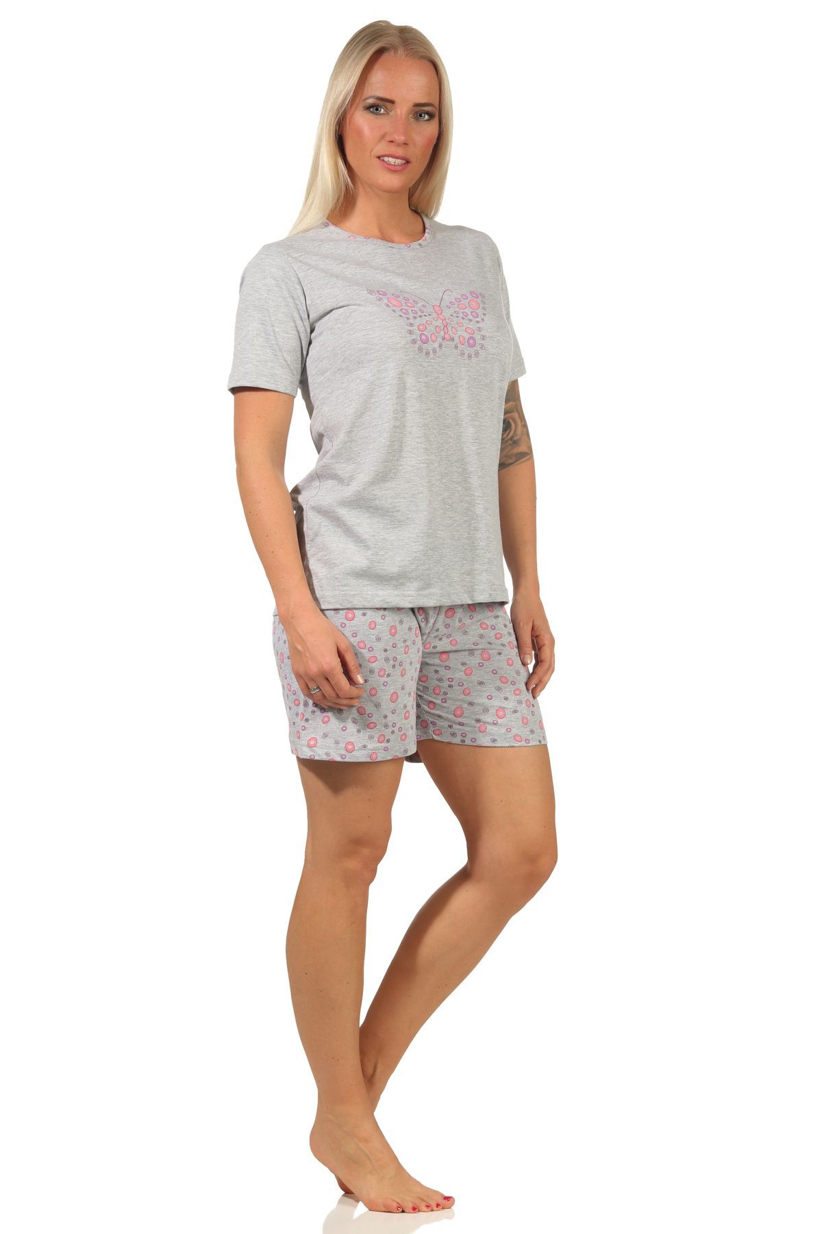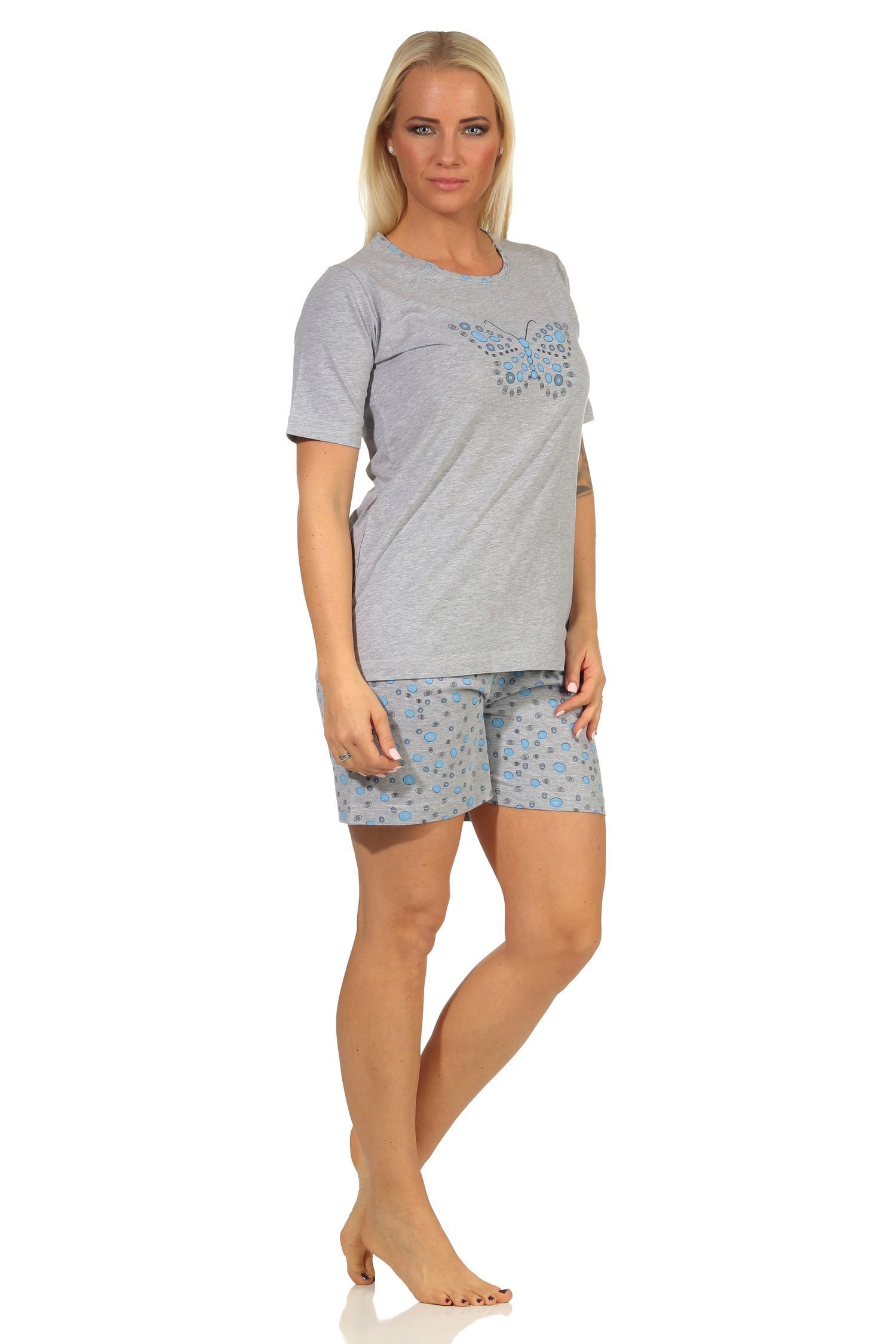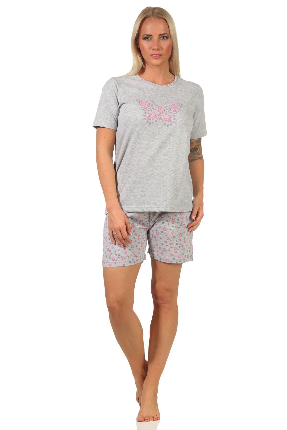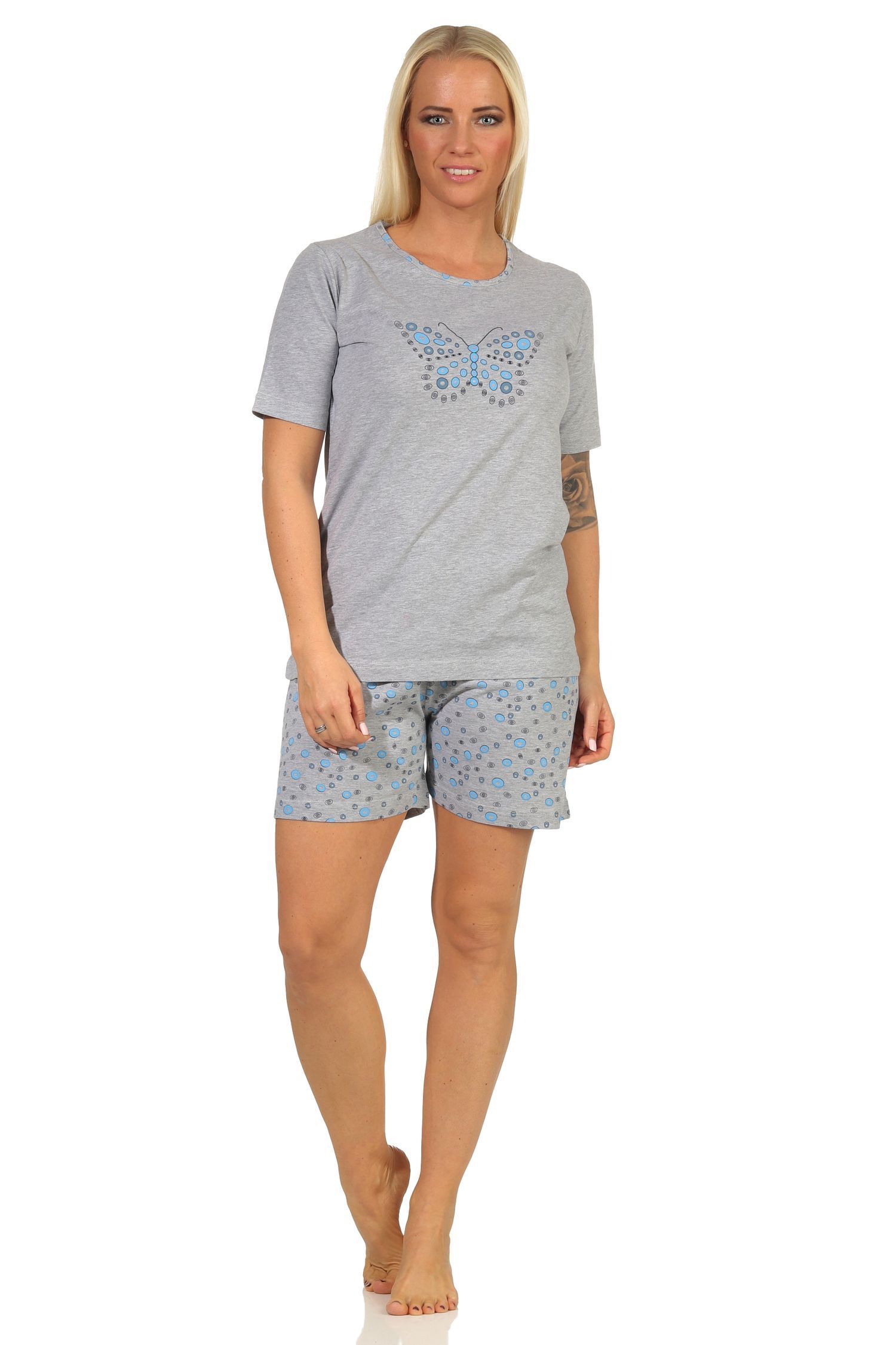 Damen Shorty Schlafanzug, kurzarm Pyjama mit süßem Schmetterling-Motiv 66268