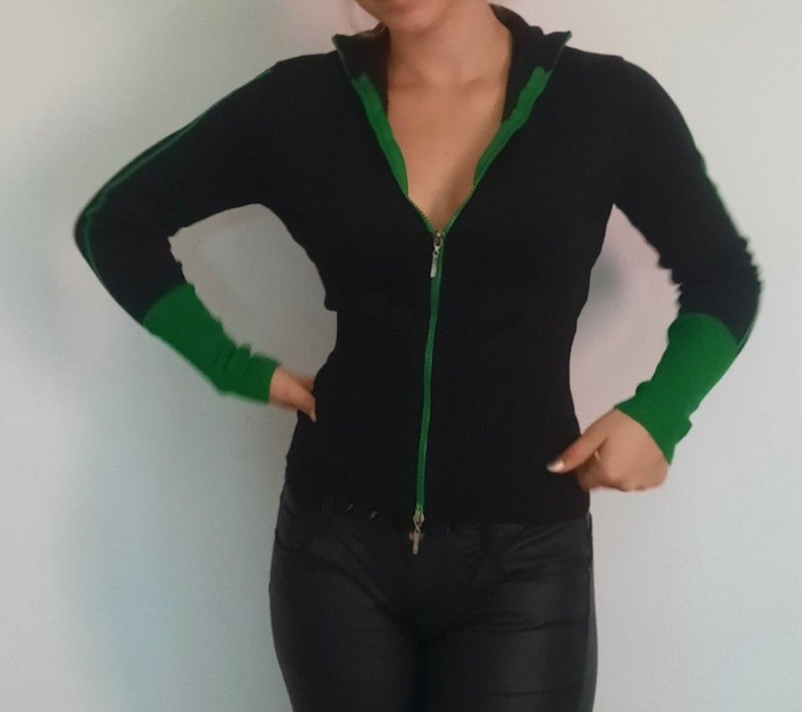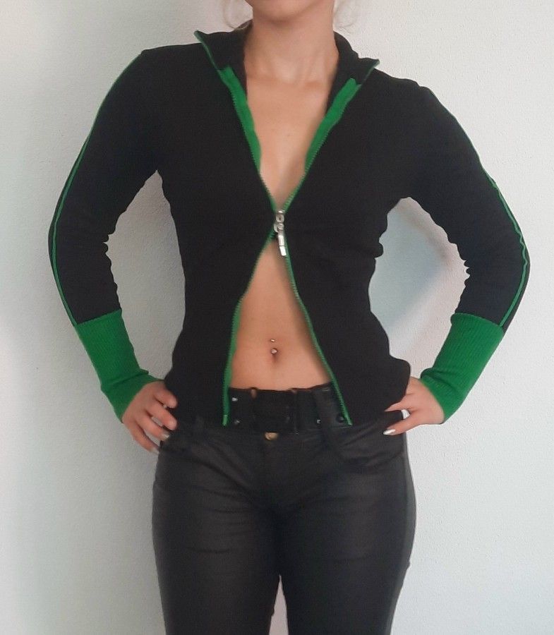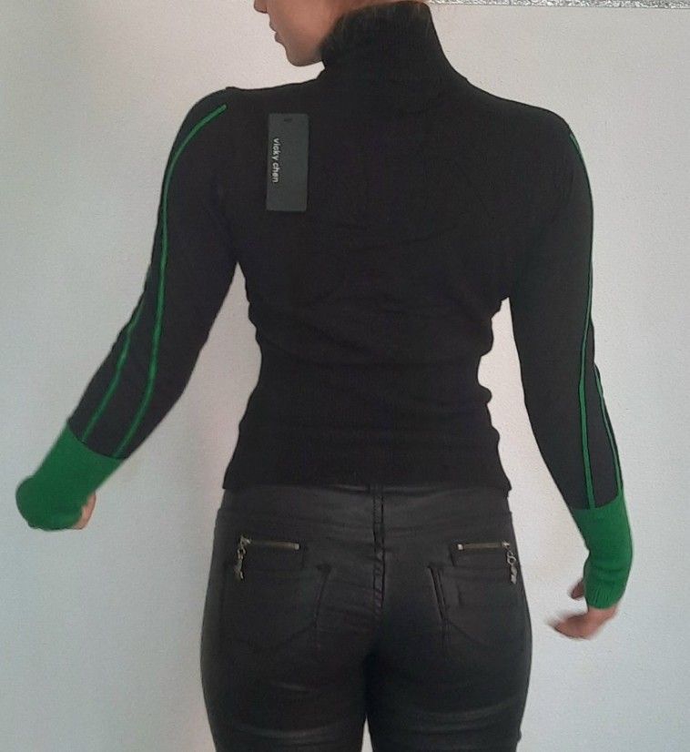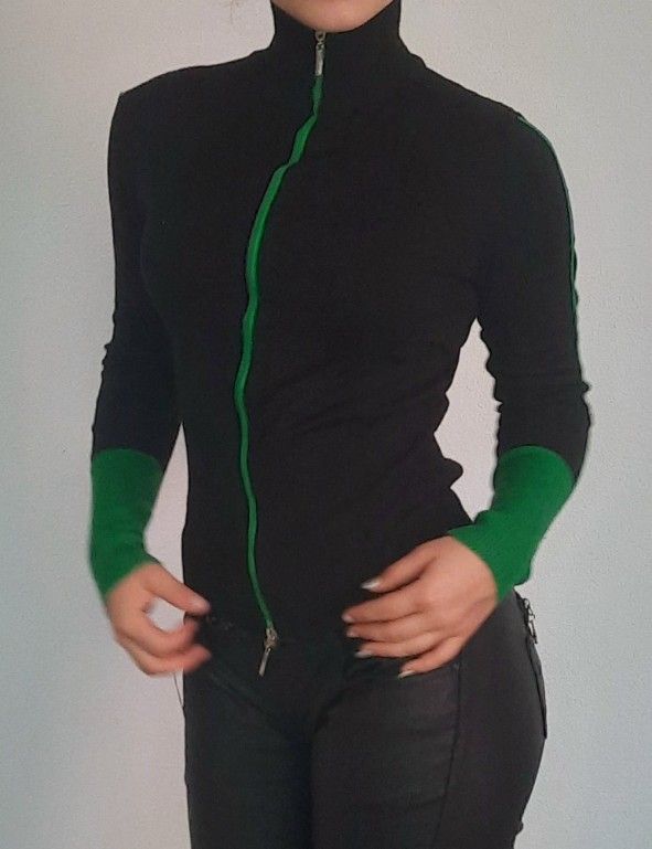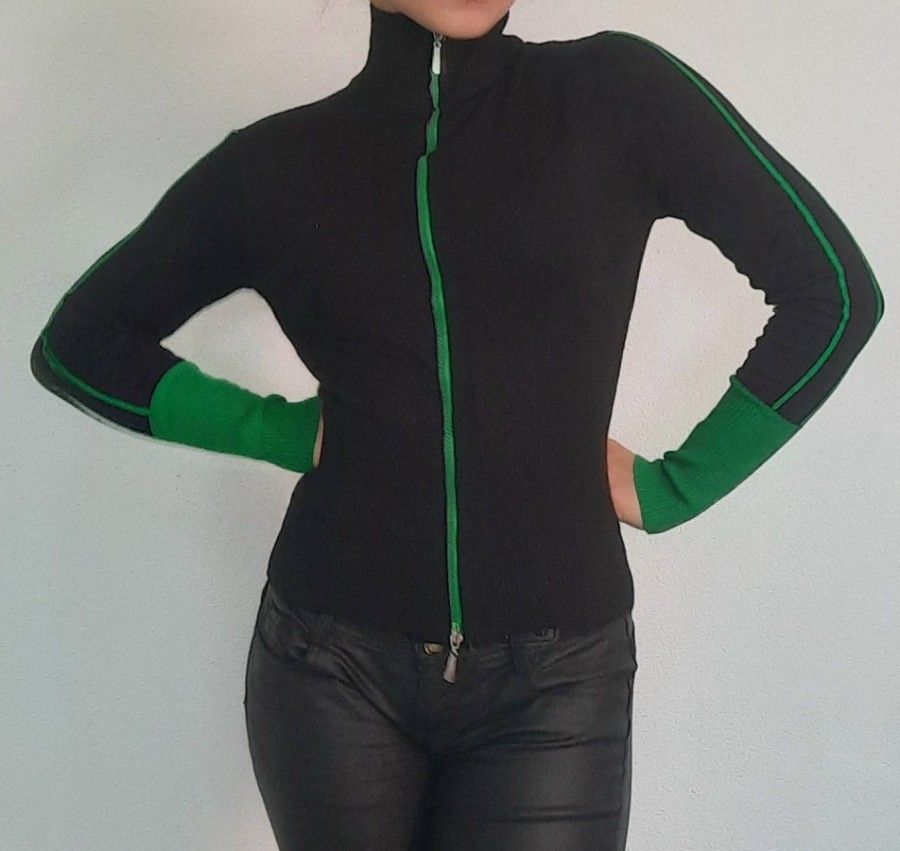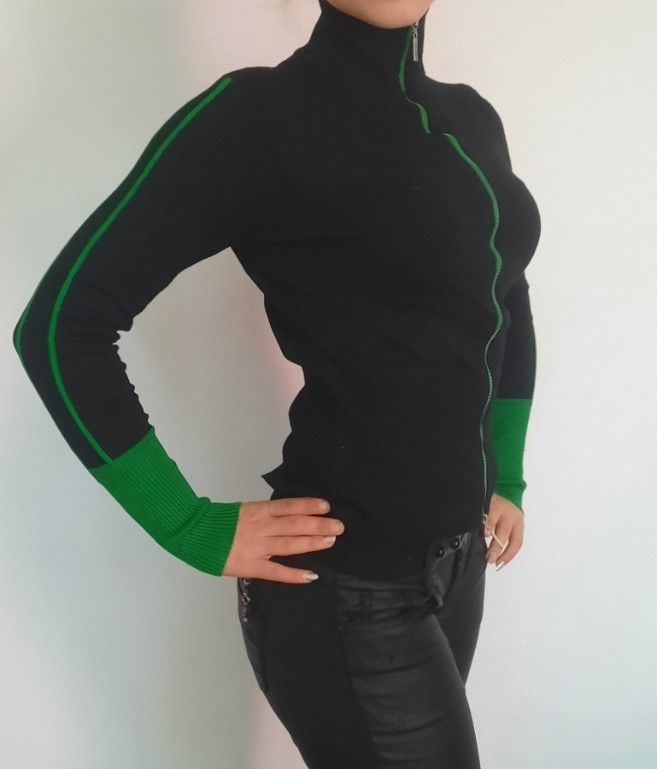 Feinstrick Zipper Pullover Pulli - Weste - Cardigan Feinstrick mit Rippstrickabschlüssen Vorne 2 Wege Zipper Armabschüsse, Zipper und am dem Armen 2 Streifen in Grün in figurbetonter Silhouette elastisches Material Eye Catcher Hot & Sexy In-Style Look _____________________________ Im Artikel ste