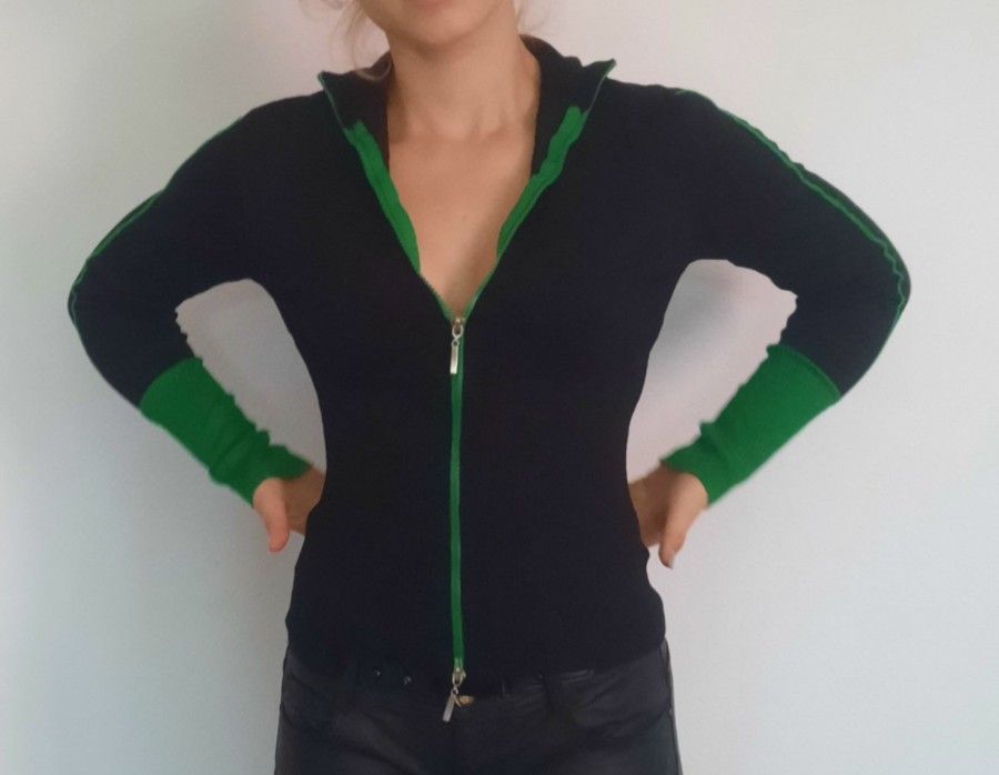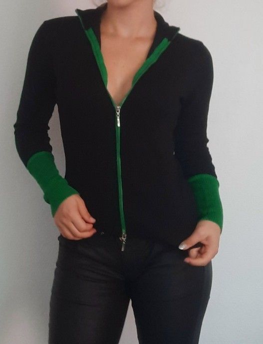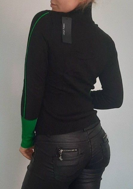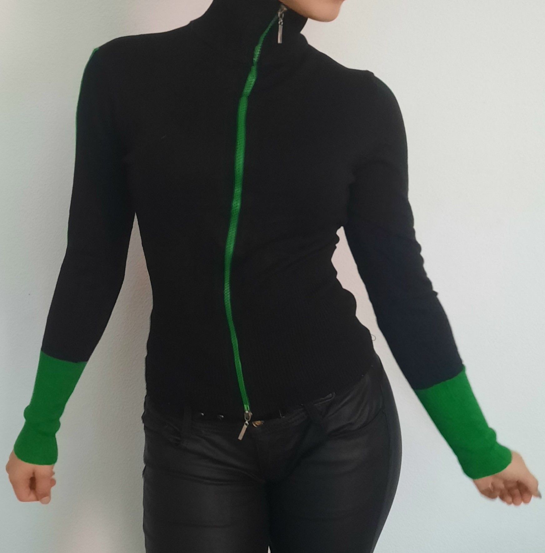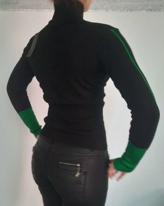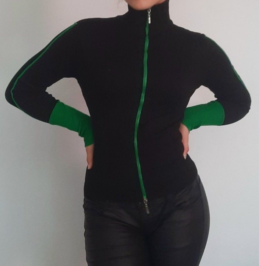 Feinstrick Zipper Pullover Pulli - Weste - Cardigan Feinstrick mit Rippstrickabschlüssen Vorne 2 Wege Zipper Armabschüsse, Zipper und am dem Armen 2 Streifen in Grün in figurbetonter Silhouette elastisches Material Eye Catcher Hot & Sexy In-Style Look _____________________________ Im Artikel ste