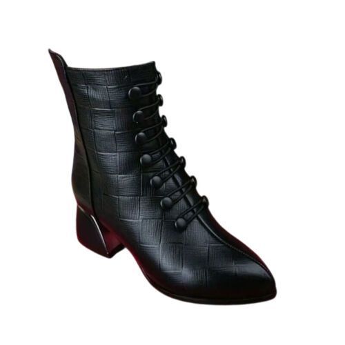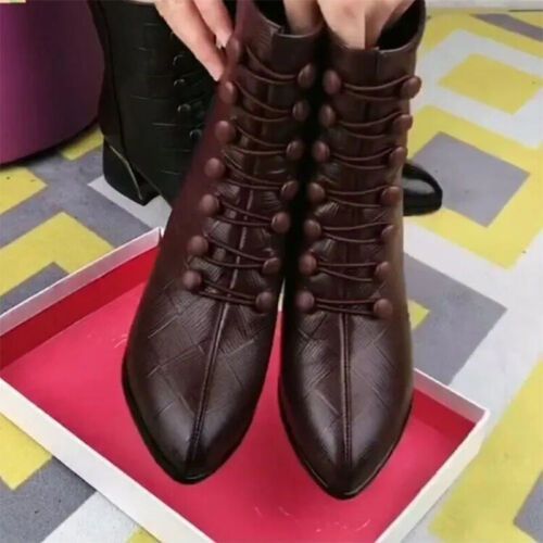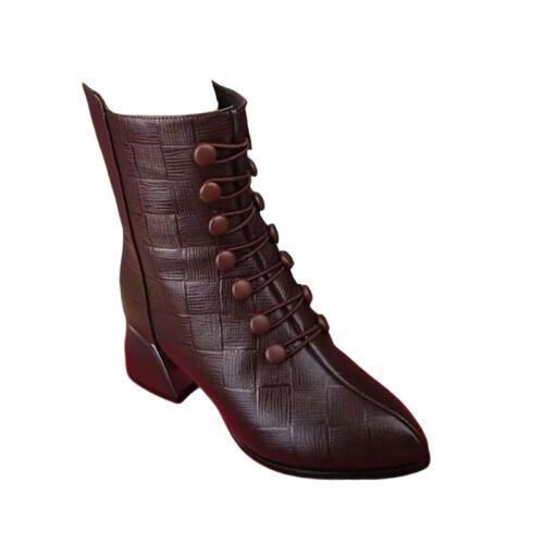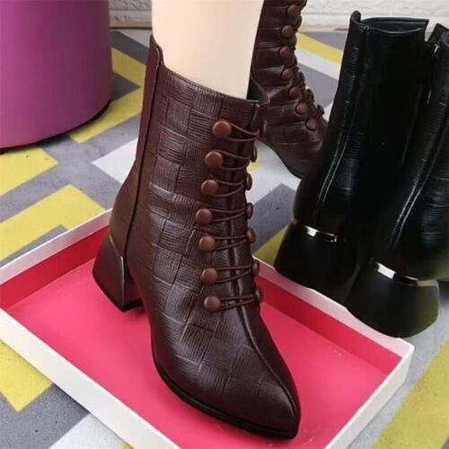 Damen Stiefel Seitenzip Blockabsatzstiefel Frauen Slip Draussen Spitze Schuhe