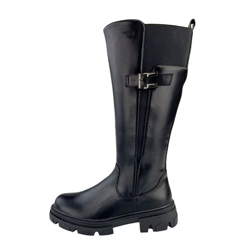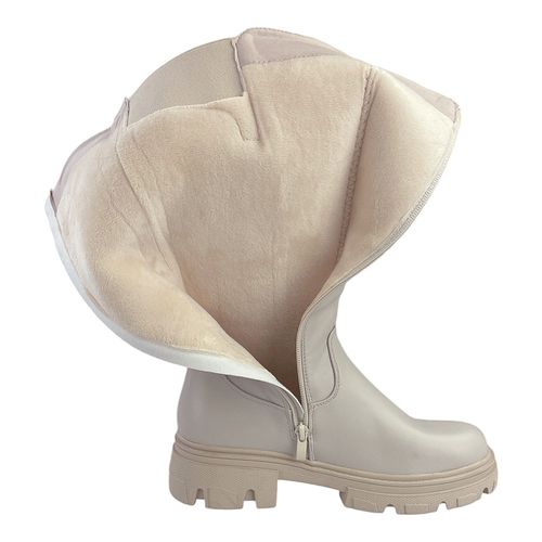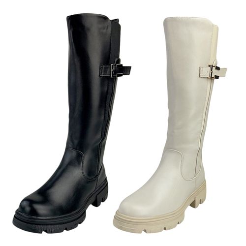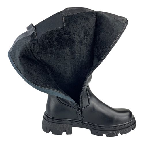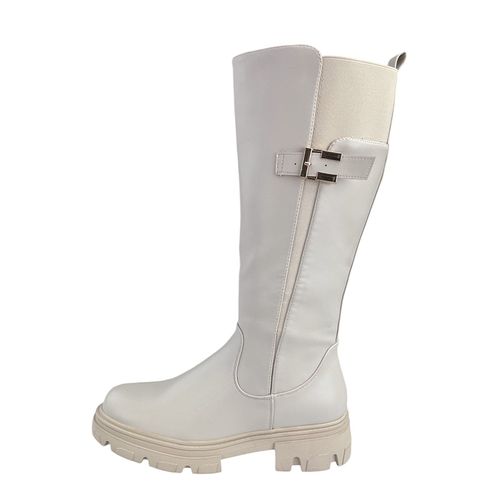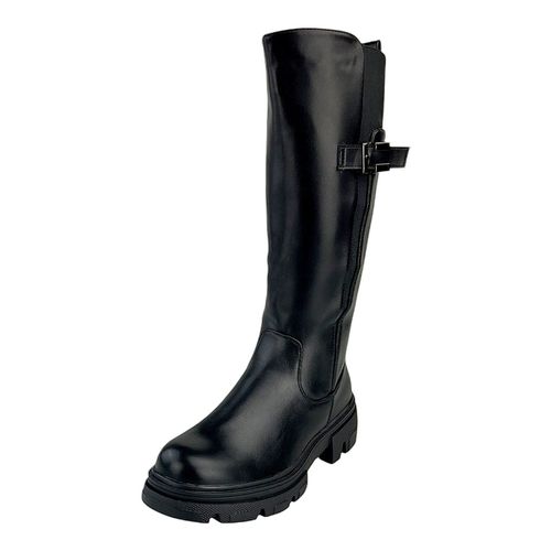 Damen Stiefel Winterstiefel Gefüttert Hohe Stiefel Boots Blockabsatz Leder-Optik