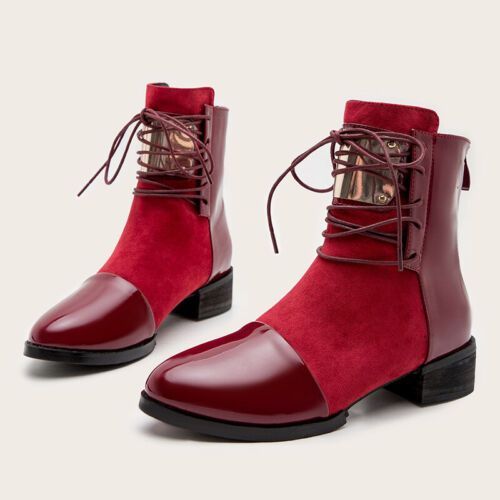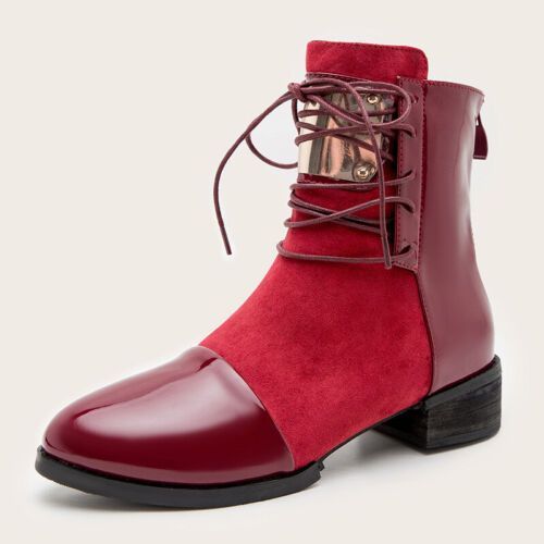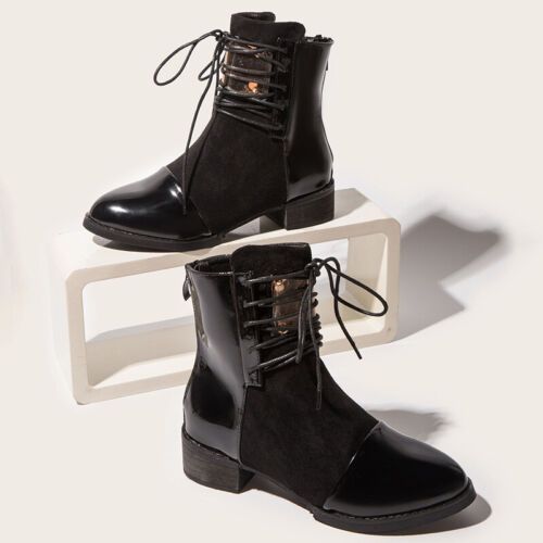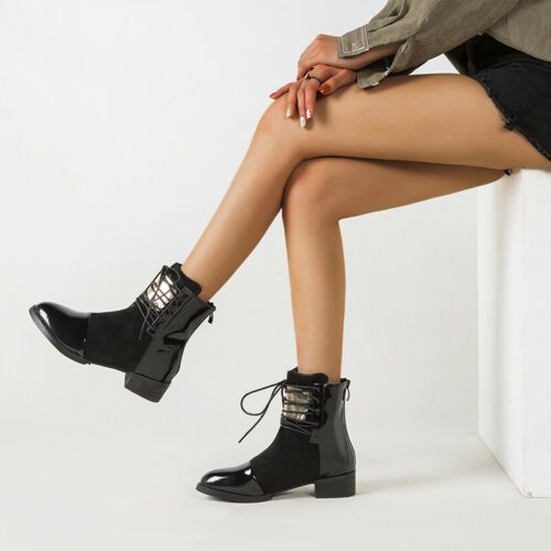 Damen Stiefelette Reibverschluss Stiefel Frauen Leicht Arbeit Blockabsatz Schuhe