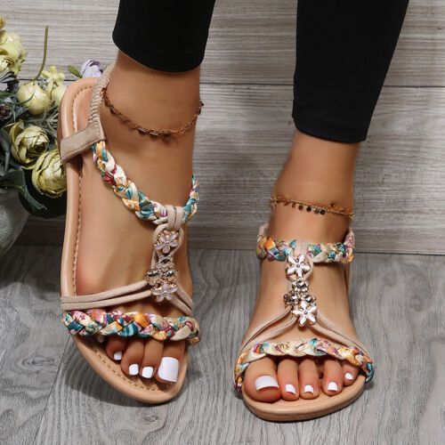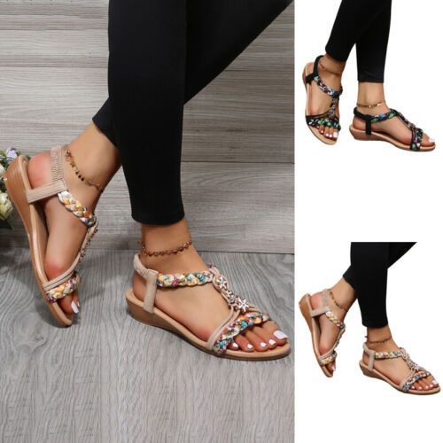 Damen Strandschuhe Schlupfen Sandalen Frauen Gummiband Party Fesselriemen