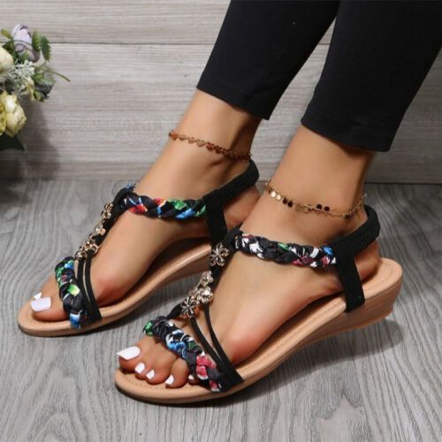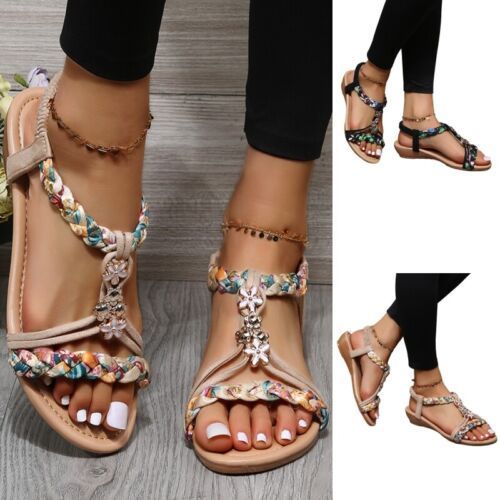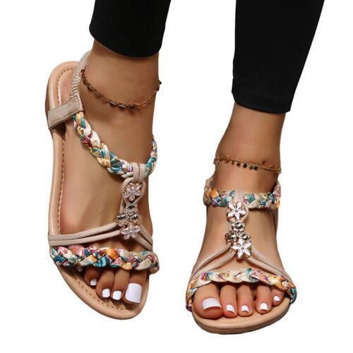 Damen Strandschuhe Schlupfen Sandalen Frauen Lassig Bohemien Fesselriemen