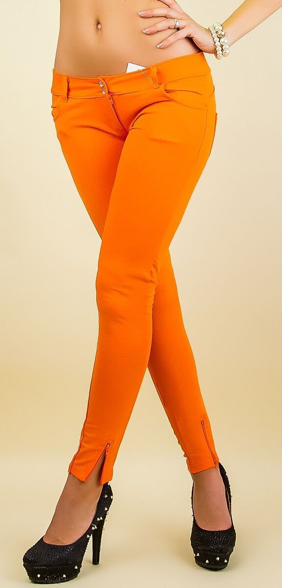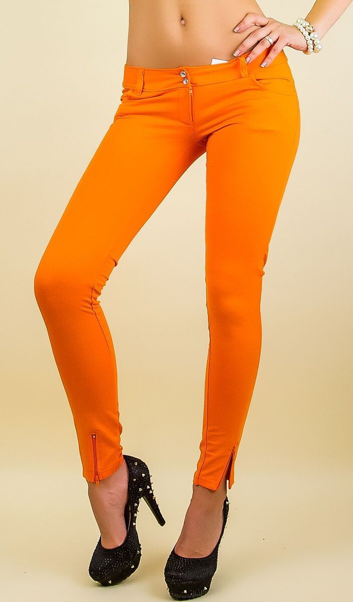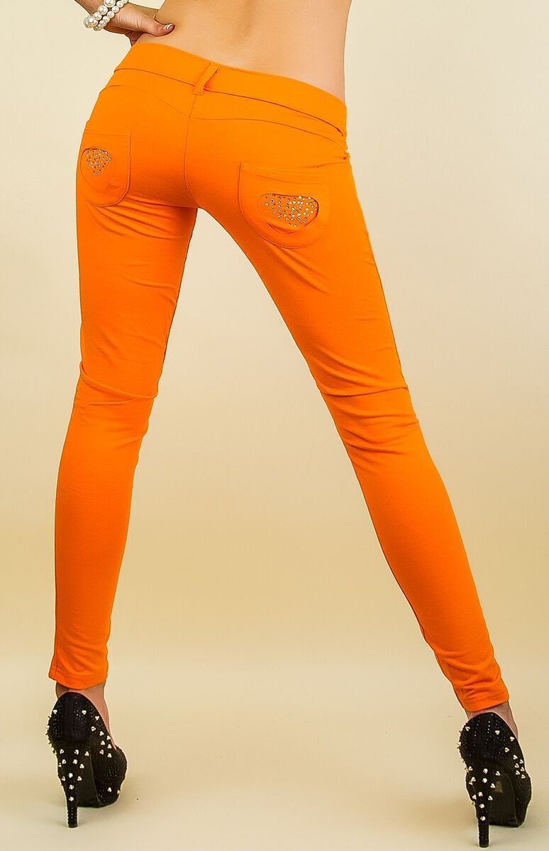 Damen Stretch Hüft Hose Stoff Röhre skinny Strass S 34 M 36 L 38 XL 40 XXL 42 orange
