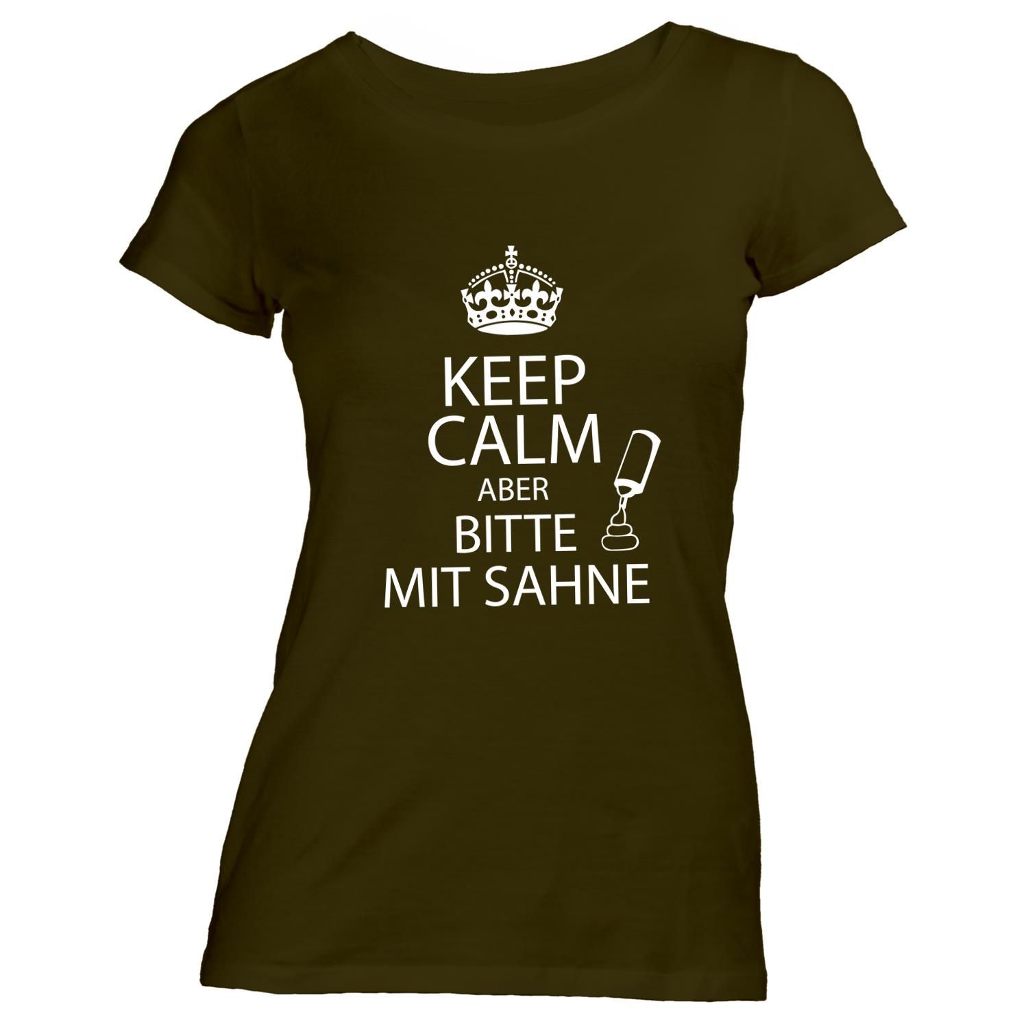 Damen T-Shirt KEEP CALM aber bitte mit Sahne