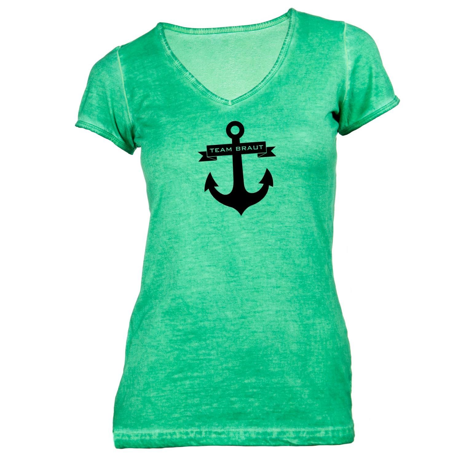 Damen T-Shirt V-Ausschnitt Anker/ Band - Team Braut