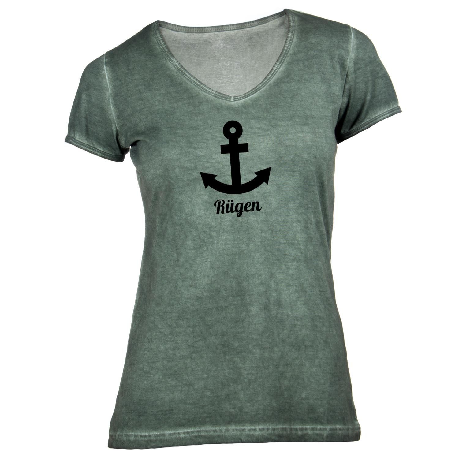 Damen T-Shirt V-Ausschnitt Anker Rügen