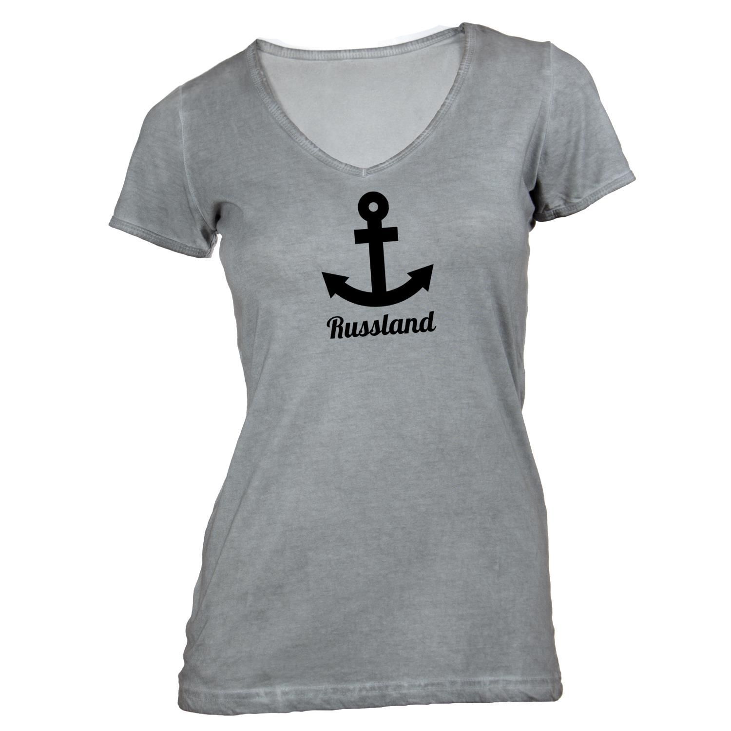 Damen T-Shirt V-Ausschnitt Anker Russland