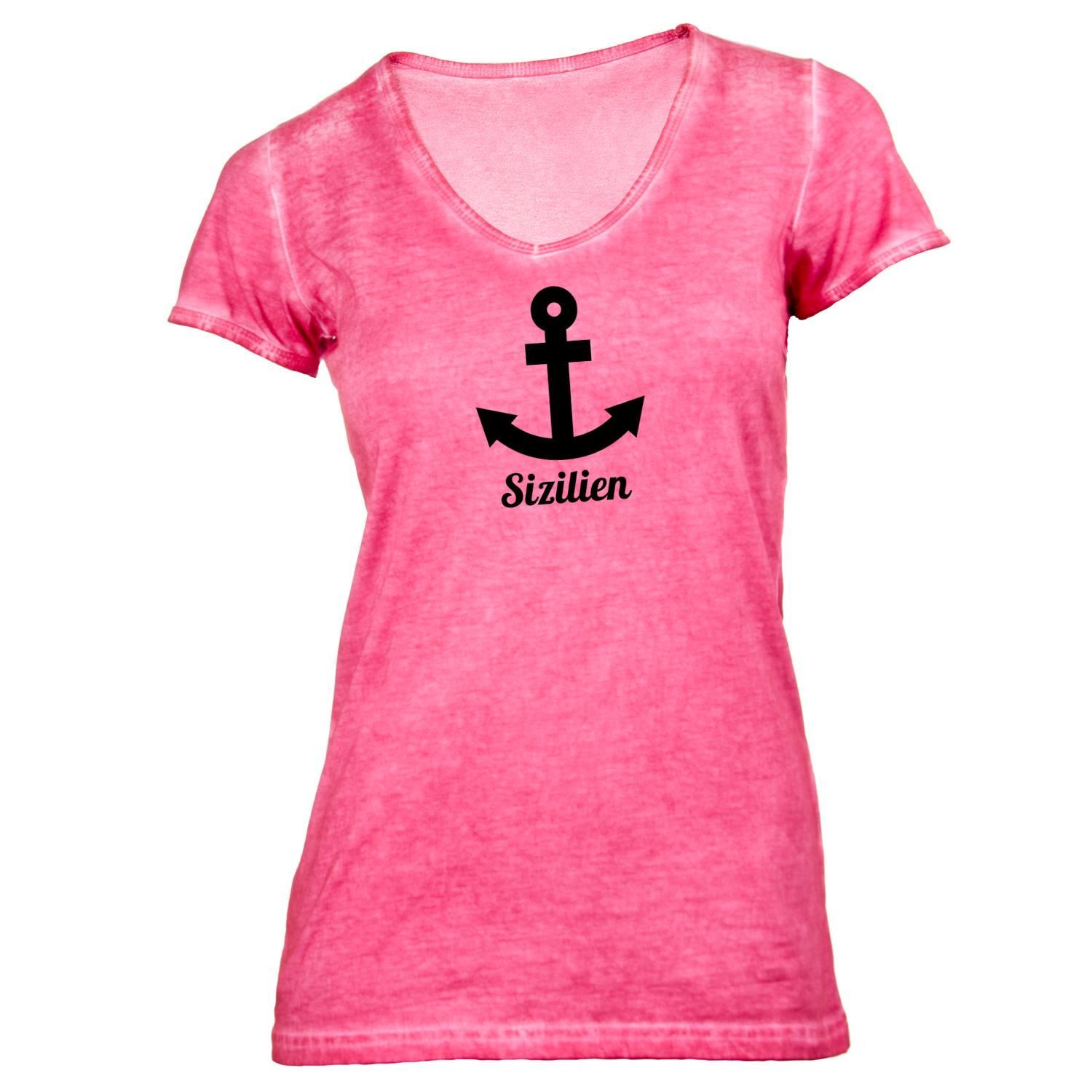 Damen T-Shirt V-Ausschnitt Anker Sizilien