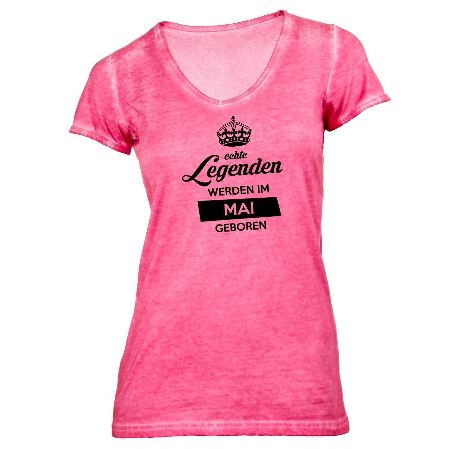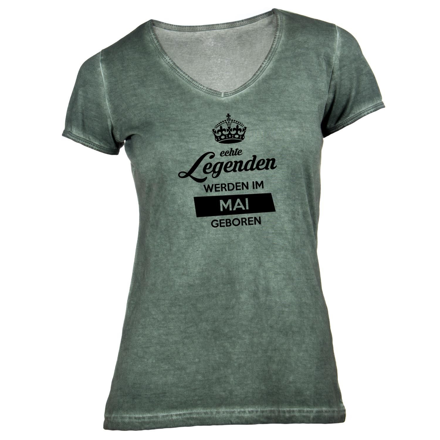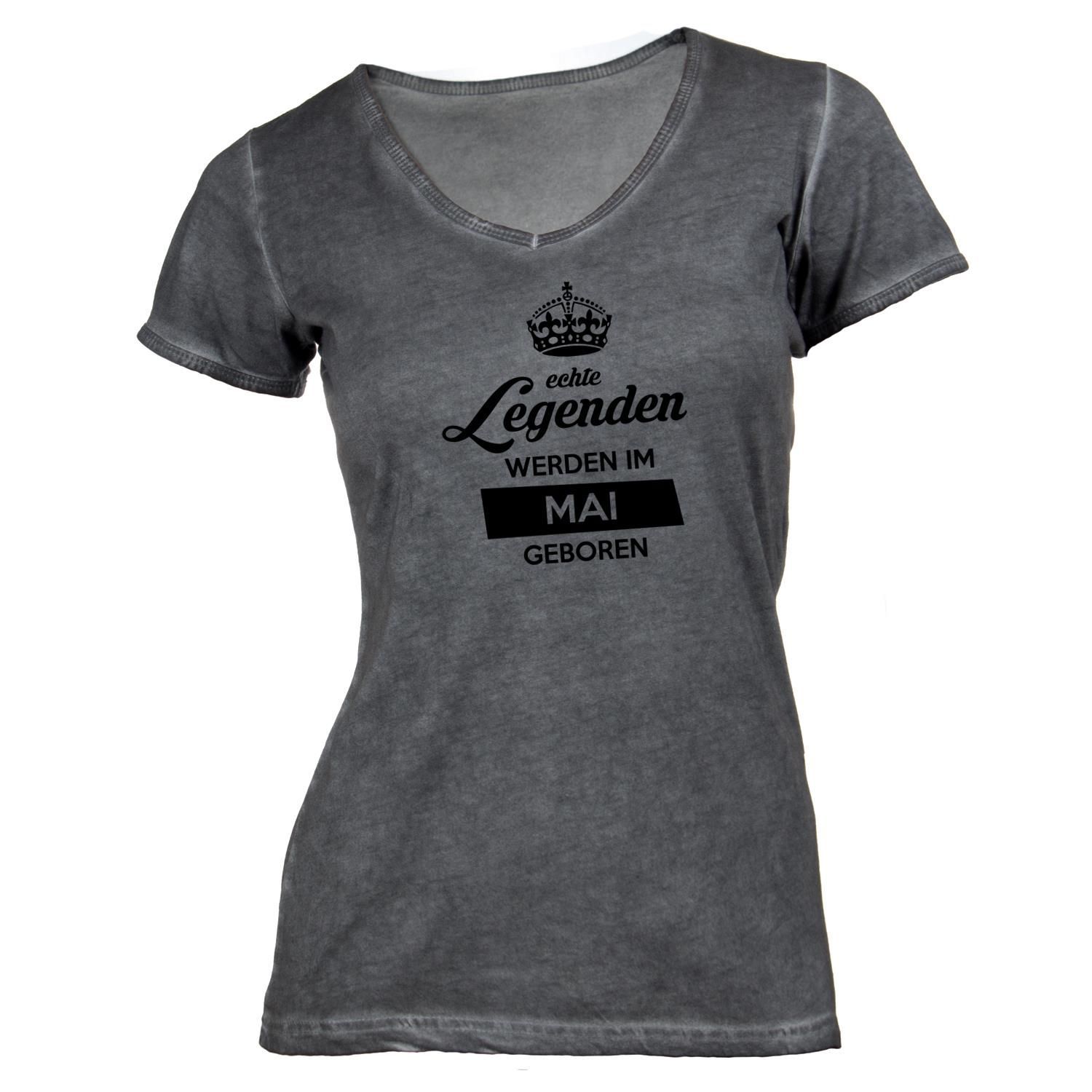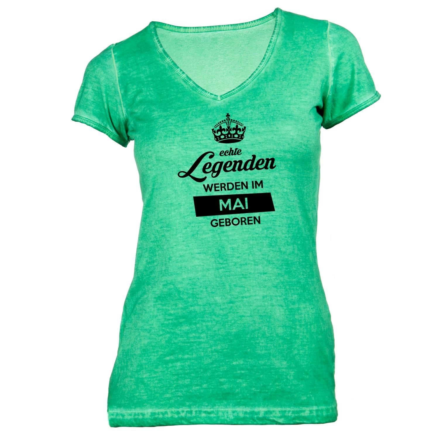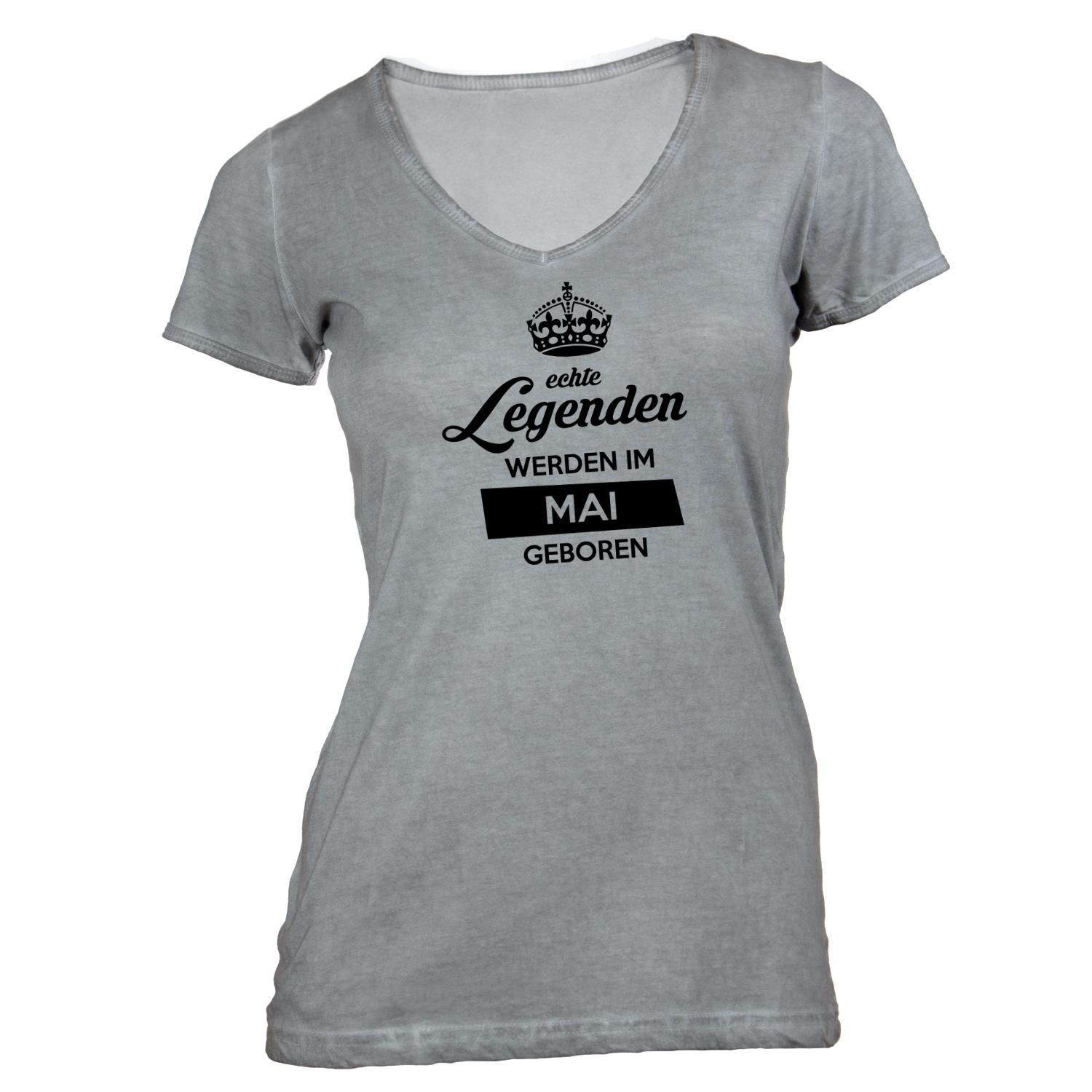 Damen T-Shirt V-Ausschnitt Echte Legenden werden im Mai geboren