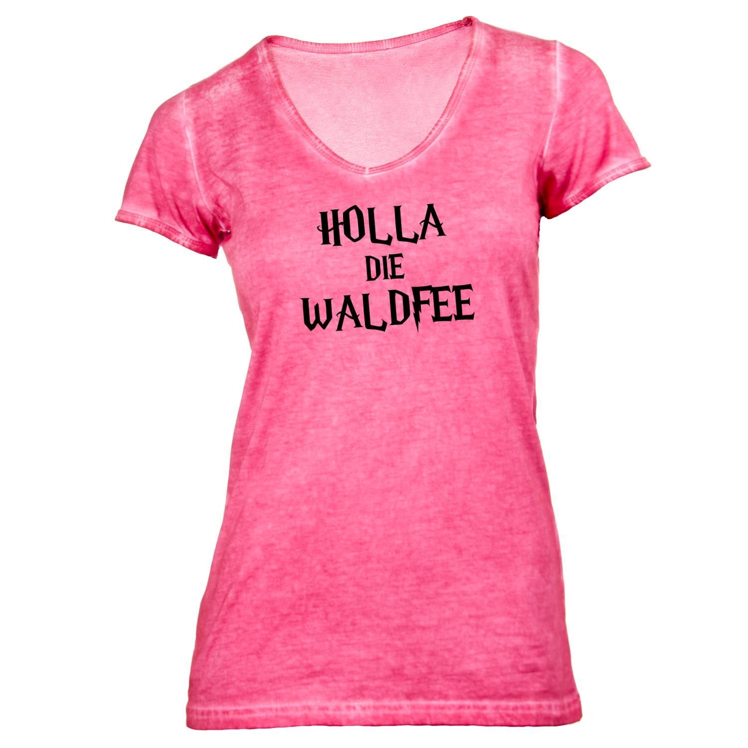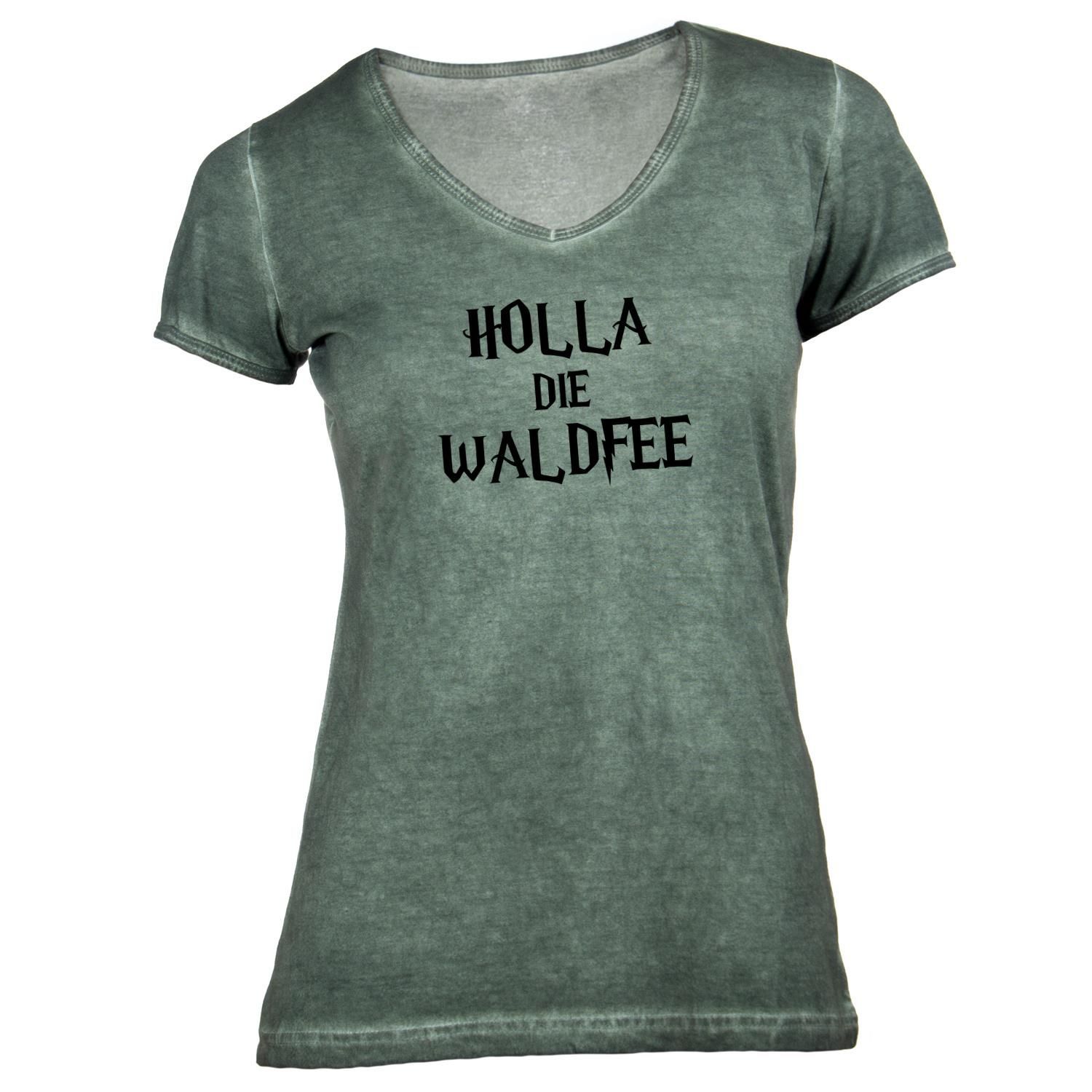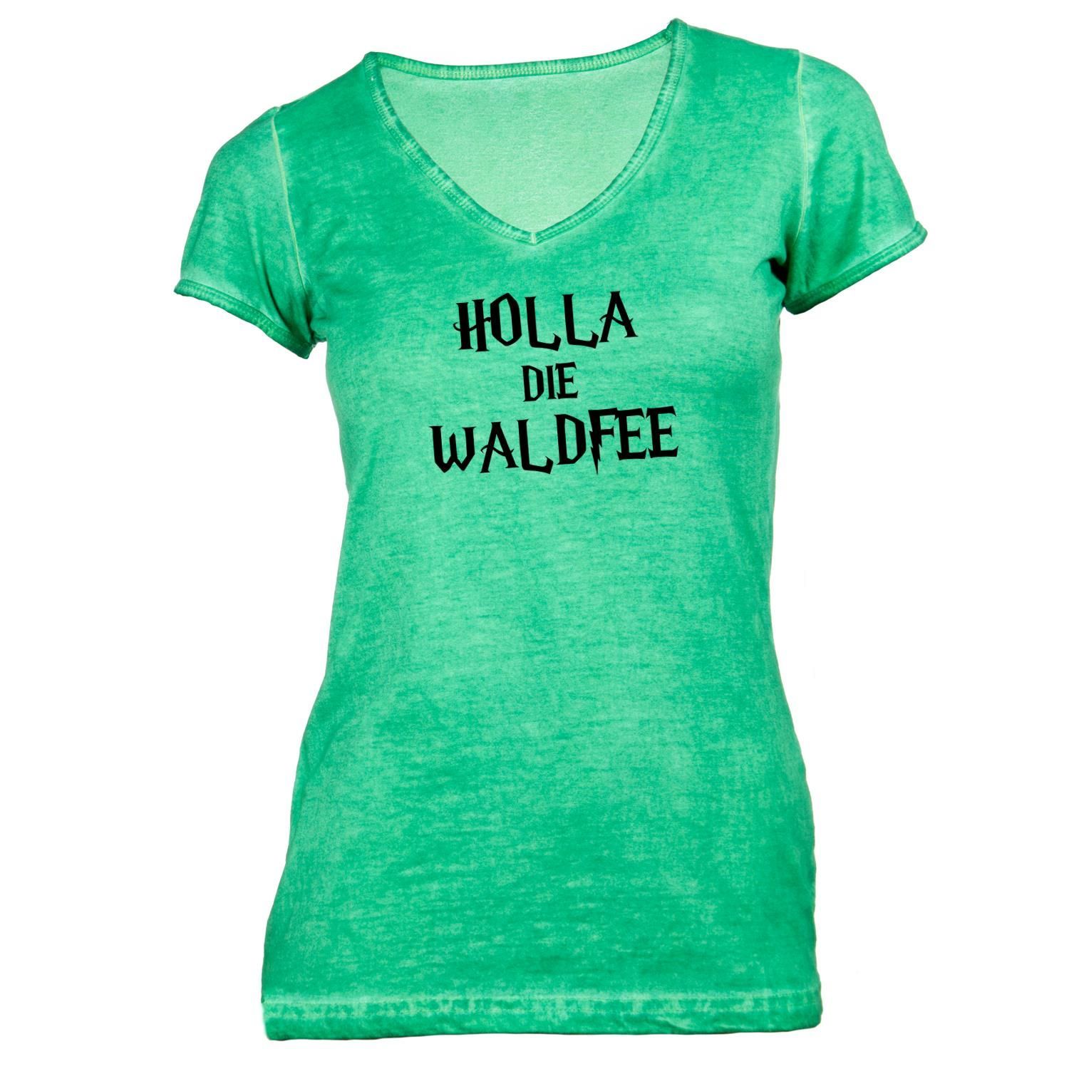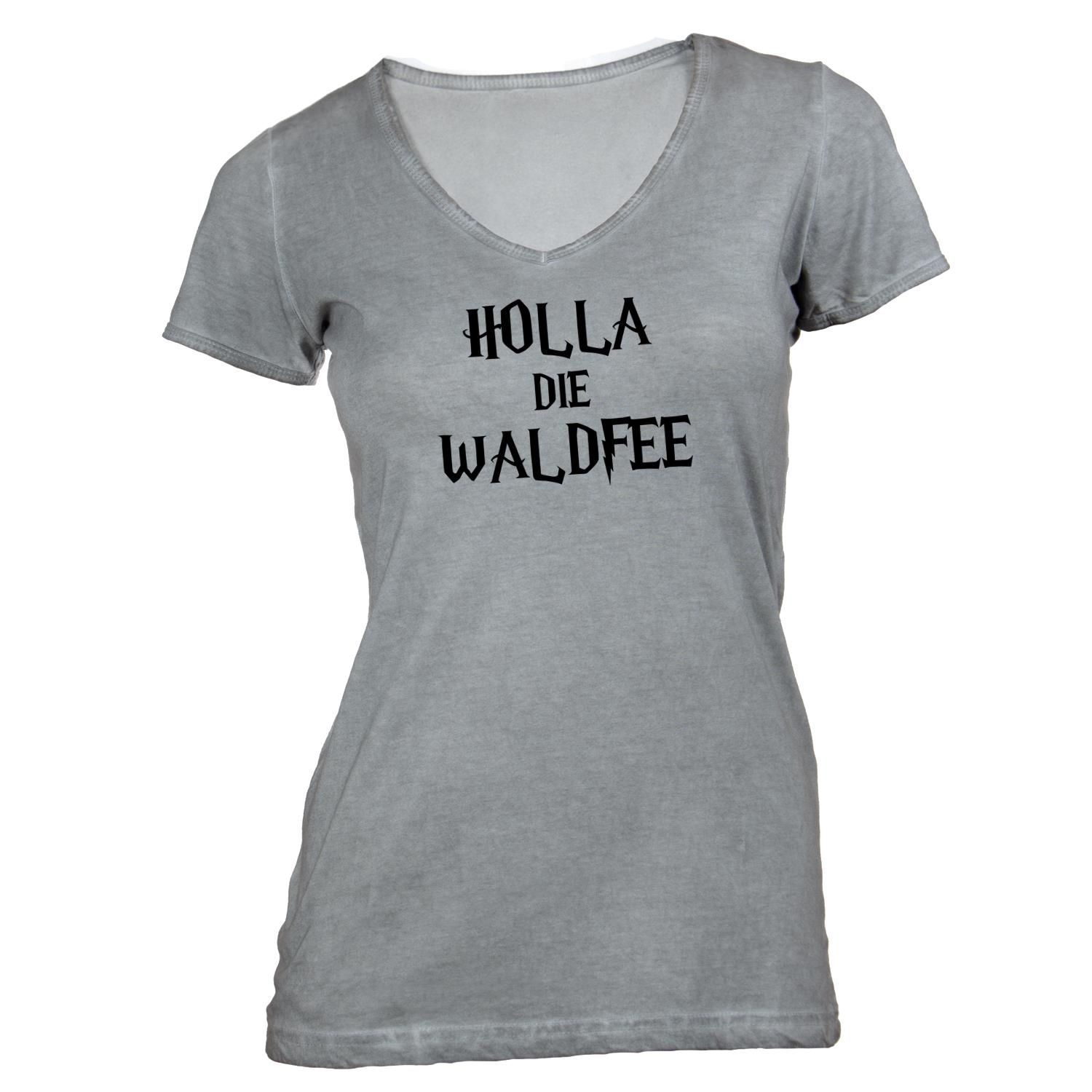 Damen T-Shirt V-Ausschnitt Holla die Waldfee