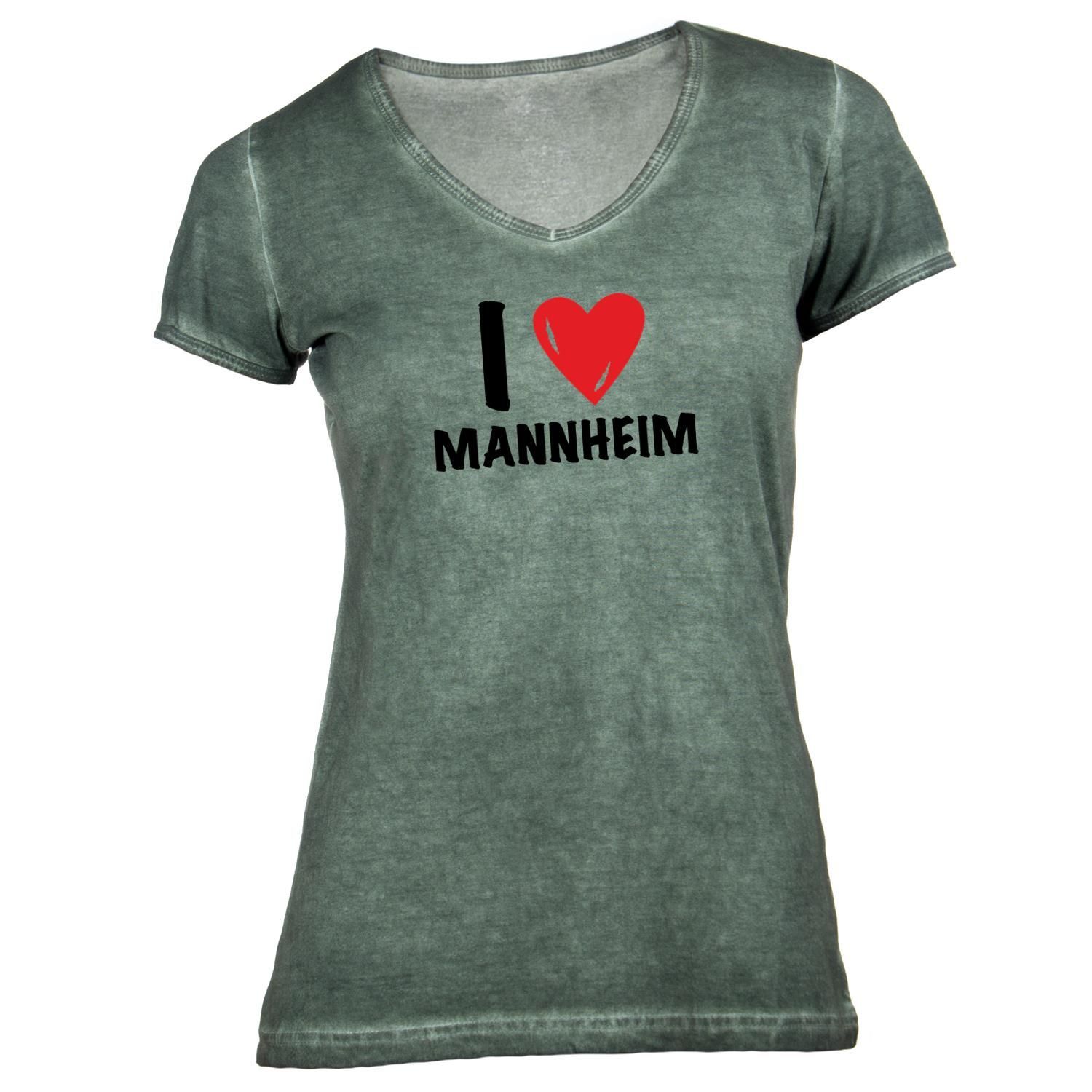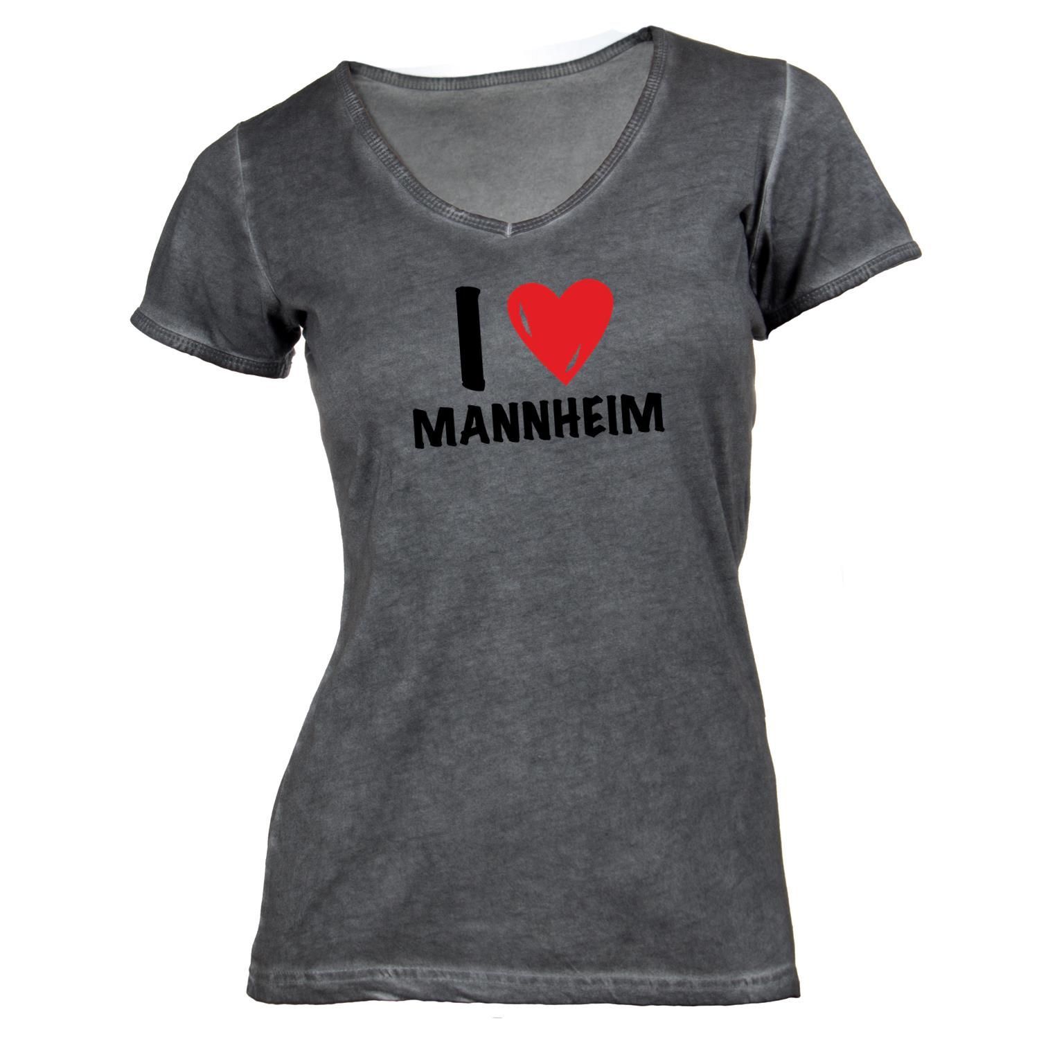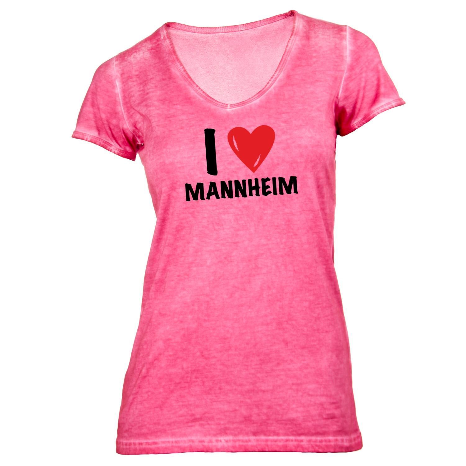 Damen T-Shirt V-Ausschnitt I love Mannheim