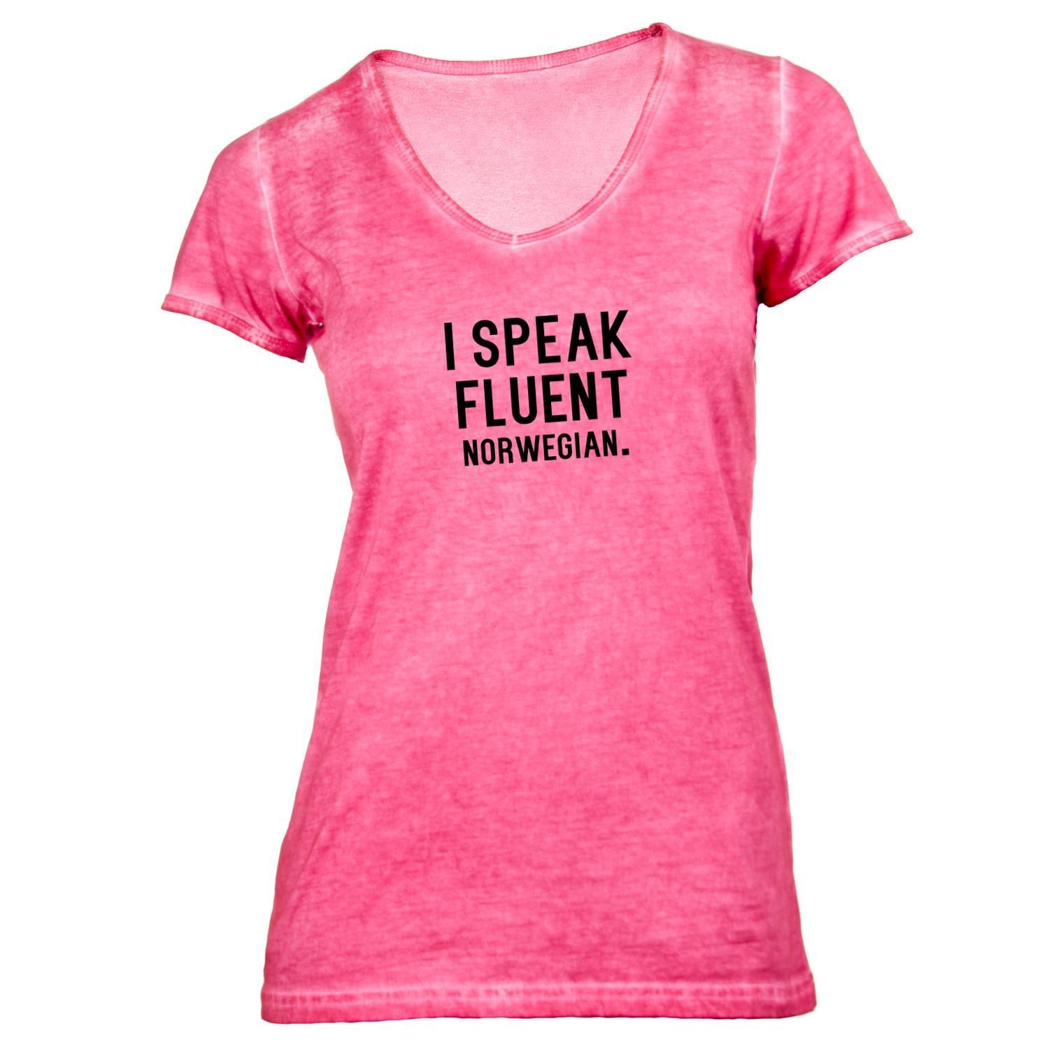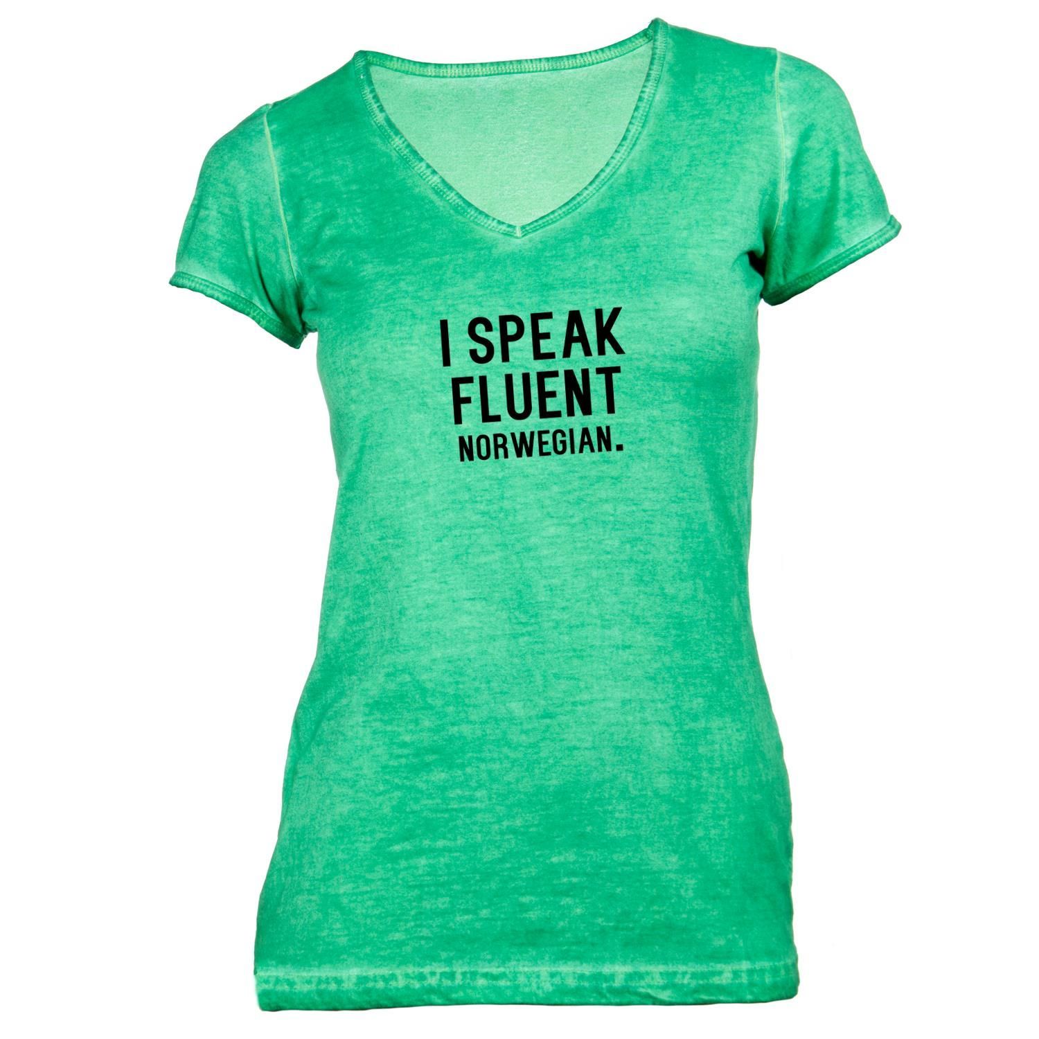 Damen T-Shirt V-Ausschnitt I speak fluent norwegian