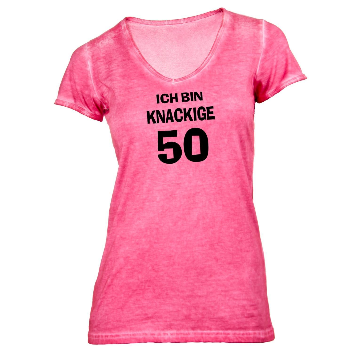 Damen T-Shirt V-Ausschnitt Ich bin knackige 50