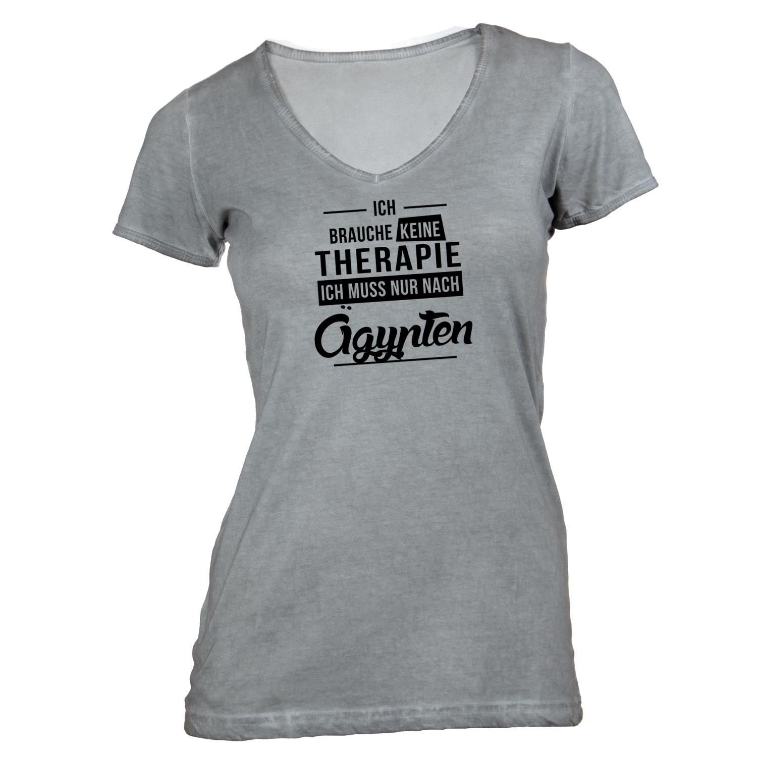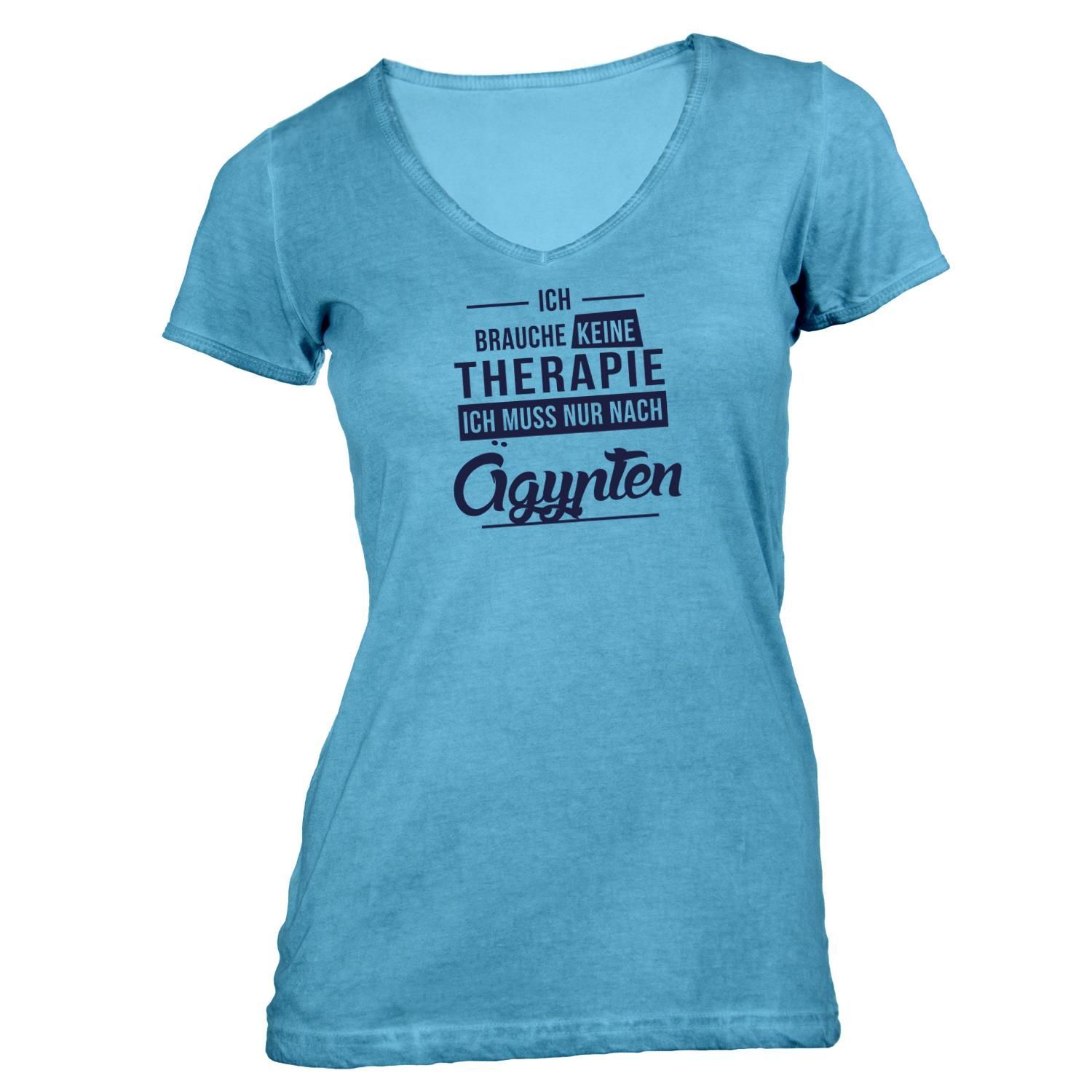 Damen T-Shirt V-Ausschnitt Ich brauche keine Therapie - Ich muss nur nach Ägypten