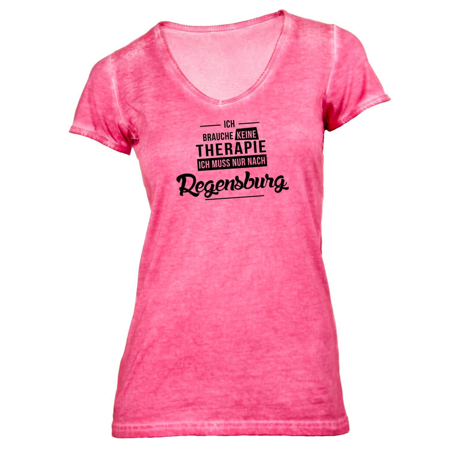 Damen T-Shirt V-Ausschnitt Ich brauche keine Therapie - Ich muss nur nach Regensburg