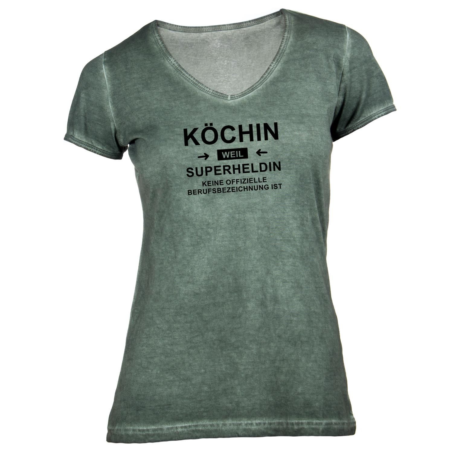 Damen T-Shirt V-Ausschnitt Köchin - Superheldin