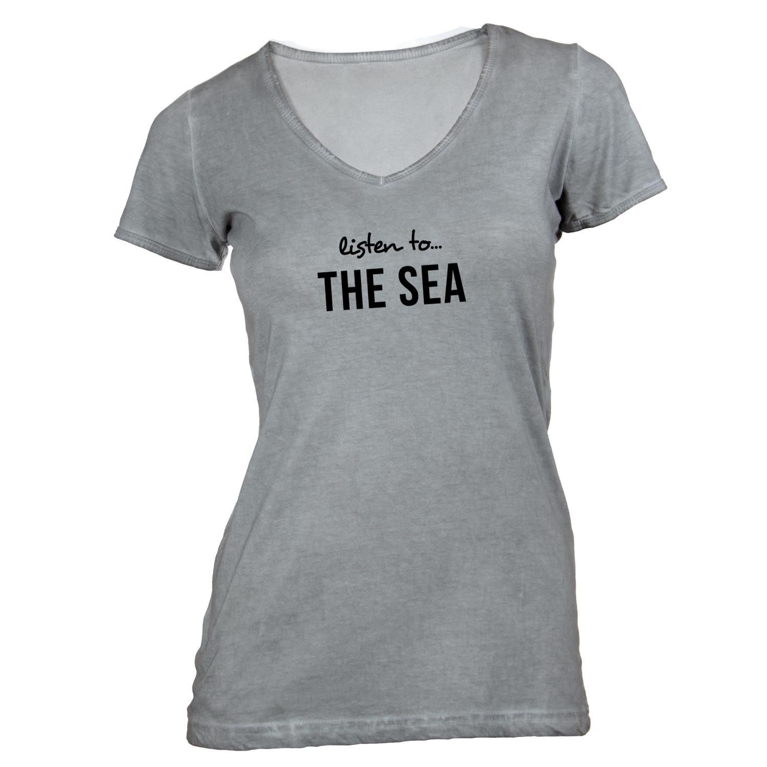 Damen T-Shirt V-Ausschnitt Listen to the Sea