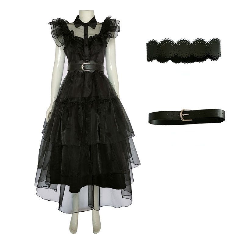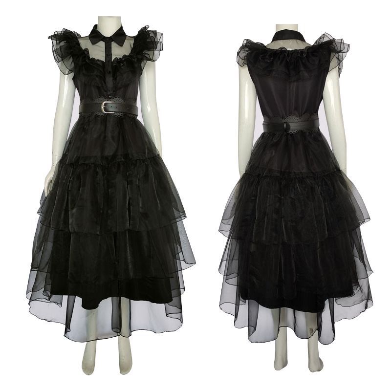 Damen The Addams Family Wednesday Cosplay Kostüm Urlaubs Party Cos Stil01