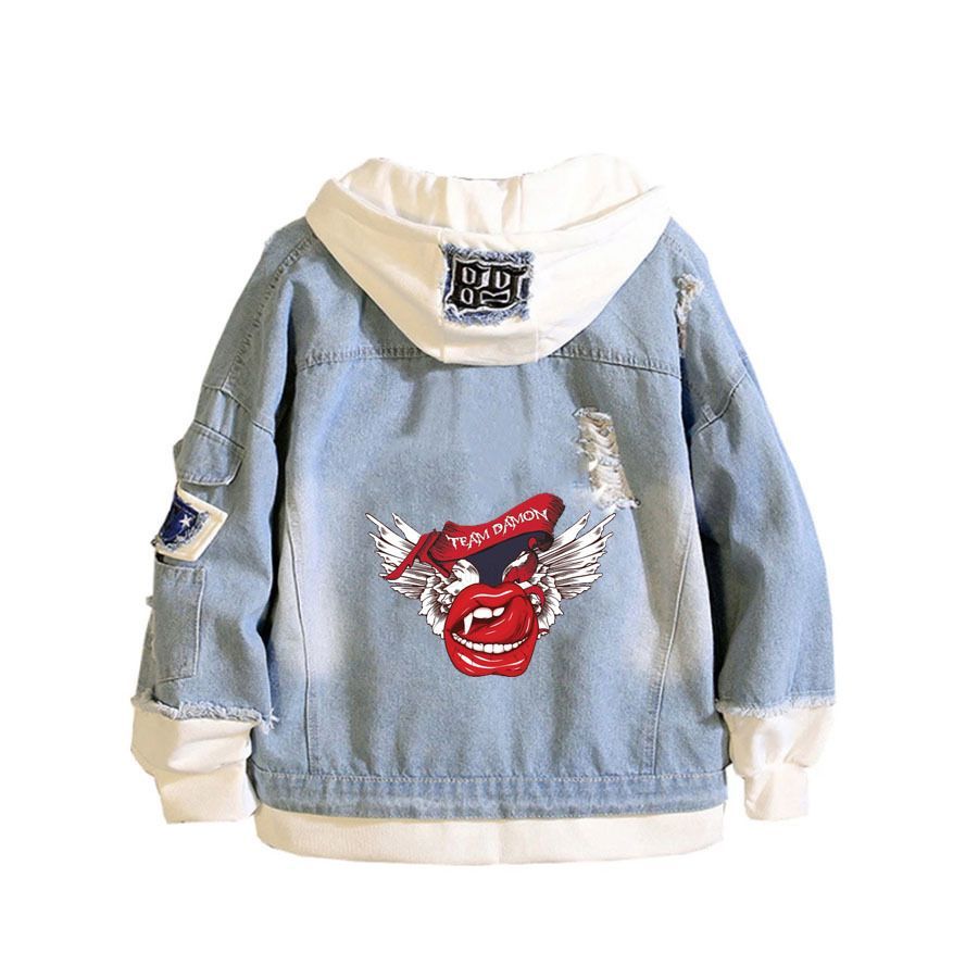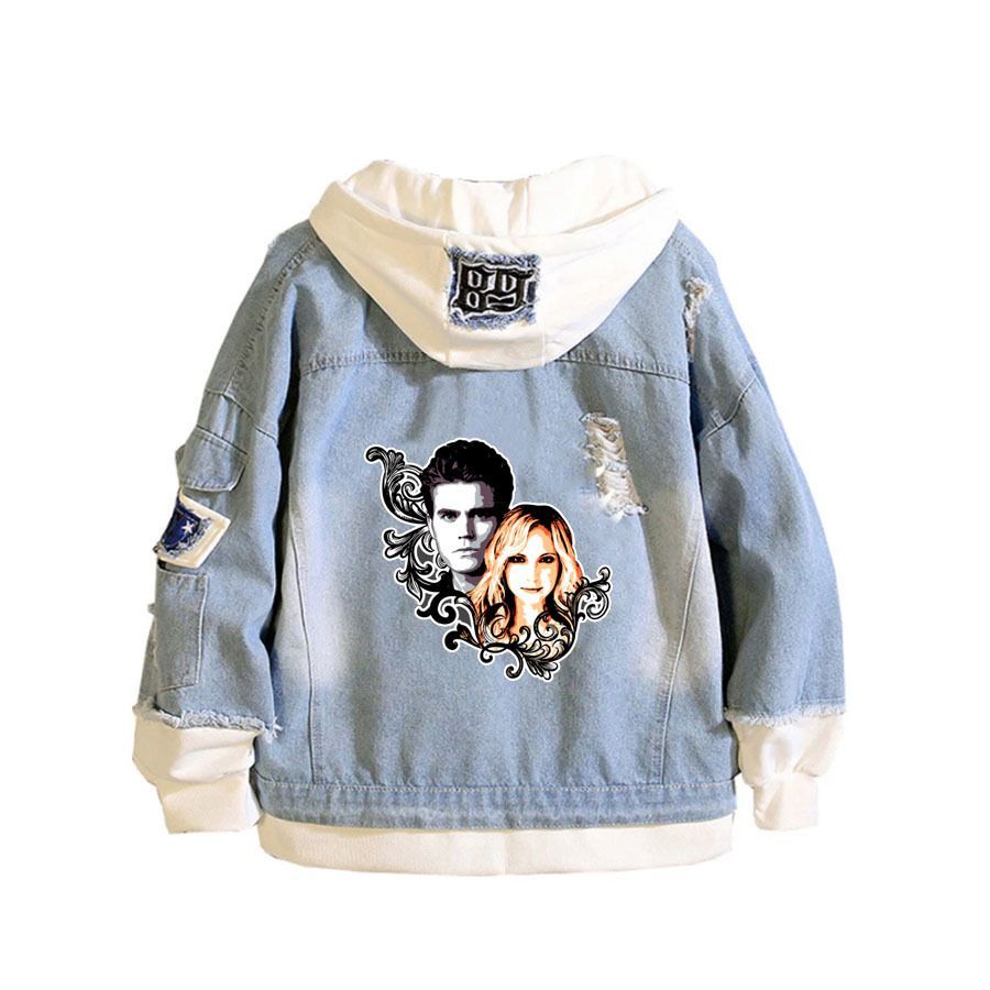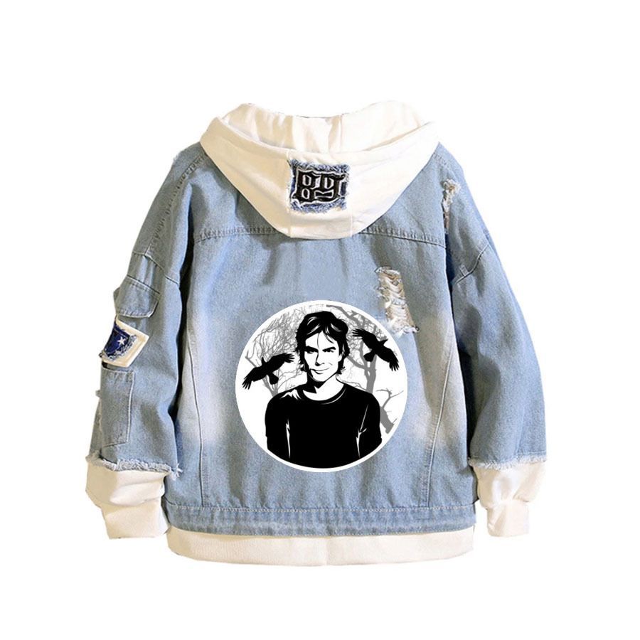 Damen The Vampire Diaries Kapuze Jeansjacke Stefan Damon Hoodie Mantel Sweatshirt