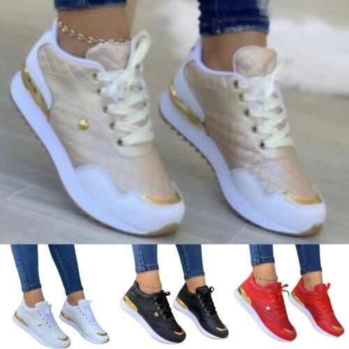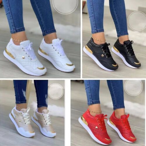 Damen Turnschuhe Runder Zeh Laufschuh Frauen Slip Gehen Schnuren Sportschuhe