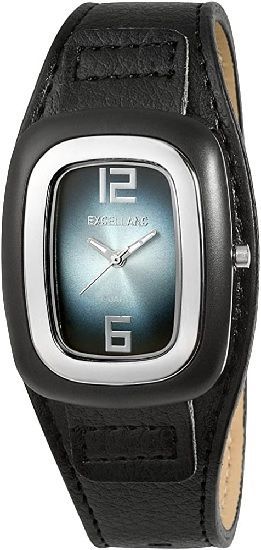 Damen Unterleg Armbanduhr Kunstleder schwarz eckiges blaues Ziffernblatt Analog