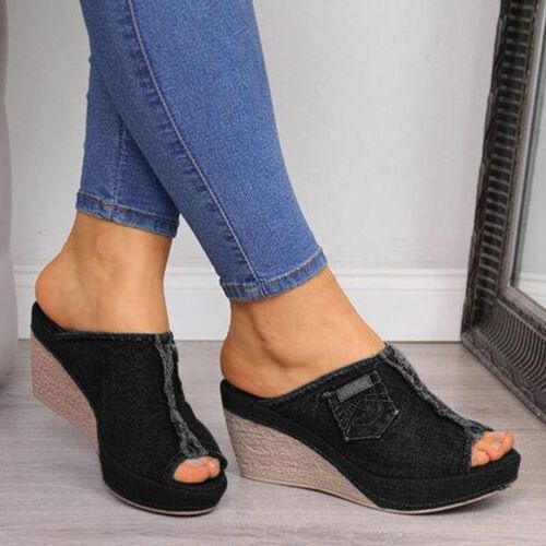 Damen Wedges Keilabsatz Sandalen Pantoletten Sandaletten Freizeit Sommerschuhe@1