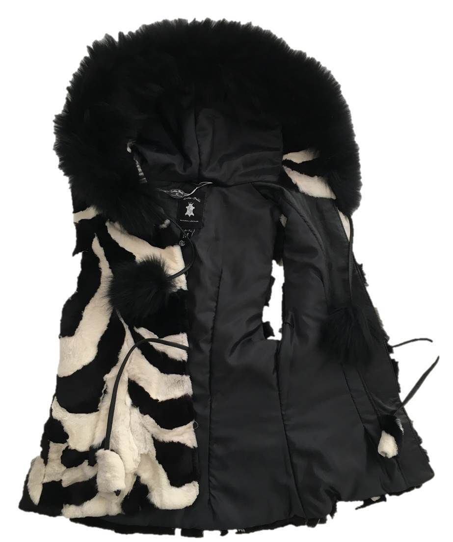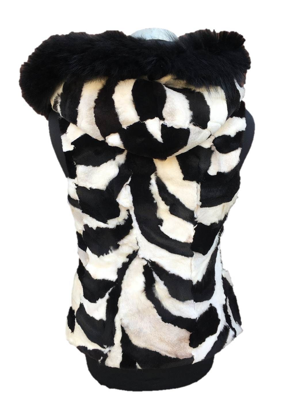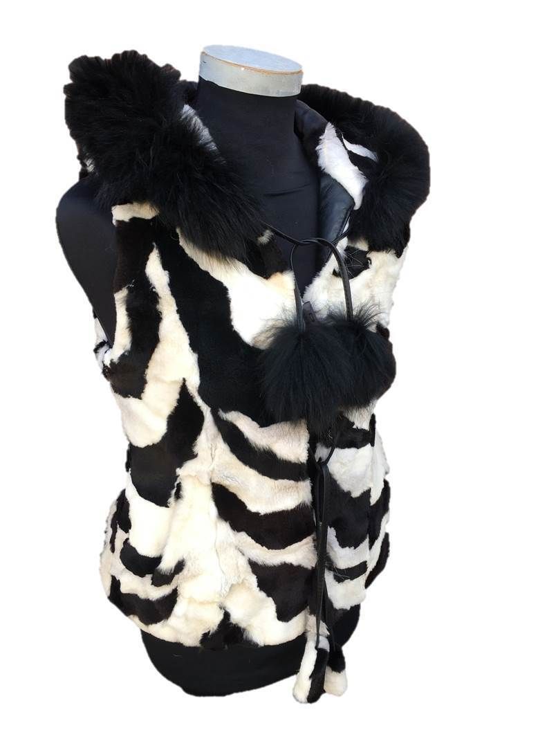 Damen Winter-Weste Fuchsfellweste Fellweste Fuchsfell Weste Zebra schwarz/ weiß