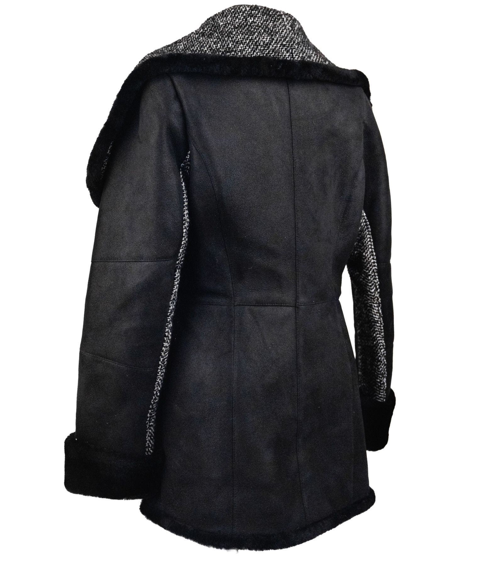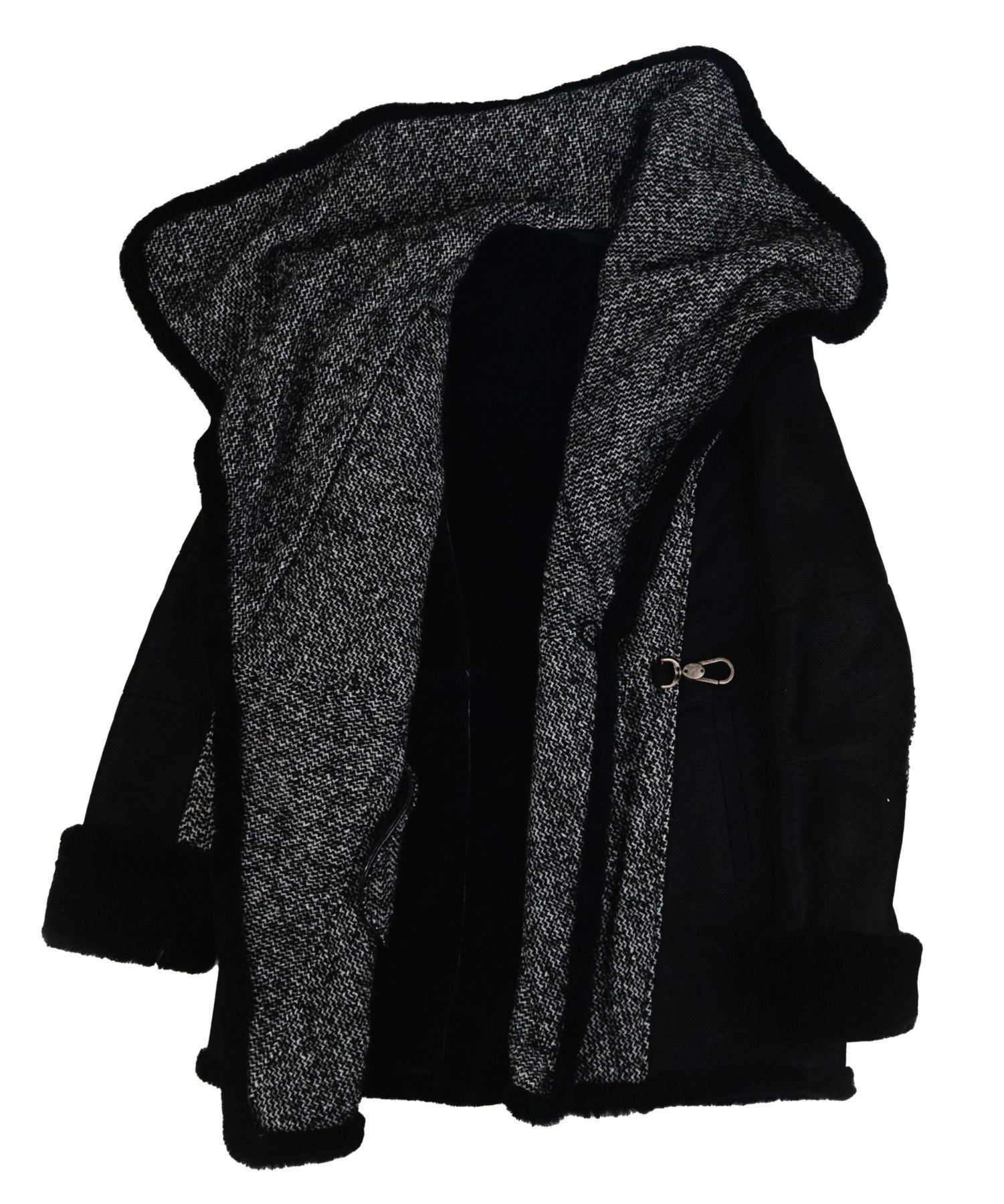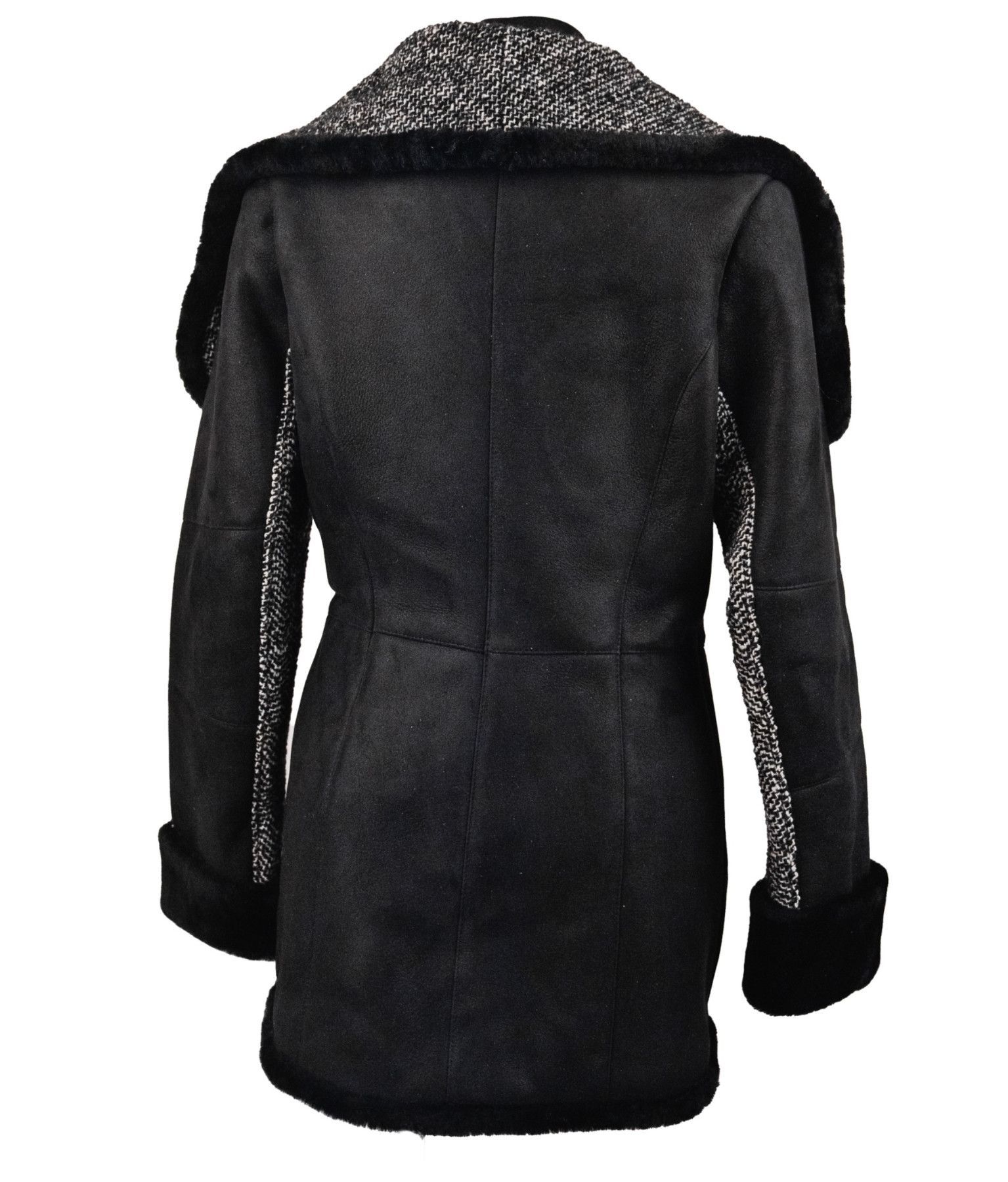 Damen Winterjacke Lederjacke Schaffell Felljacke Wolljacke Merino Jacke Schwarz
