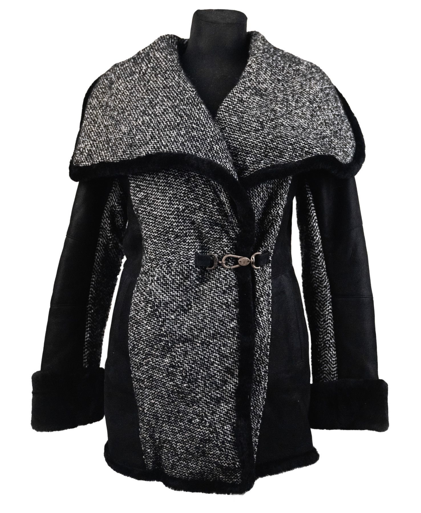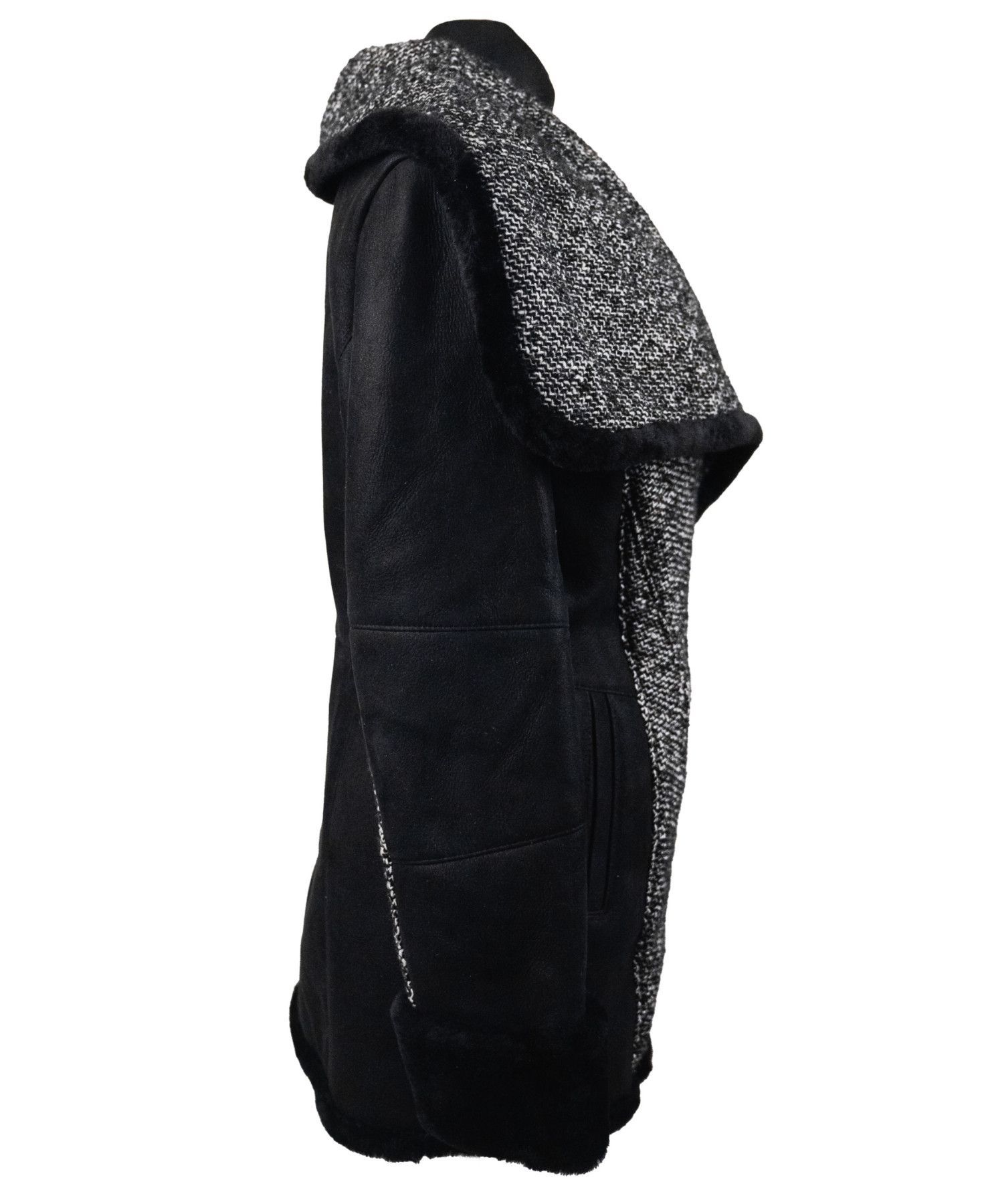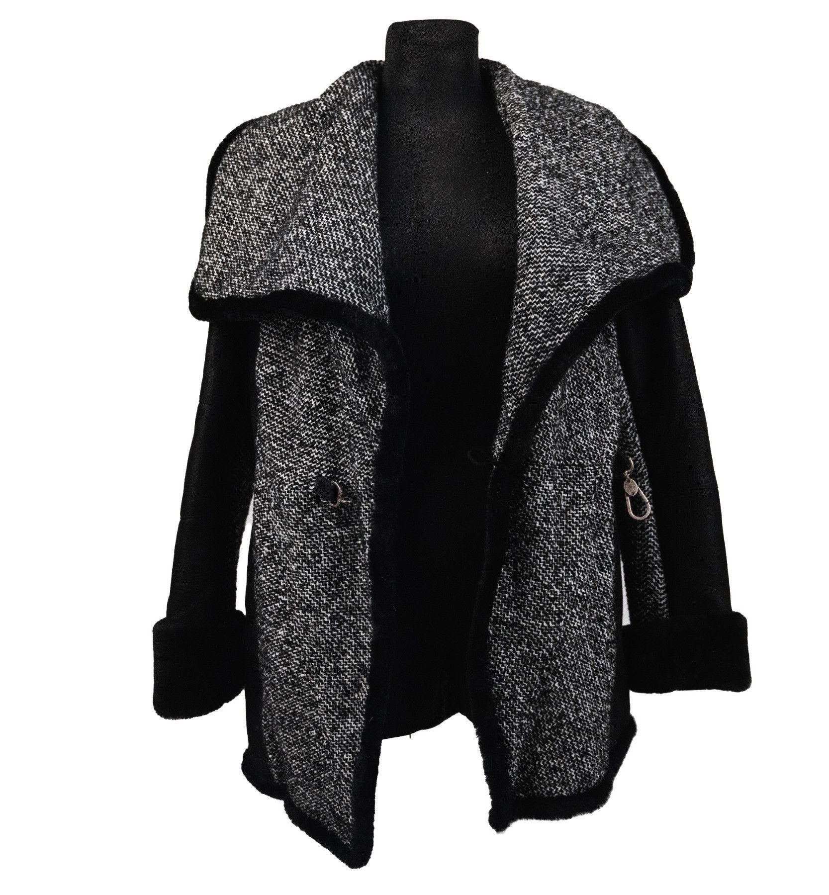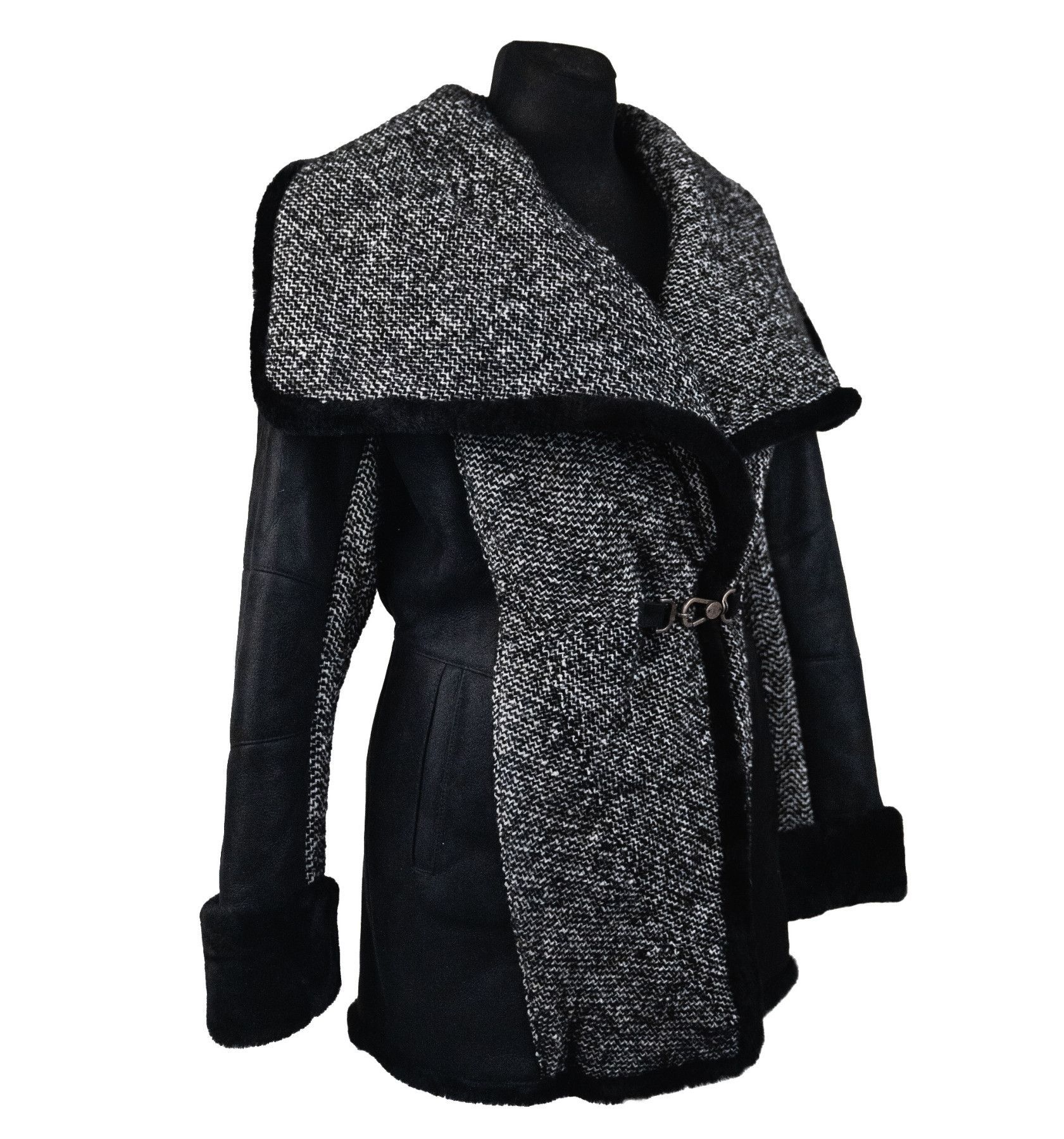 Damen Winterjacke Lederjacke Schaffell Felljacke Wolljacke Merino Jacke Schwarz