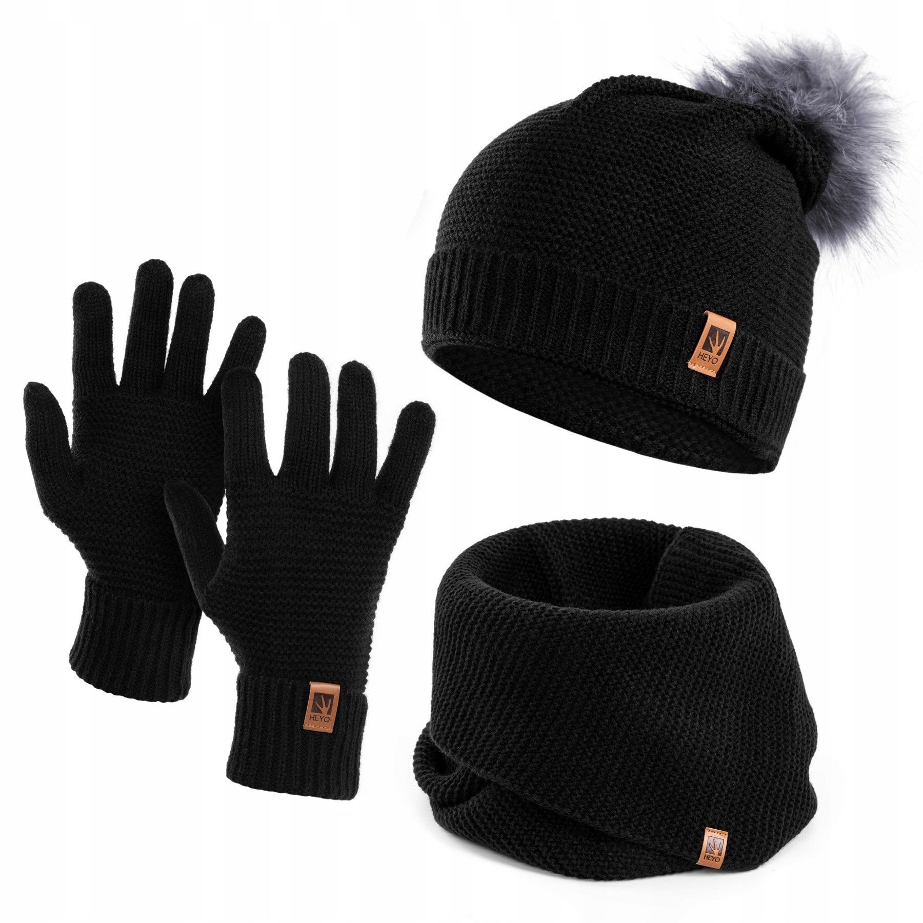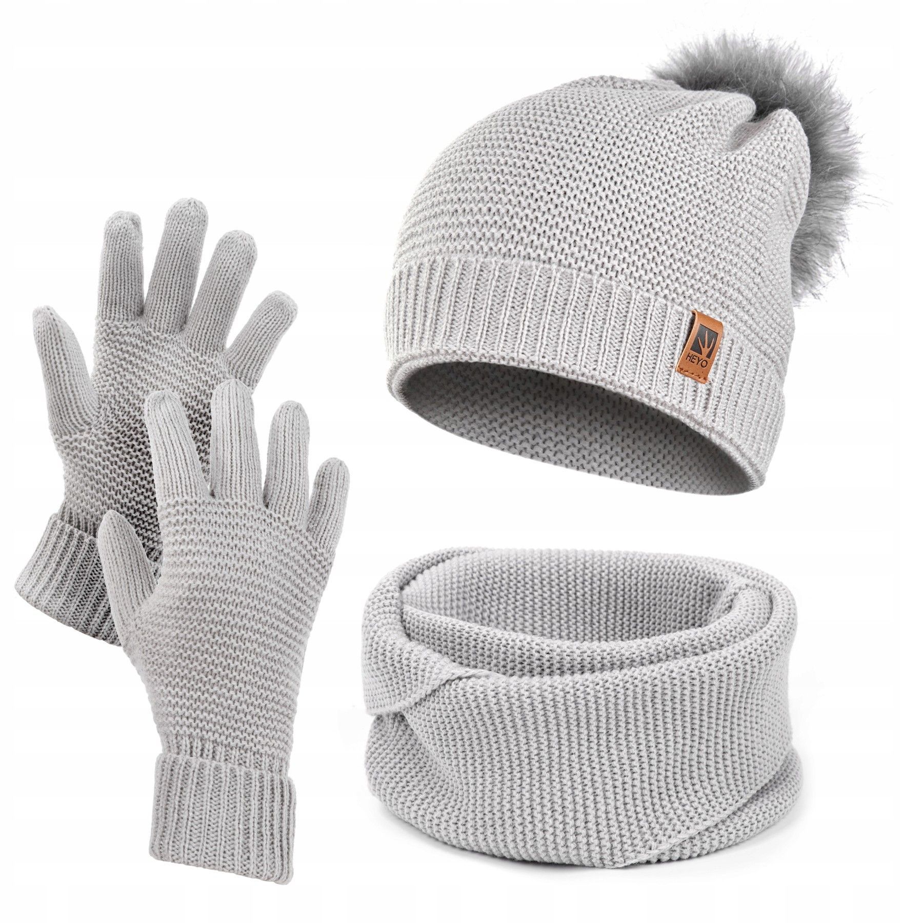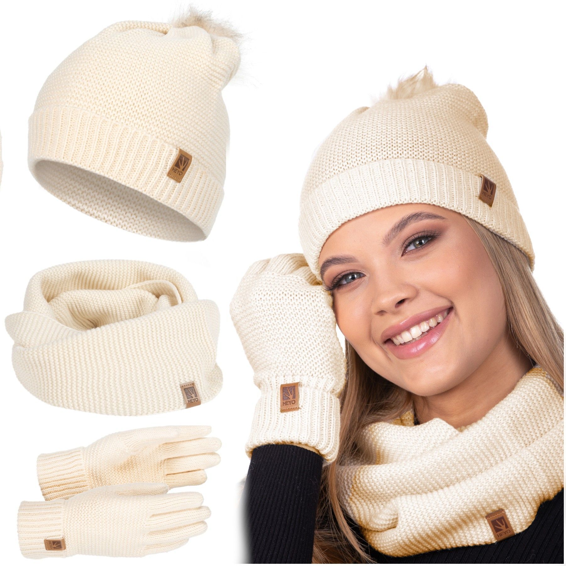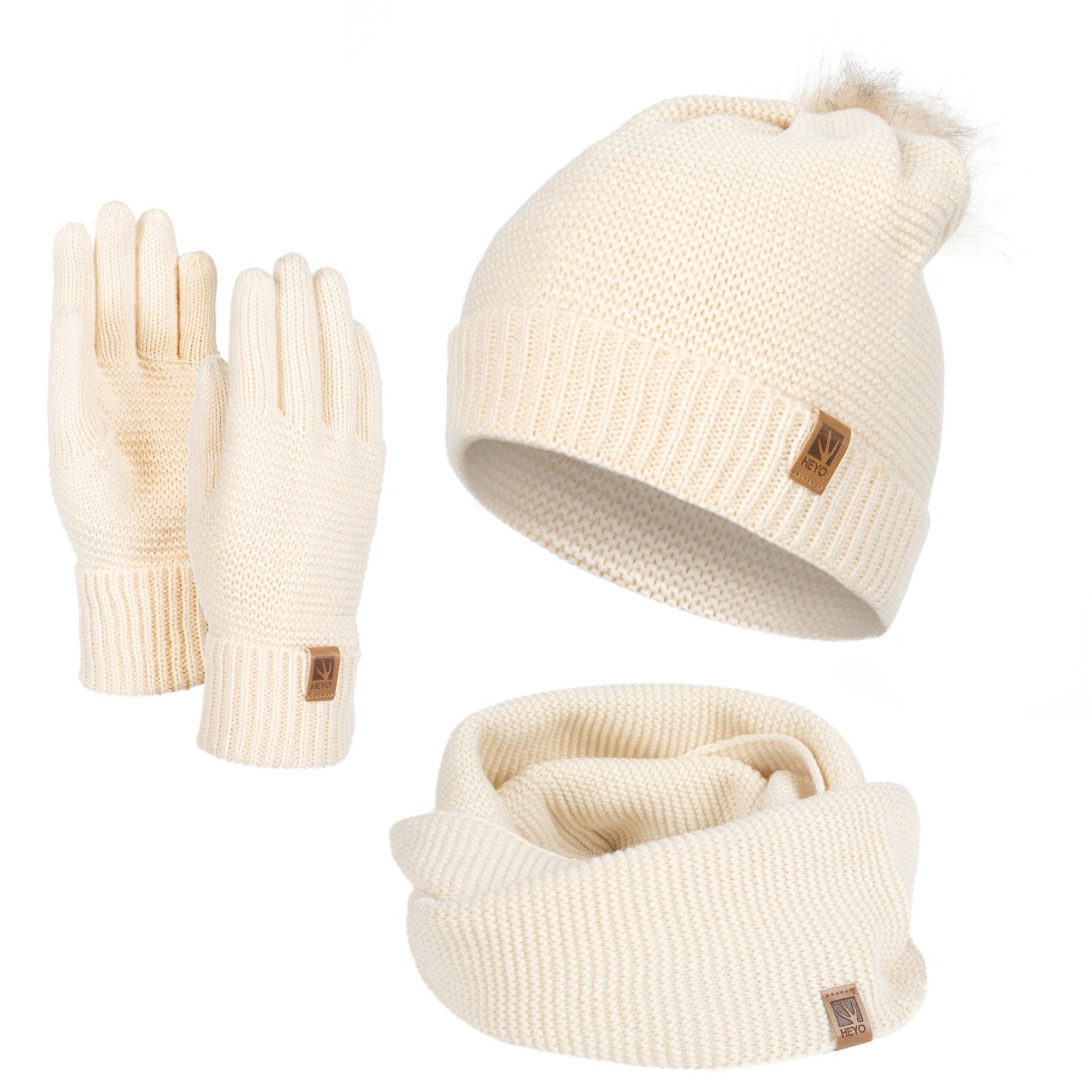 Damen Wintermütze Schlauchschal Handschuhe Set Winter Gestrickte Warme Mütze Schal
