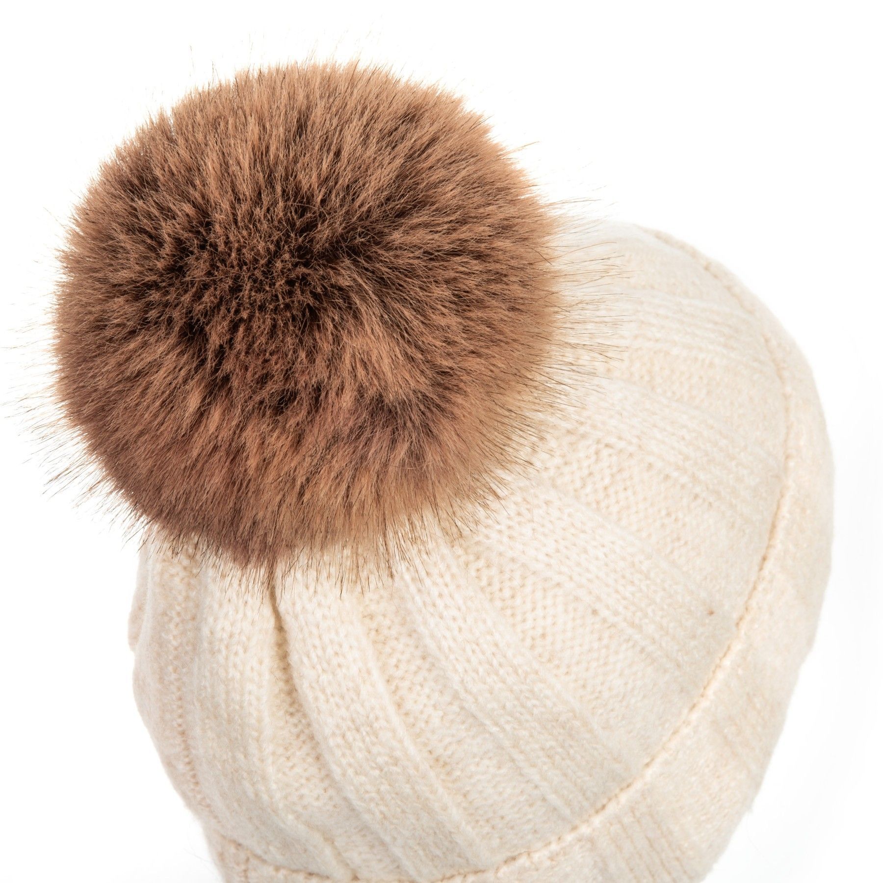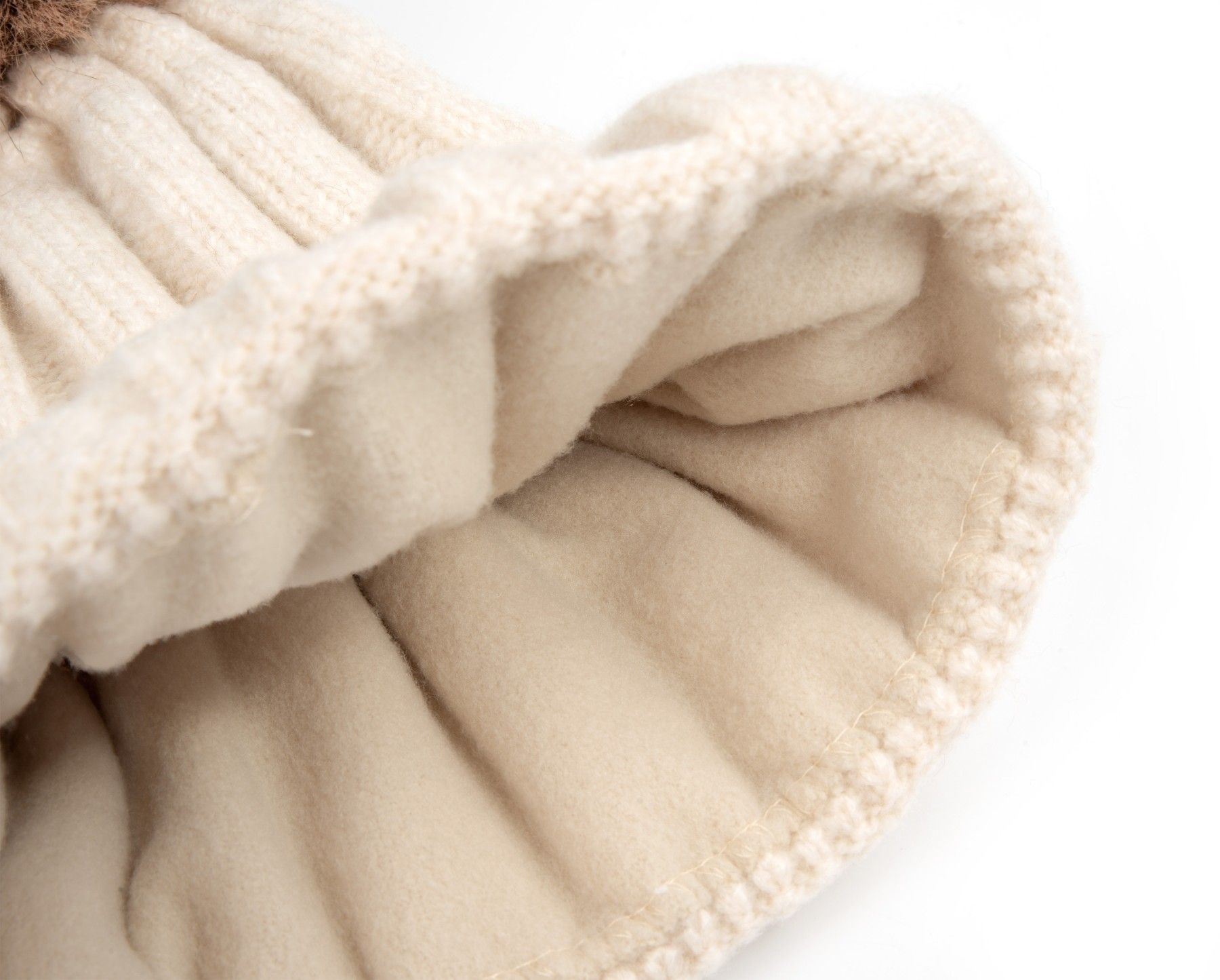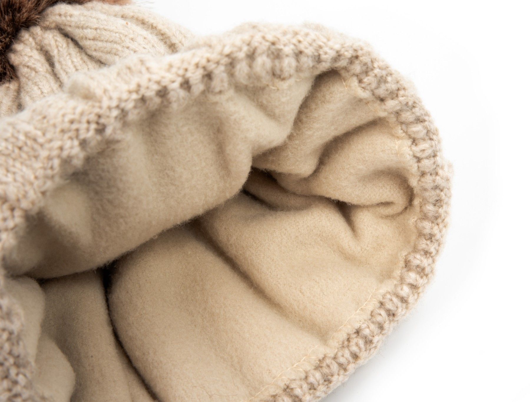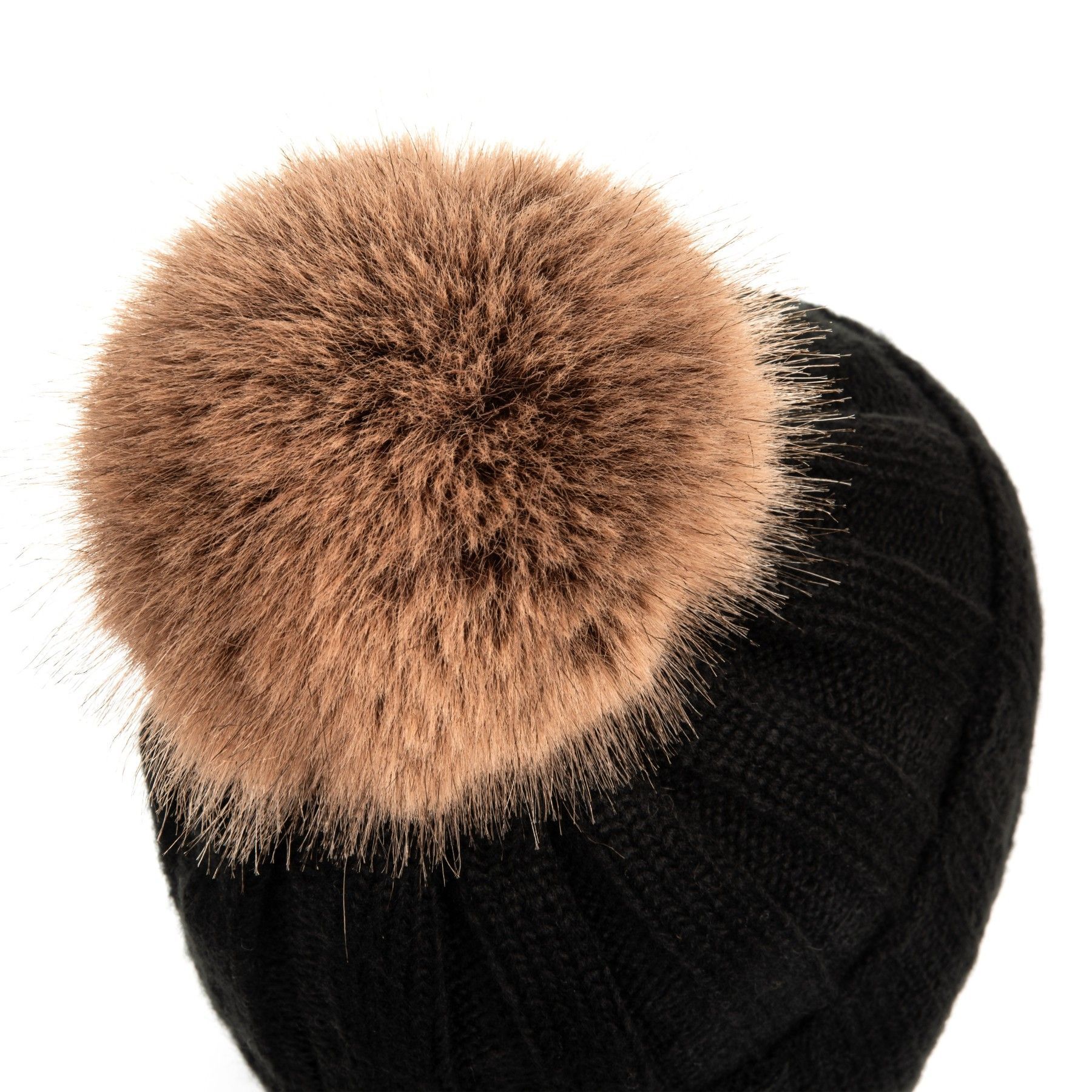 Damen Wintermütze Warm Mütze mit Fleece gefüttert Kunstfell Pompom Basic Beanie Winte