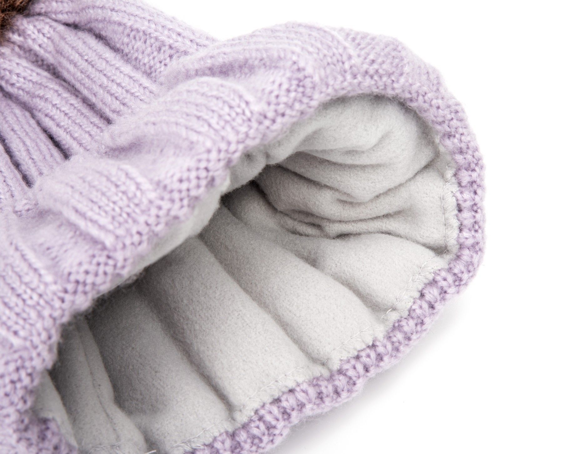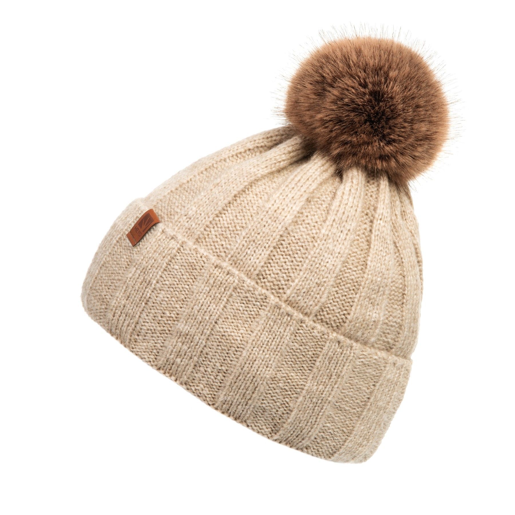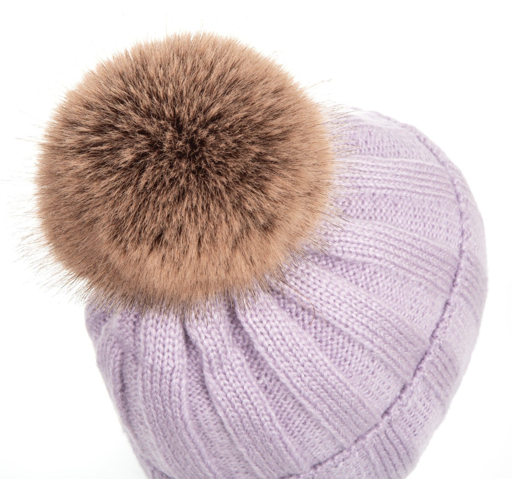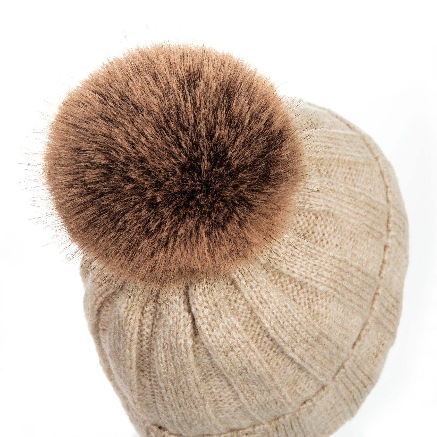 Damen Wintermütze Warm Mütze mit Fleece gefüttert Kunstfell Pompom Basic Beanie Winte