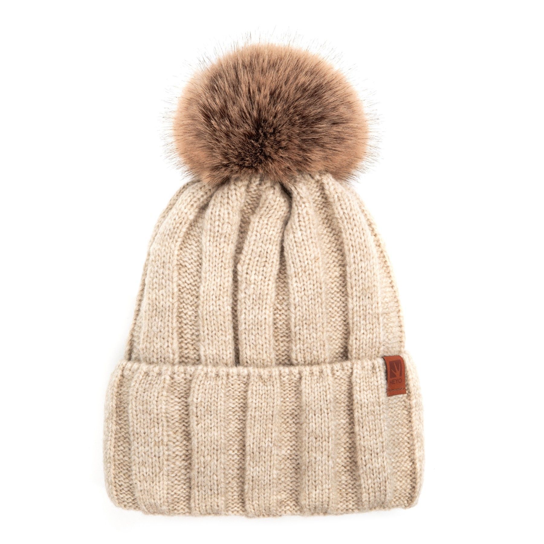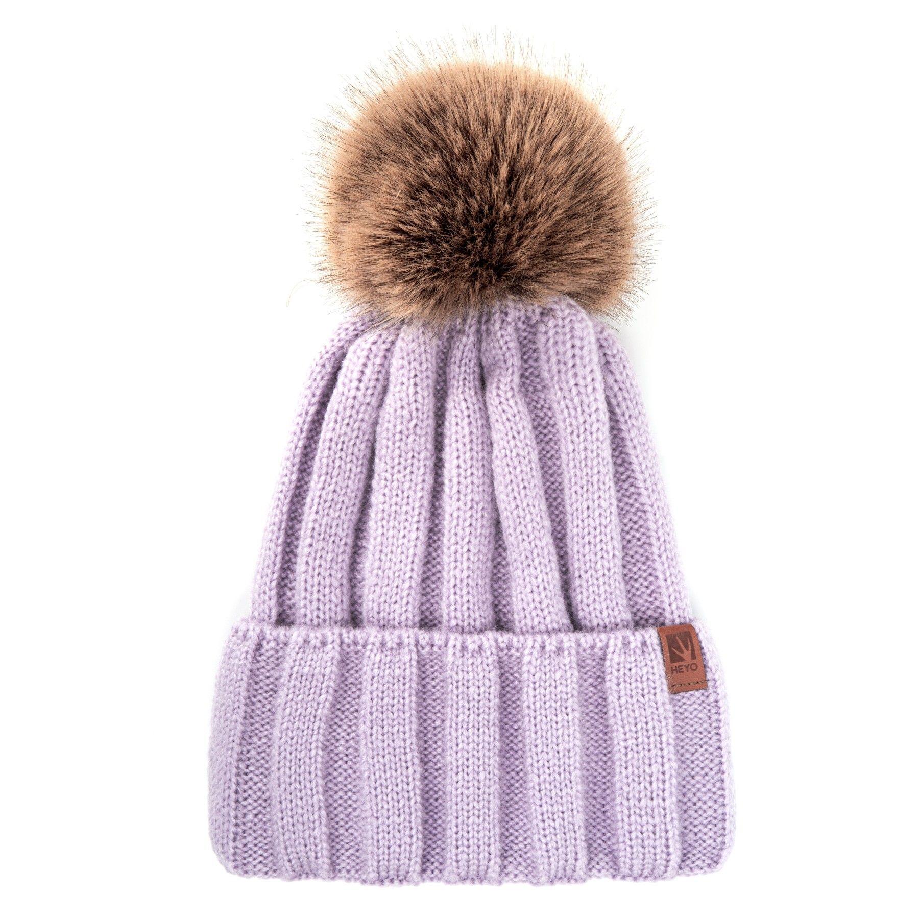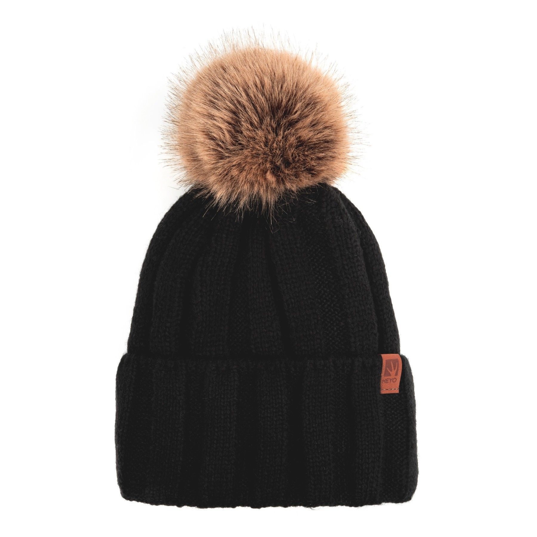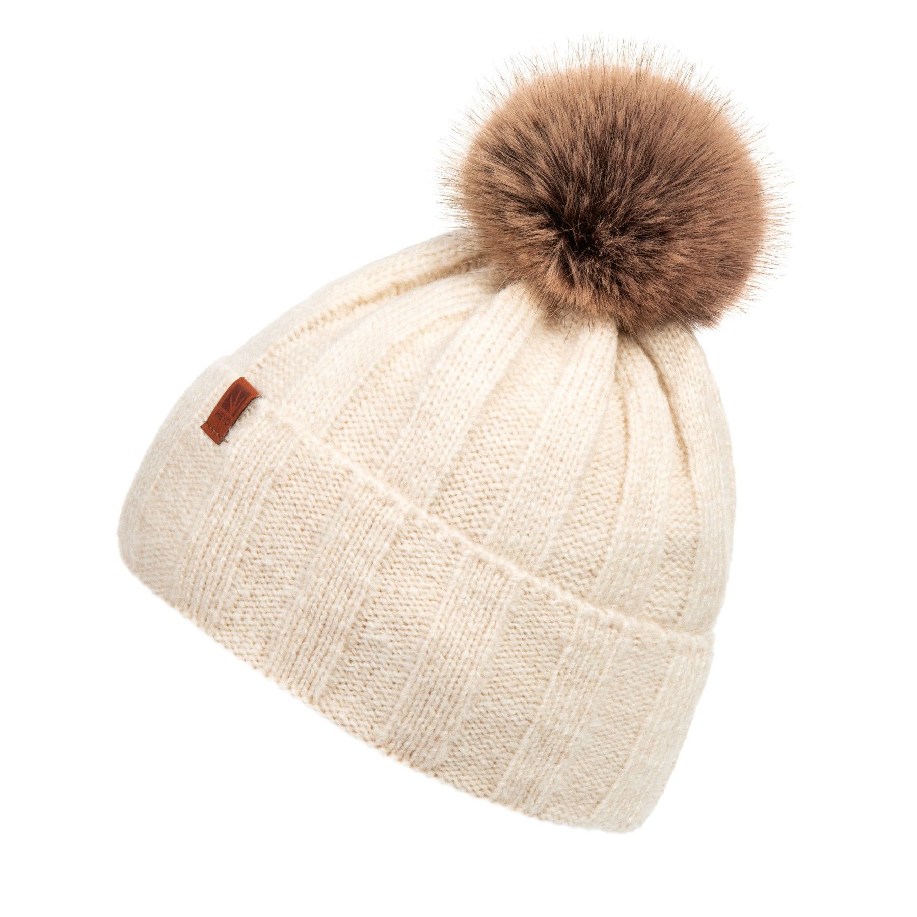 Damen Wintermütze Warm Mütze mit Fleece gefüttert Kunstfell Pompom Basic Beanie Winte