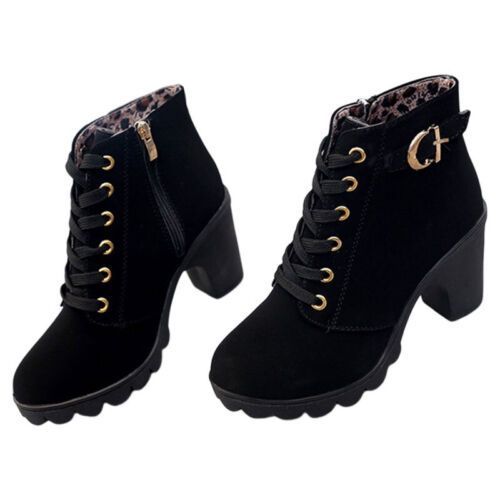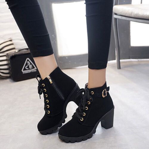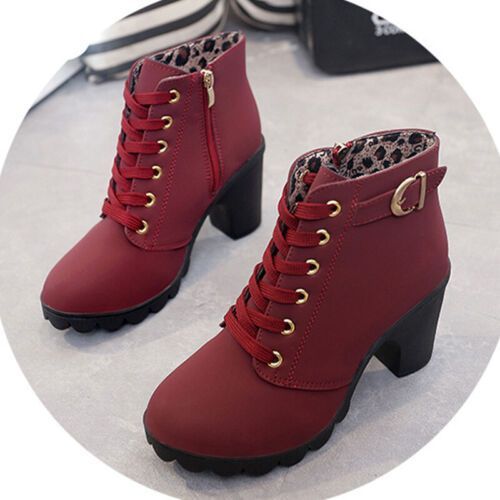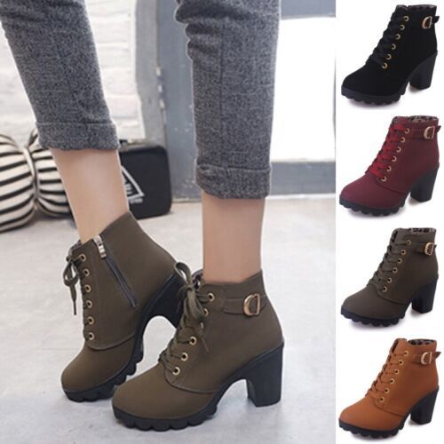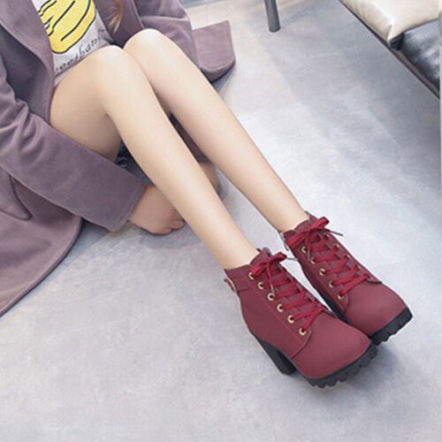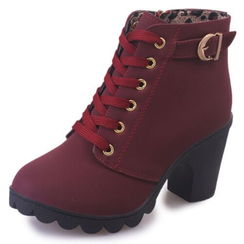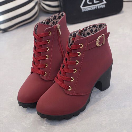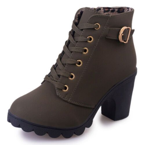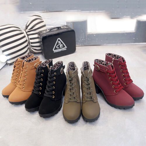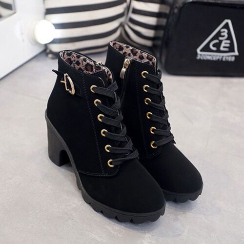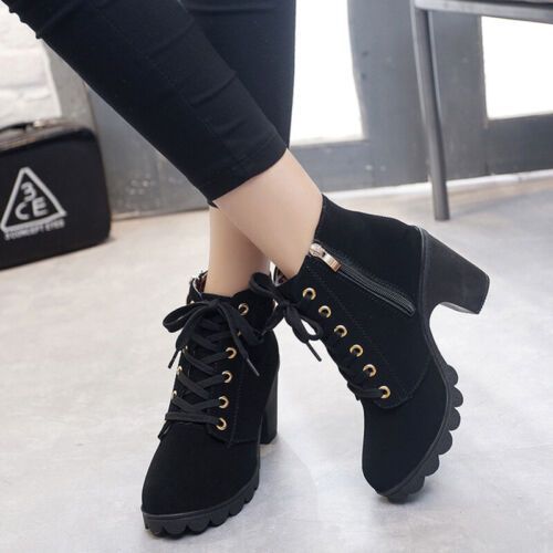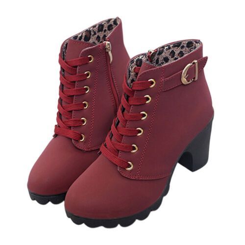 Damen Winterstiefel Schnuren Knochelstiefel Frauen Mode Arbeiten Lassig Schuhe