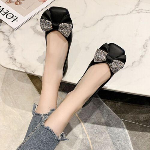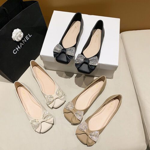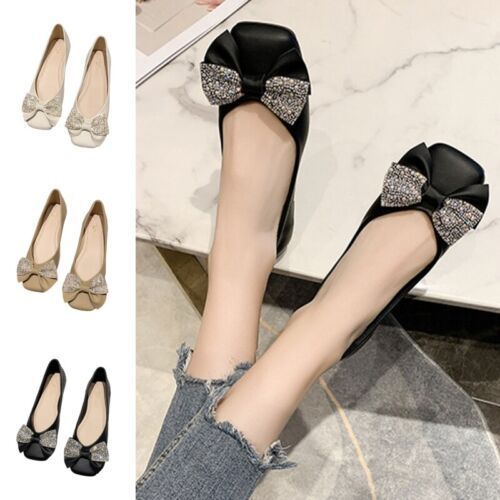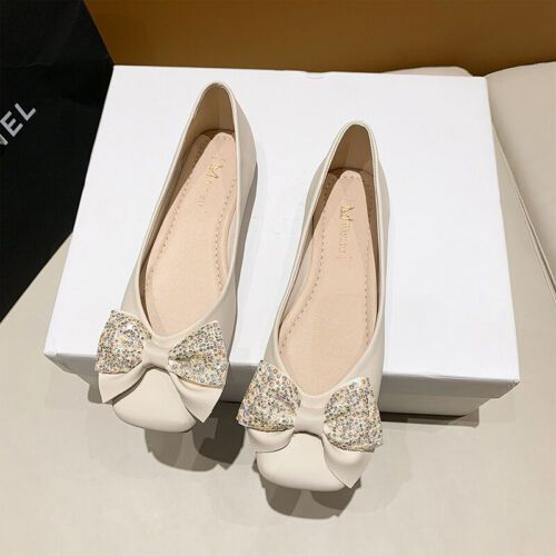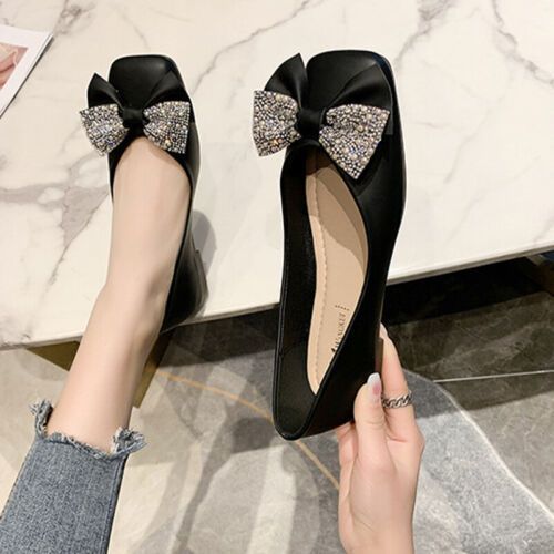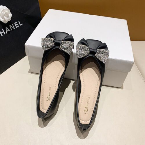 Damen Wohnungen Quadratzehe Flacher Schuh Frauen Kompfort Hochzeit Schlupfen