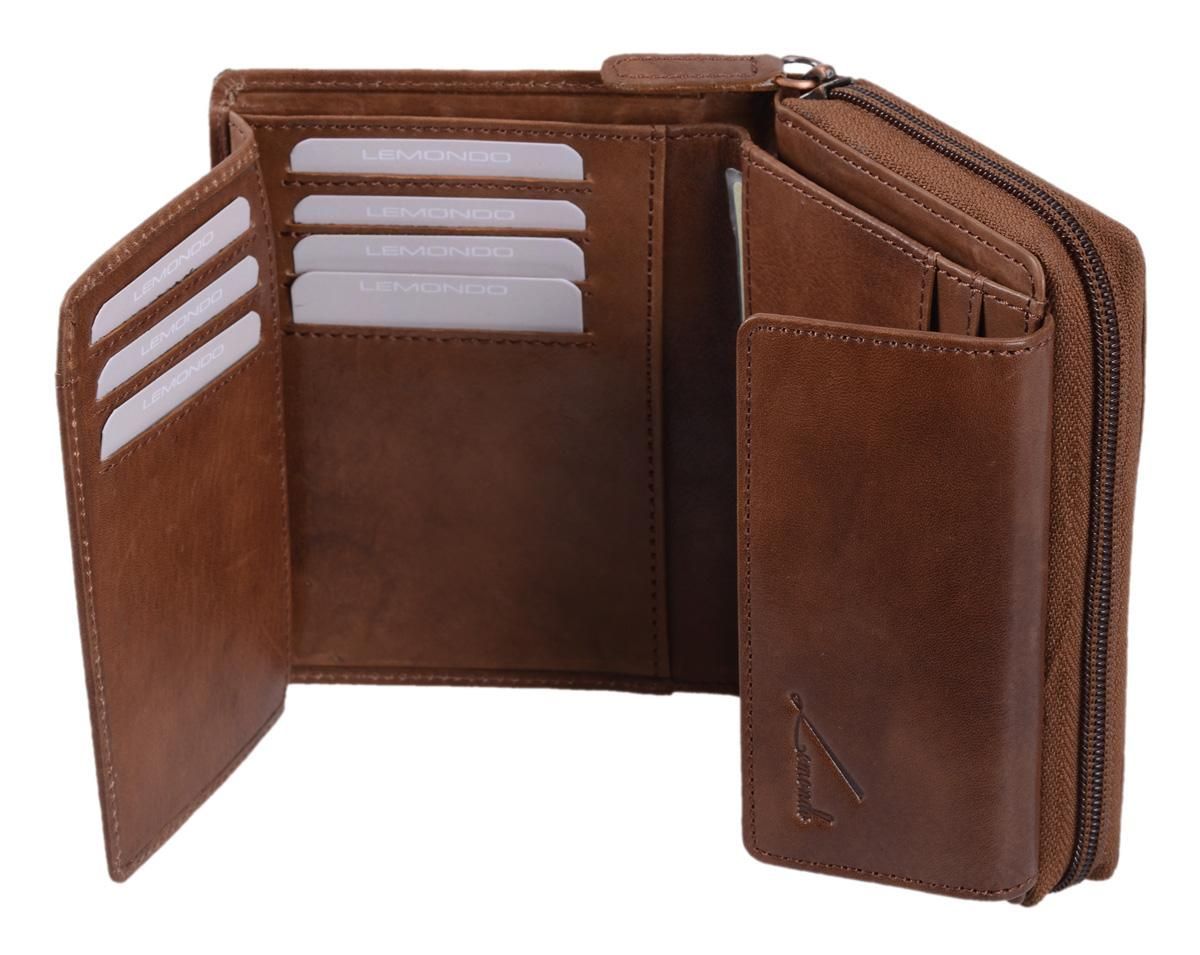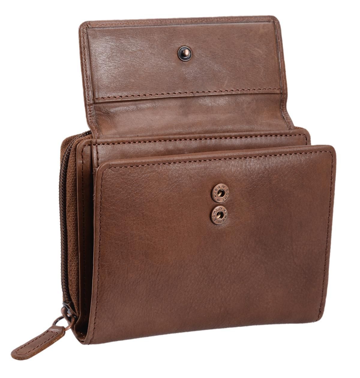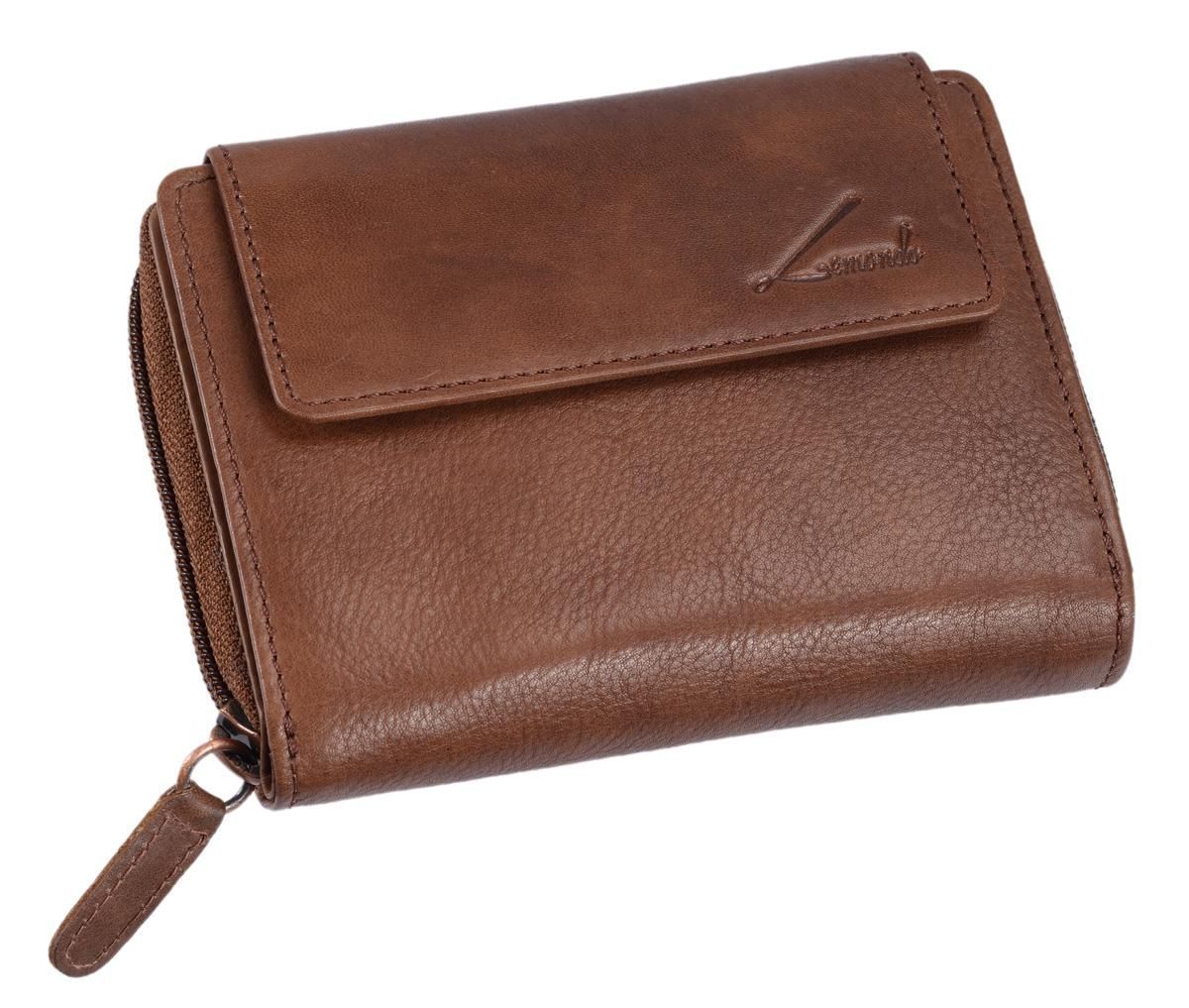 Damenbörse hellbraun Echtleder – kompakte Geldbörse mit Reißverschluss