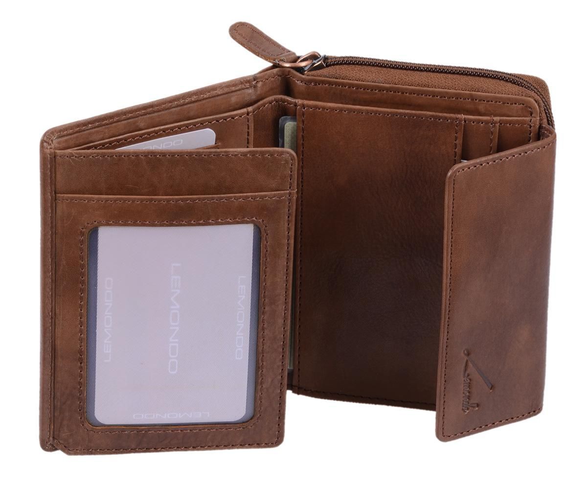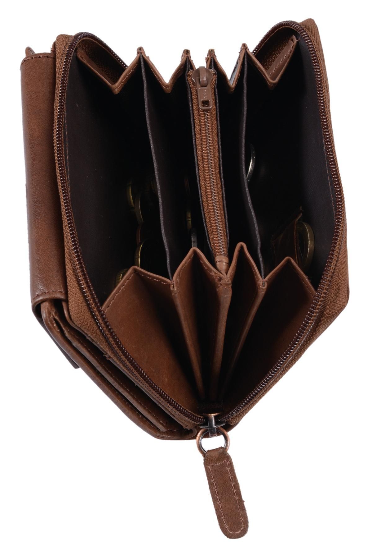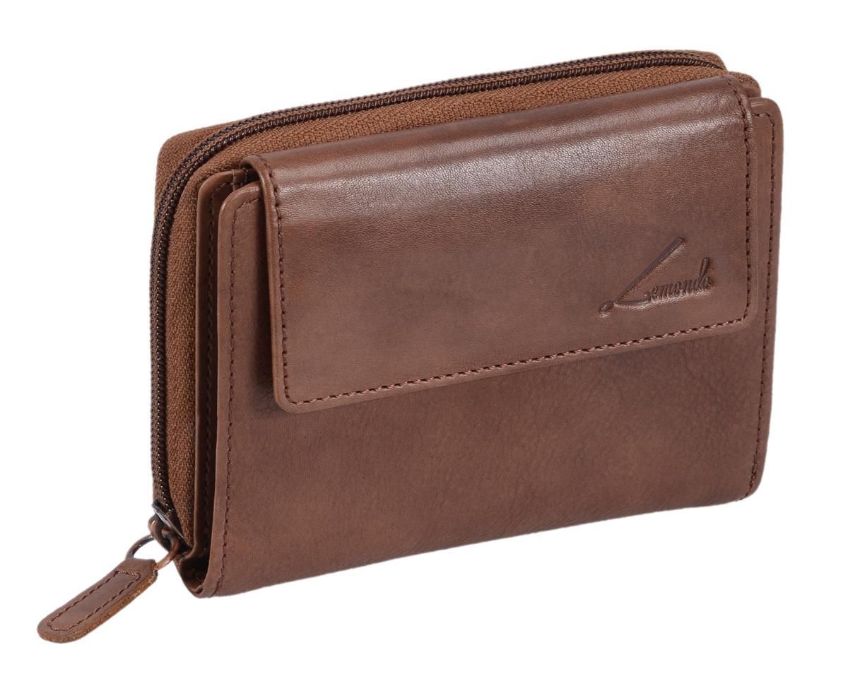 Damenbörse hellbraun Echtleder – kompakte Geldbörse mit Reißverschluss