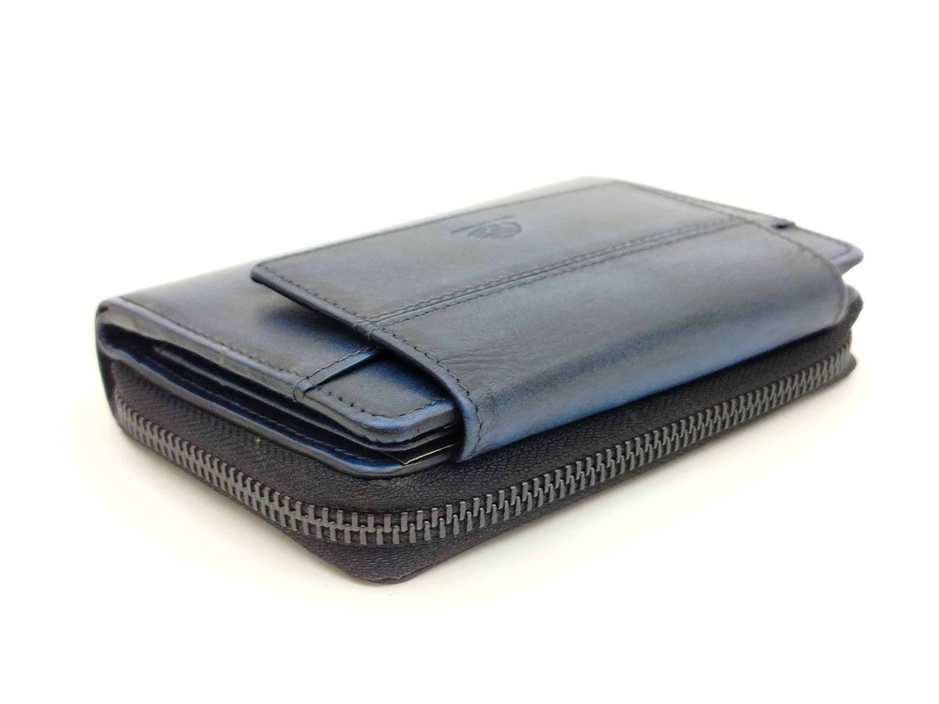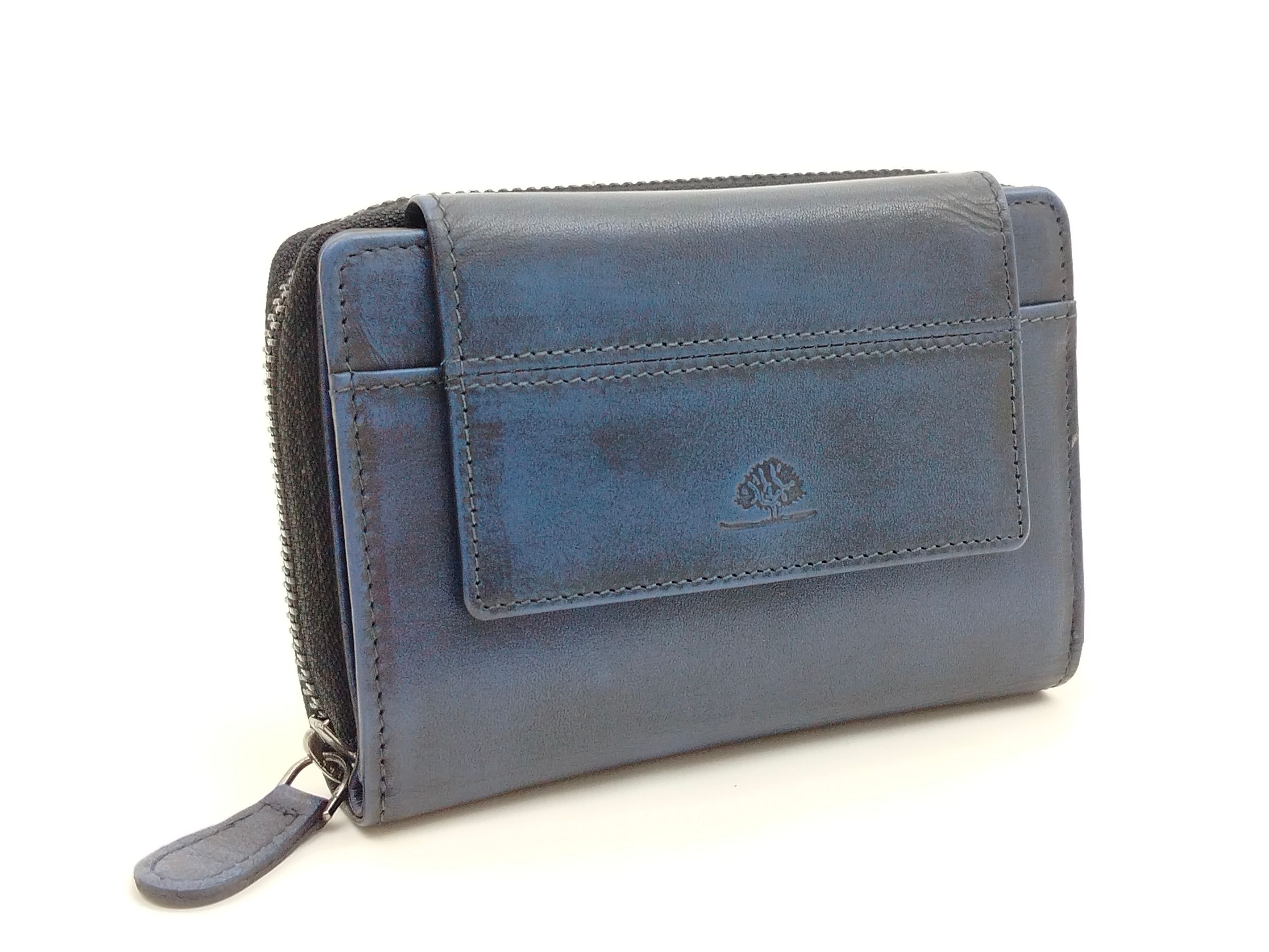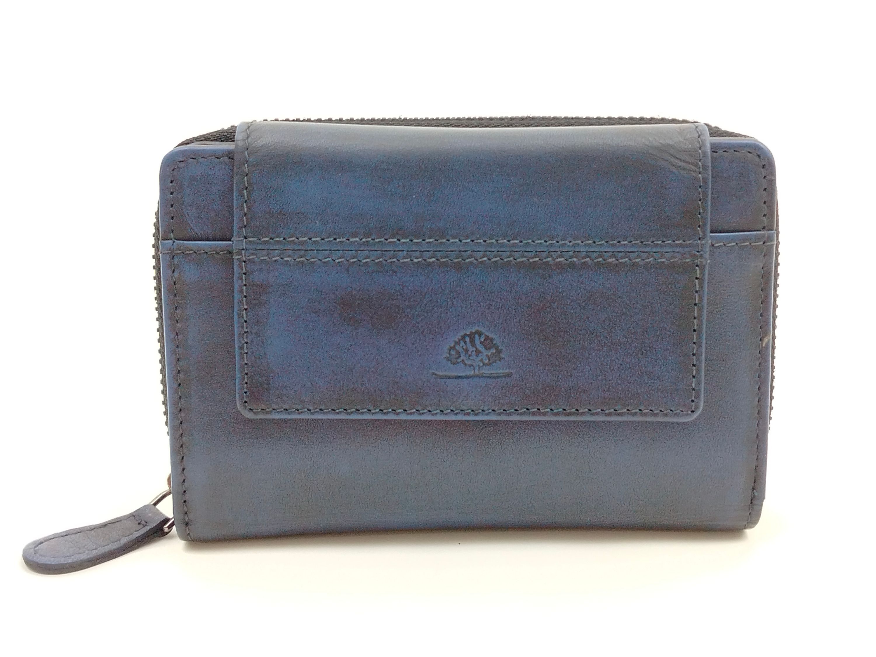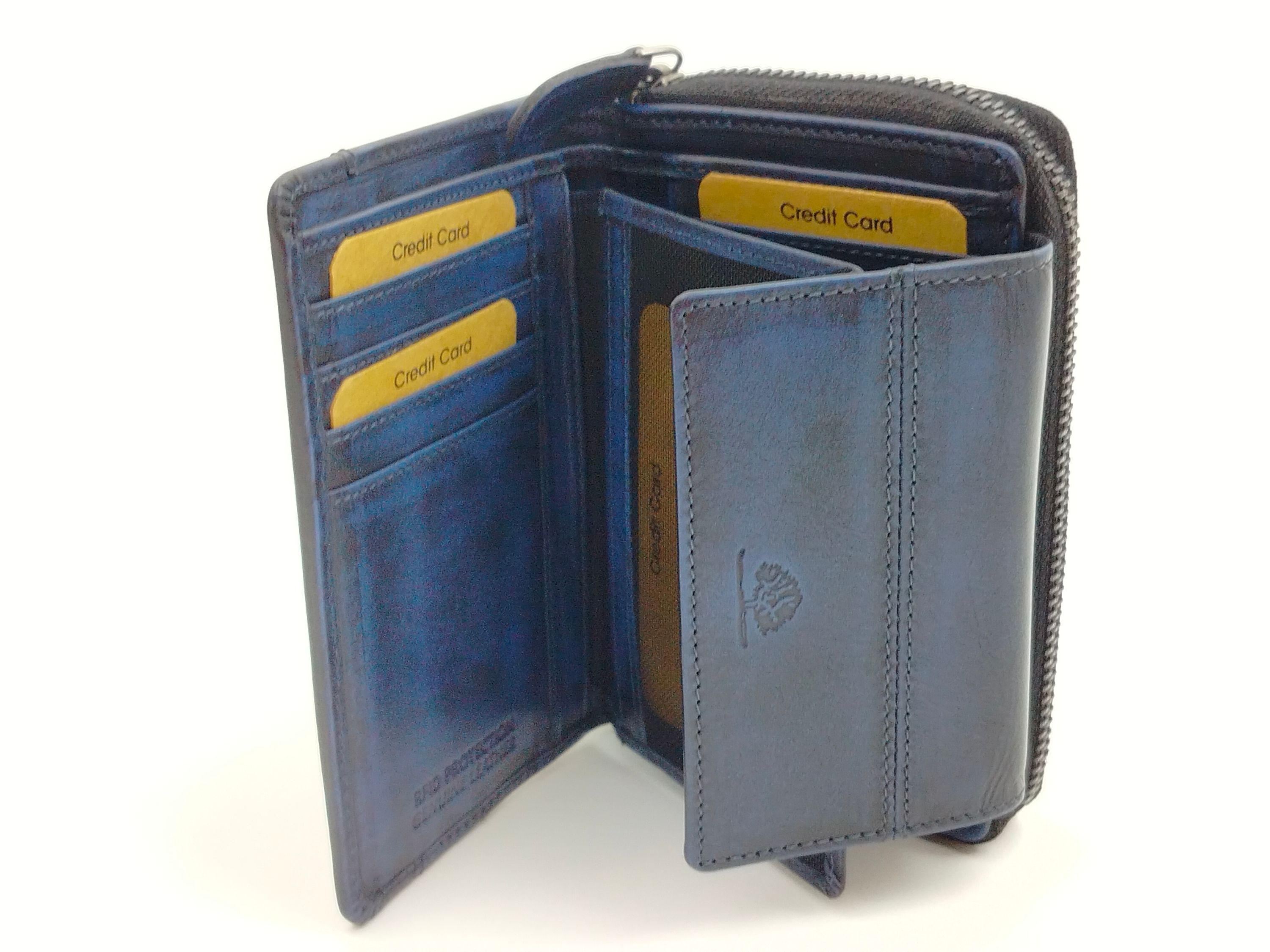 Greenburry Damenbörse Vintage Leder dunkelblau – RFID Portemonnaie im Used Look