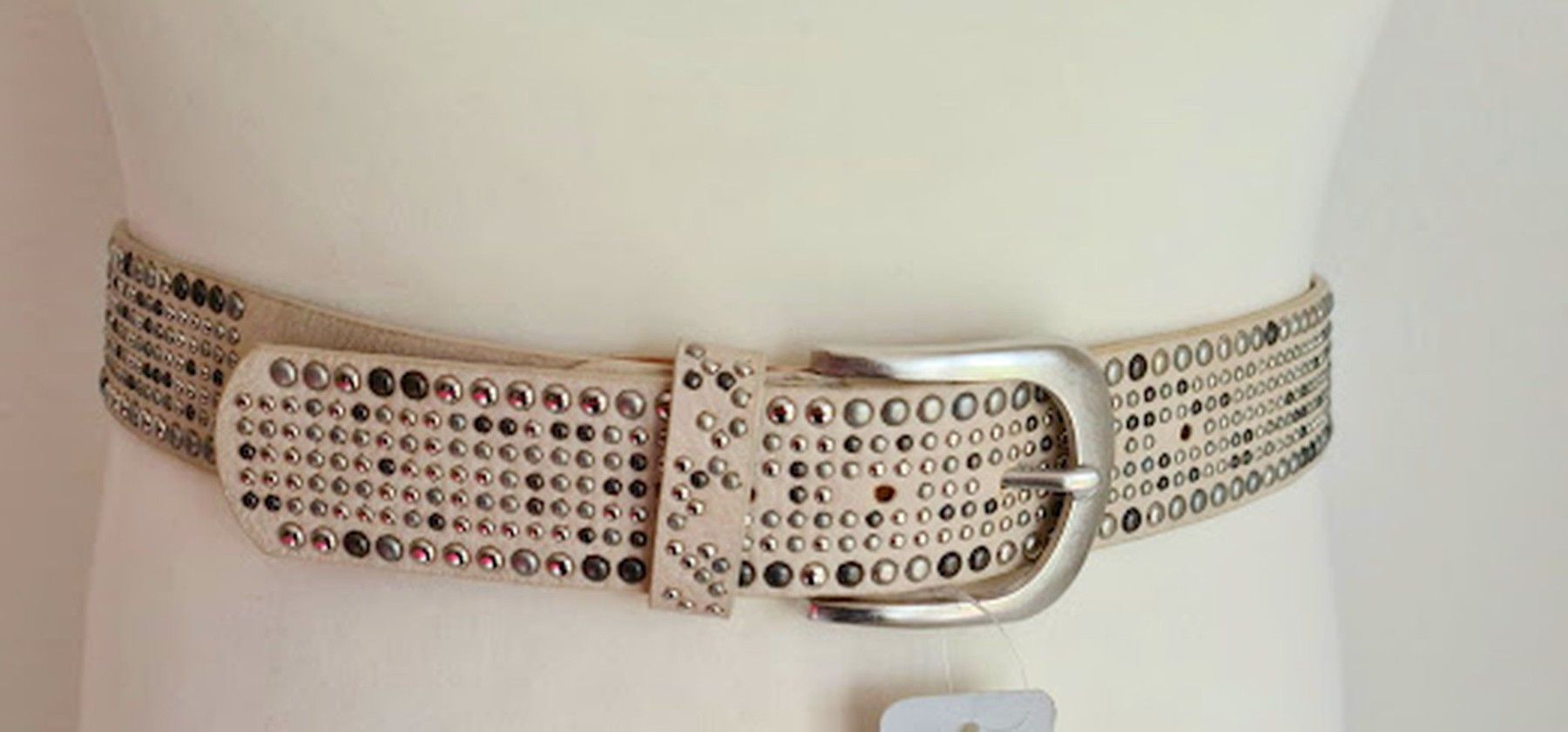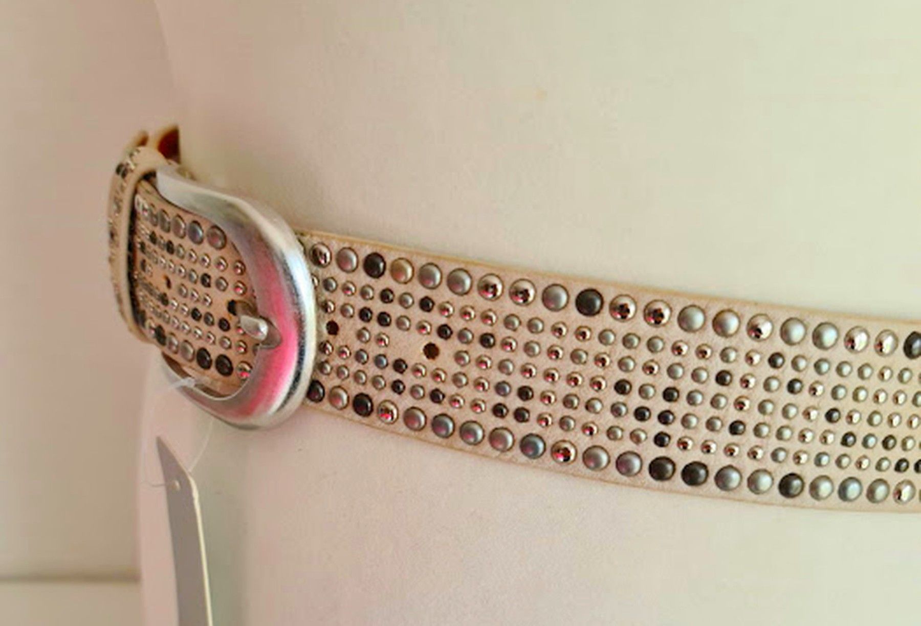 Damengürtel Leder/ Polyurethane Nieten Silber Schnalle Beige Gr. 85-100