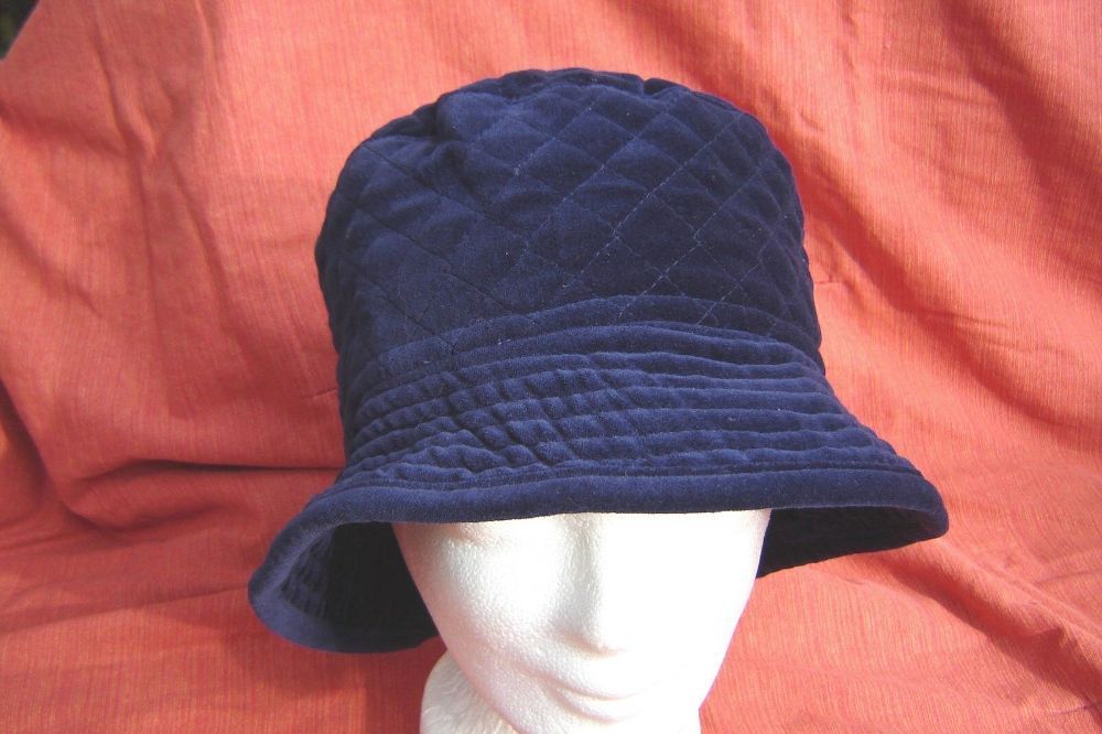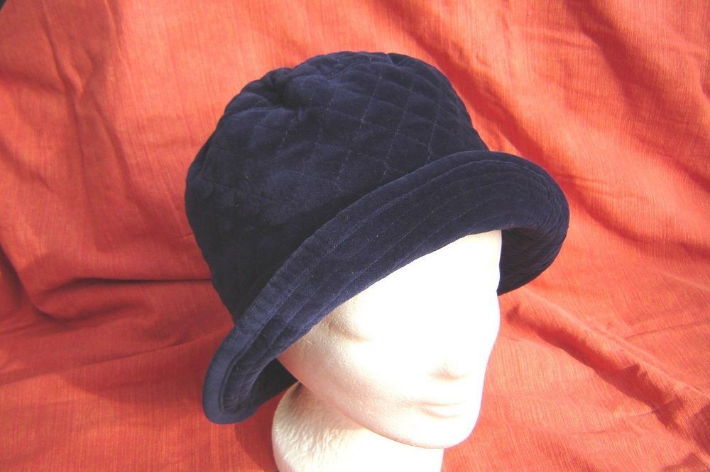 Damenhut gesteppter Samthut marine dunkelblau weicher Baumwollsamt Winterhut p