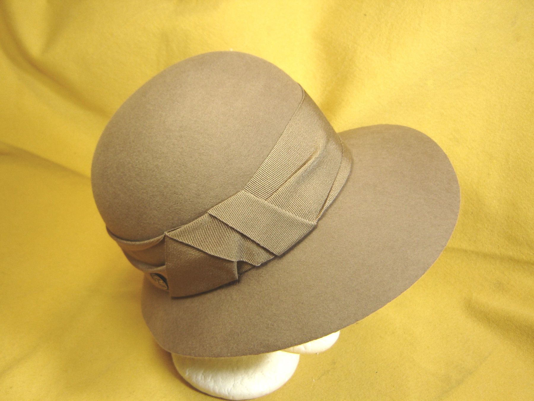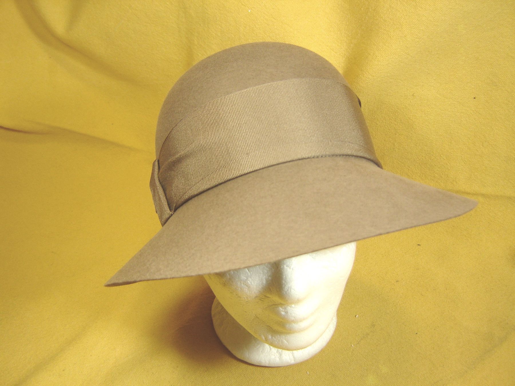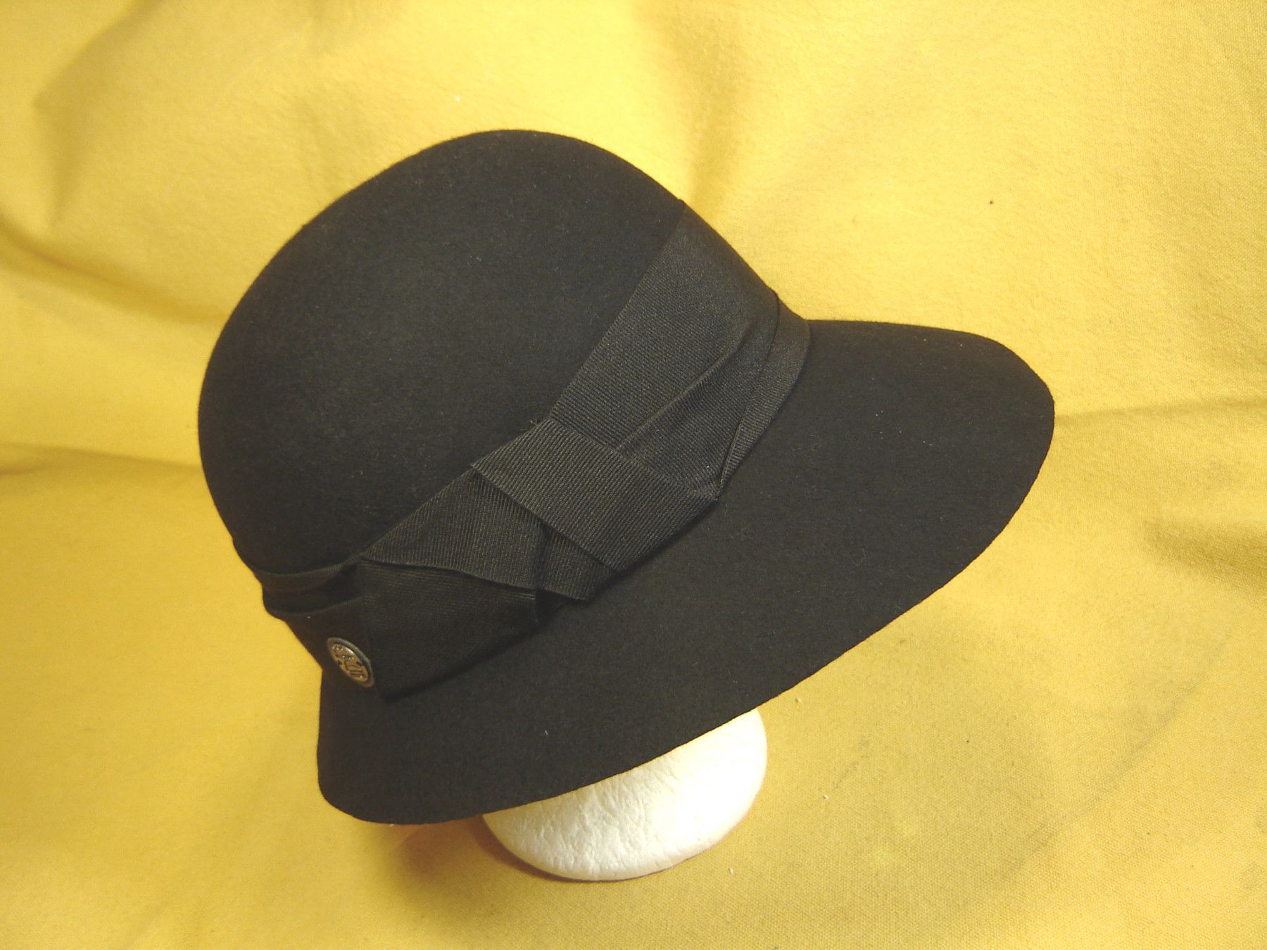 . topaktueller Damenhut zum Reinschlüpfen aus 100% Wollfilz sehr strapazierfähig Damenhut Glocke mit vorne weitem Rand und hinten schmal sehr schmeichelhaft der Hut ist aus knautschigem Wollfilz , der einiges mitmacht dekoriert mit einem Ripsband beste Qualität wahlweise in Farbe schwarz , marine od