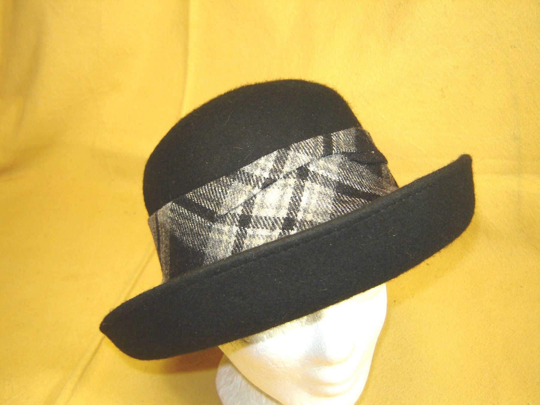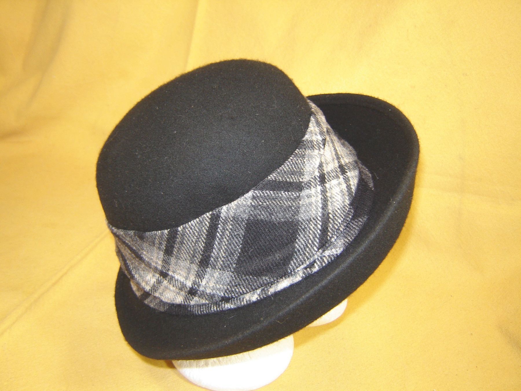 Damenhut schwarz aufgeschlagen mit Karoband Regenhut Kutsche DH216