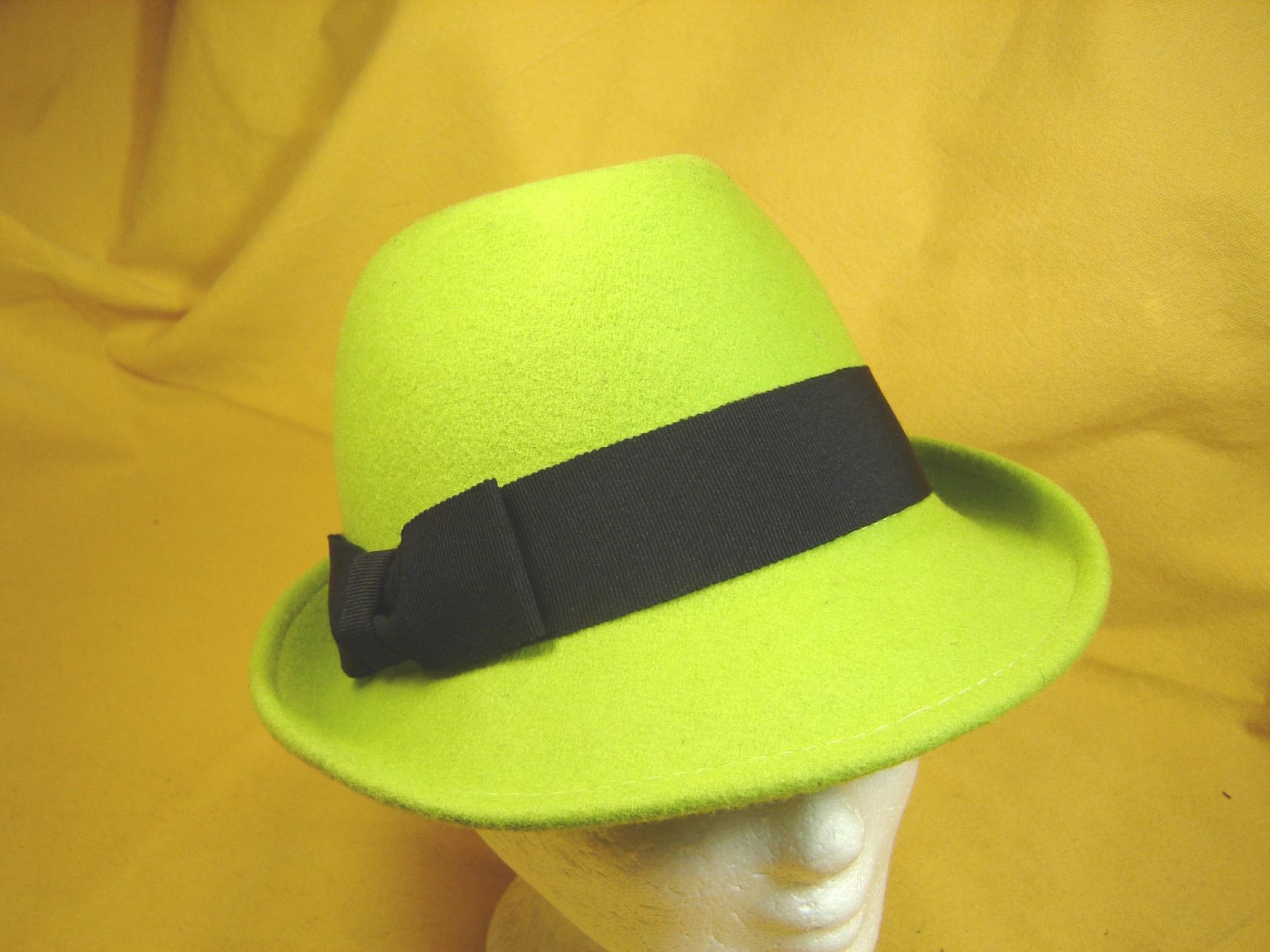 . sportlich chicer Damenhut aus 100% Wollfilz sehr strapazierfähig klassische Damenhut Form Trilby als Garnitur ein schwarzes Ripsband mit Schleife in fröhliche bunten Farben in Farbe fuxia , petrol oder apfelgrün Größe wählbar 56 , 57 oder 58 cm Kopfumfang Bitte nach Kauf entweder in der Kaufabwick
