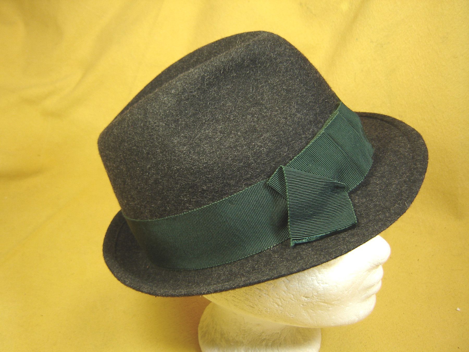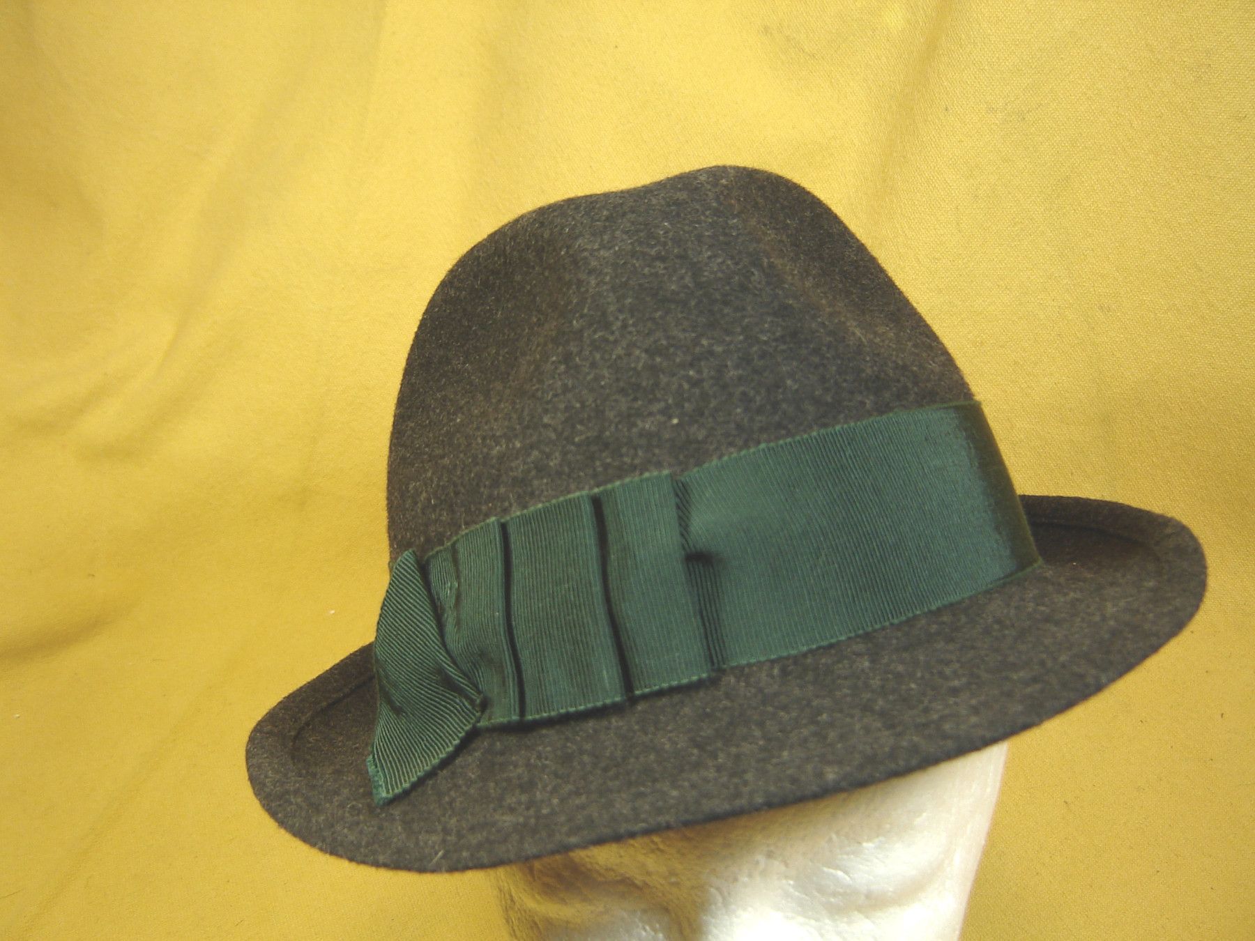. frecher kleiner Damenhut Trachtenhut Dirndlhut in schmaler flacher Form in Farbe dunkelgrau 100% Wollfilz Loden wetterfest mit Ripsband grün Größe wählbar 55 oder 56 cm Kopfumfang Bitte nach Kauf entweder in der Kaufabwicklung oder in einer Extra Nachricht gewünschte Größe mitteilen . Bitte sehen