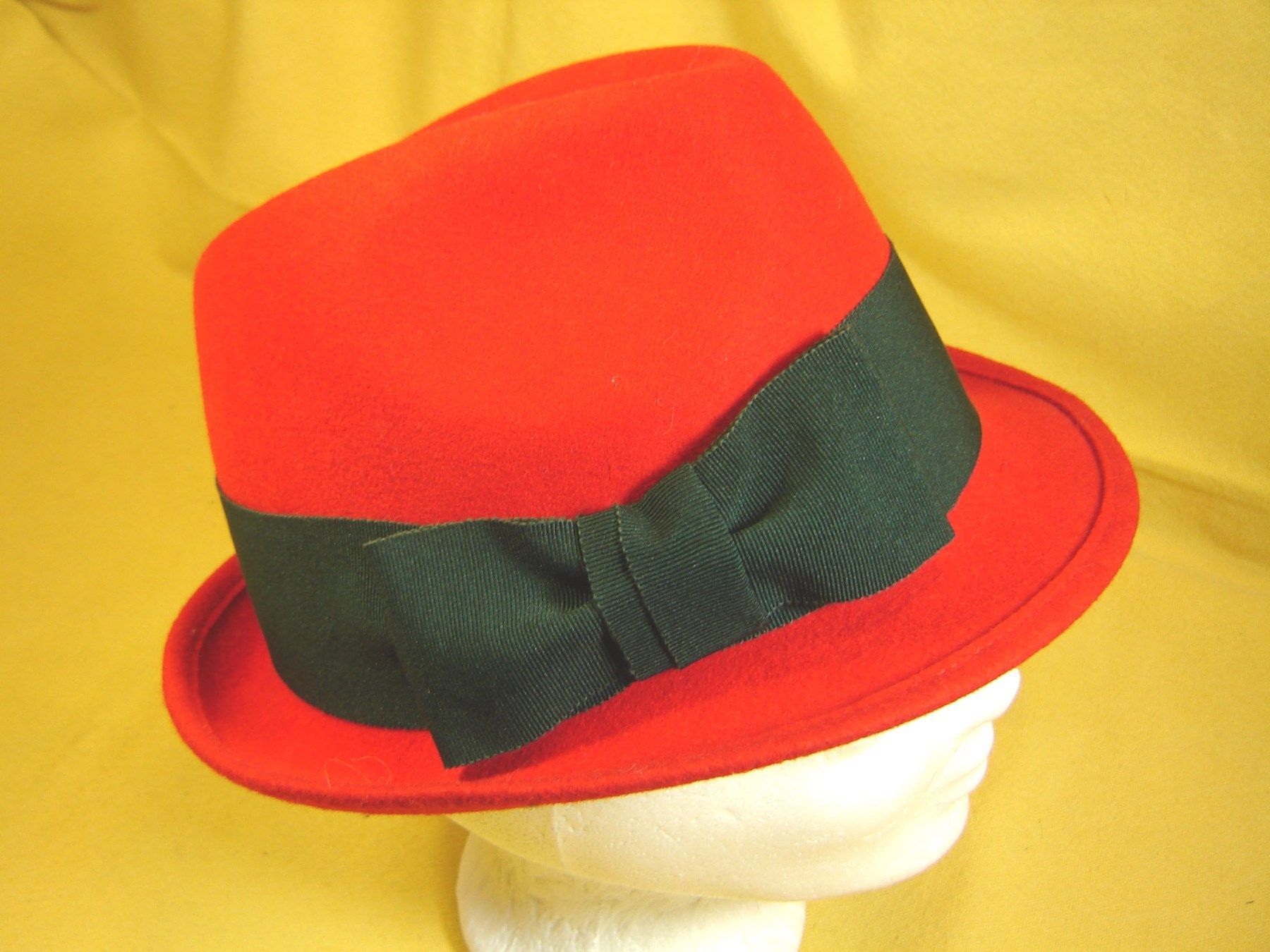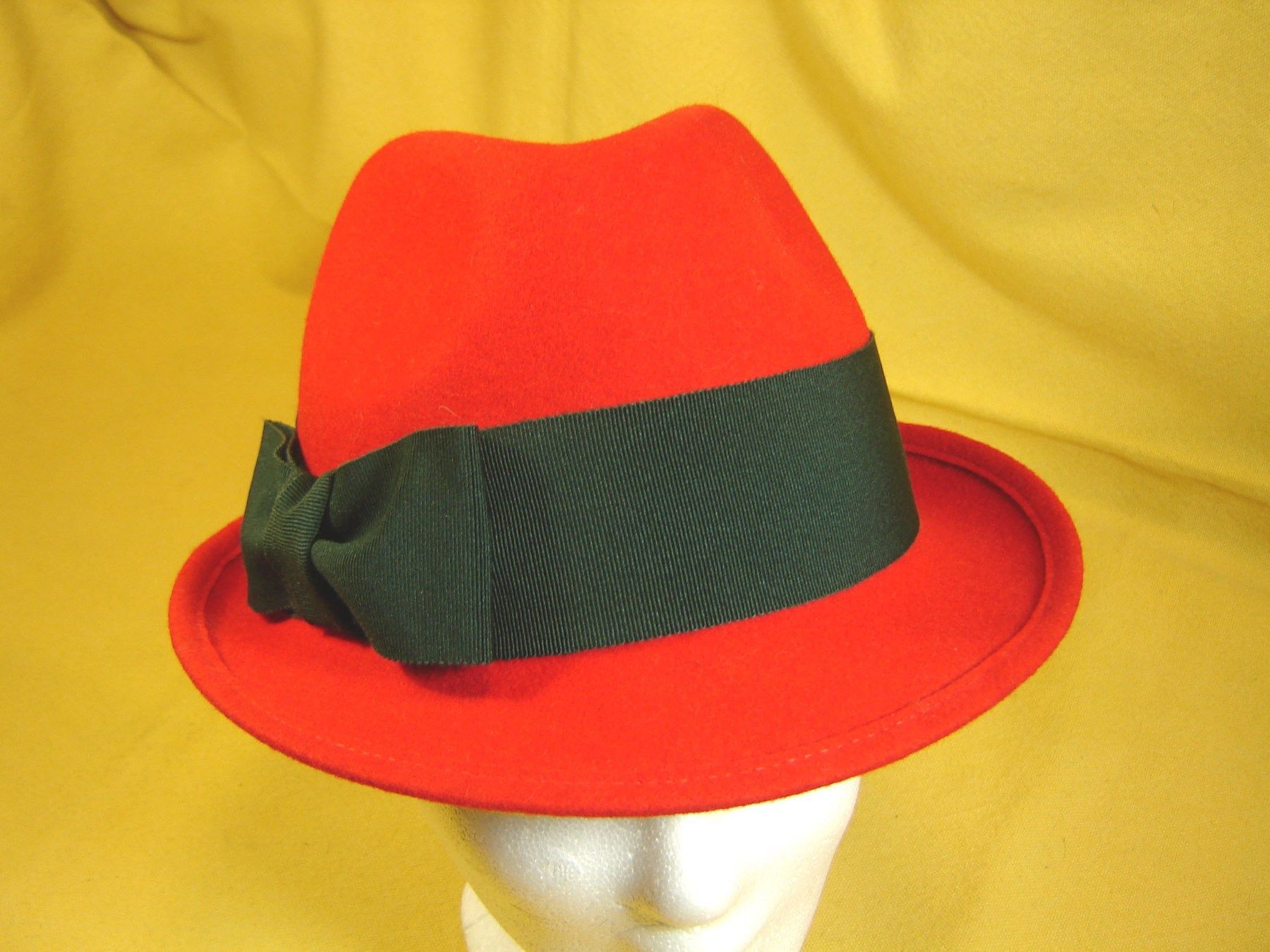 Damenhut Trachtenhut Dirndlhut rot mit Band tannengrün