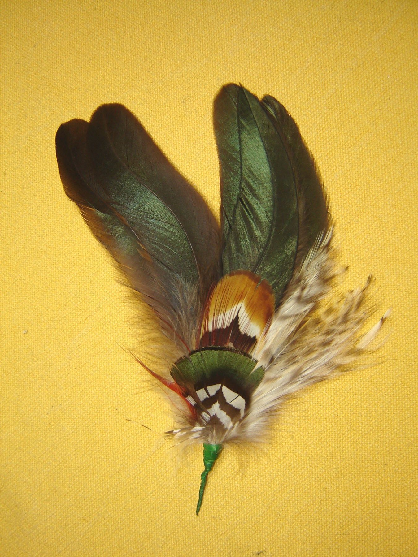 . schöne Feder für den Trachtenhut Damenhut Herrenhut schmückt jeden Trachtenhut grün schillernde Hahnenfedern mit buntem Abschluß Gesamt Länge insgesamt ca 15 cm Natürlich werden keine Federn oder Haare von Tieren verwendet , die unter das Washingtoner Artenschutzabkommen fallen . Bitte Sehen Sie s