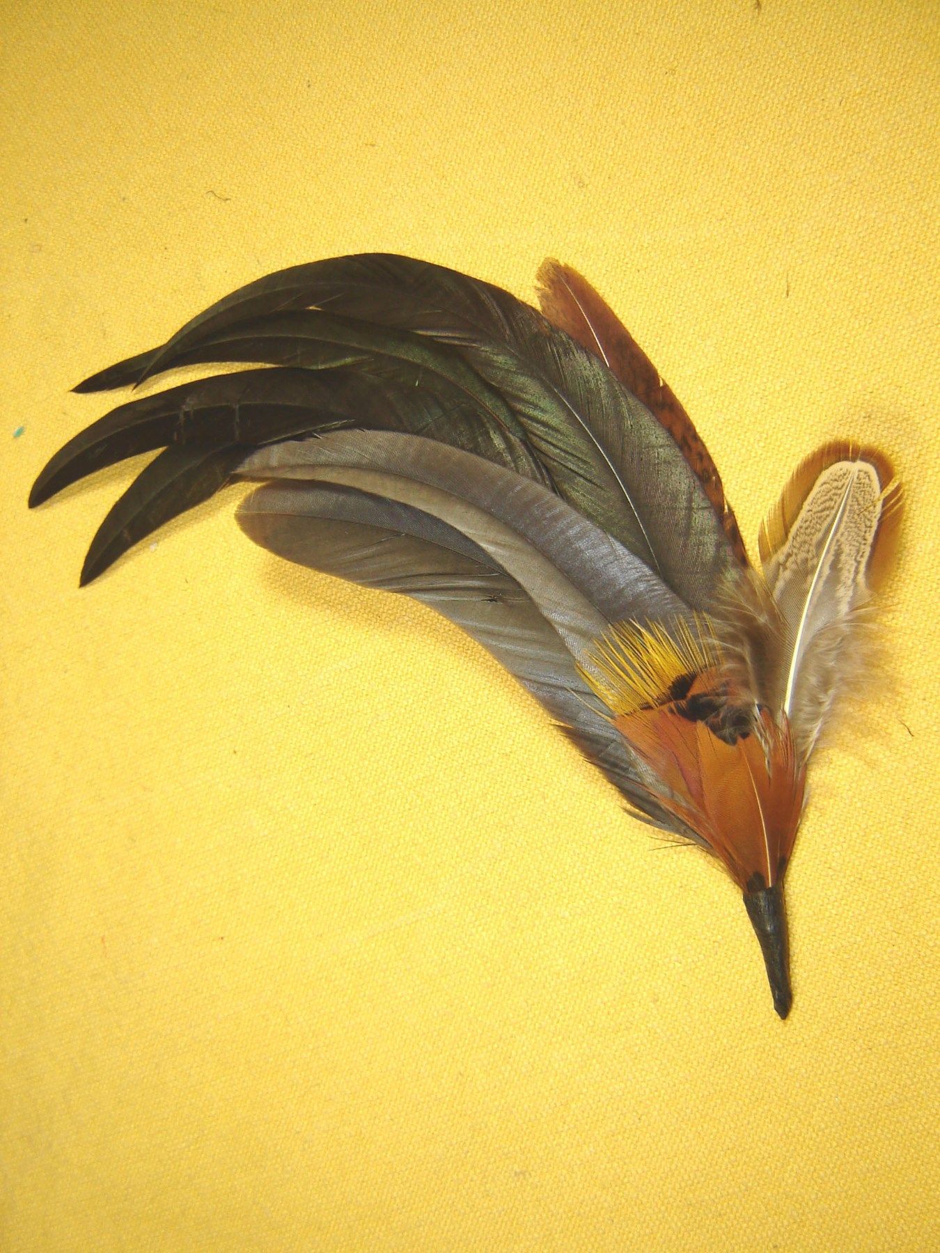 . schöne Feder für den Trachtenhut Damenhut Herrenhut schmückt jeden Trachtenhut grüne Hahnenfedern mit braunem Fasan Abschluß Gesamt Länge insgesamt ca 22 cm Natürlich werden keine Federn oder Haare von Tieren verwendet , die unter das Washingtoner Artenschutzabkommen fallen . Bitte Sehen Sie sich