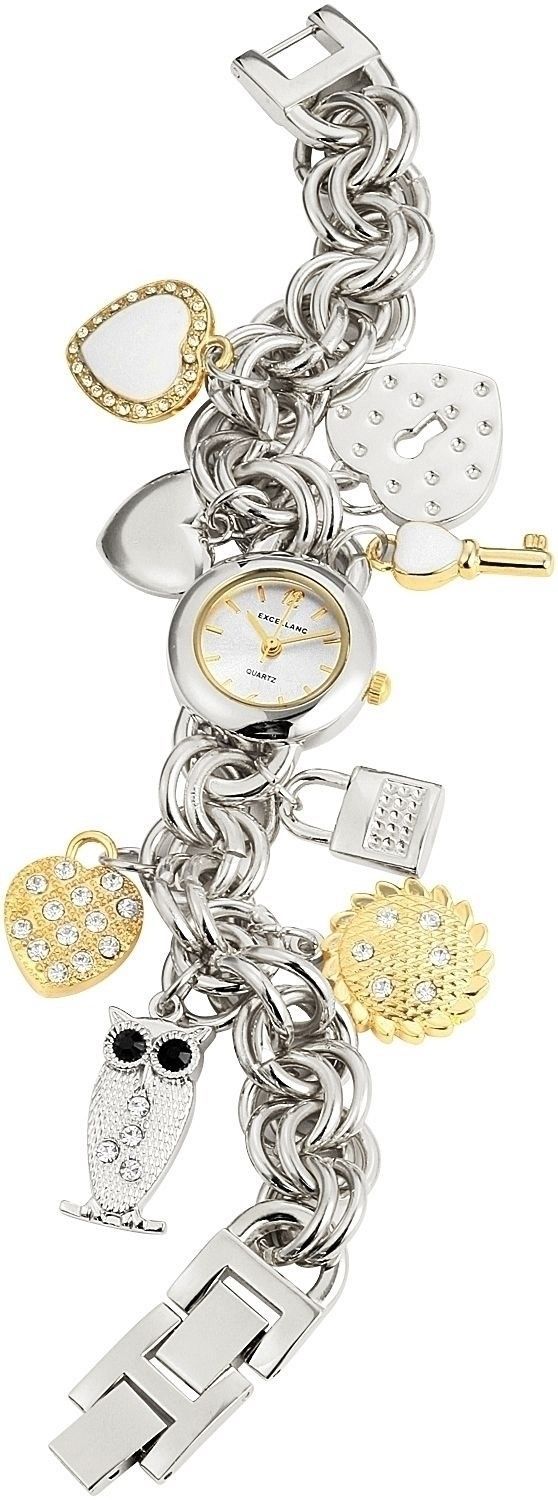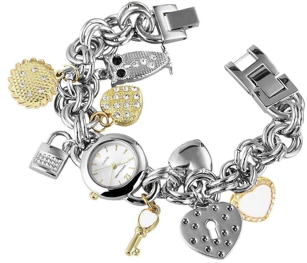 Damenuhr Armbanduhr Edelstahlkettenband bicolor Analog Quartzwerk Anhänger Herz Eule